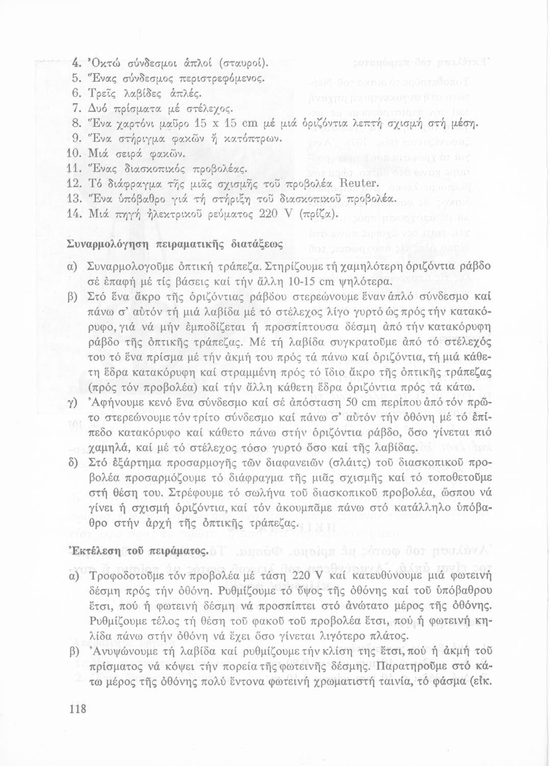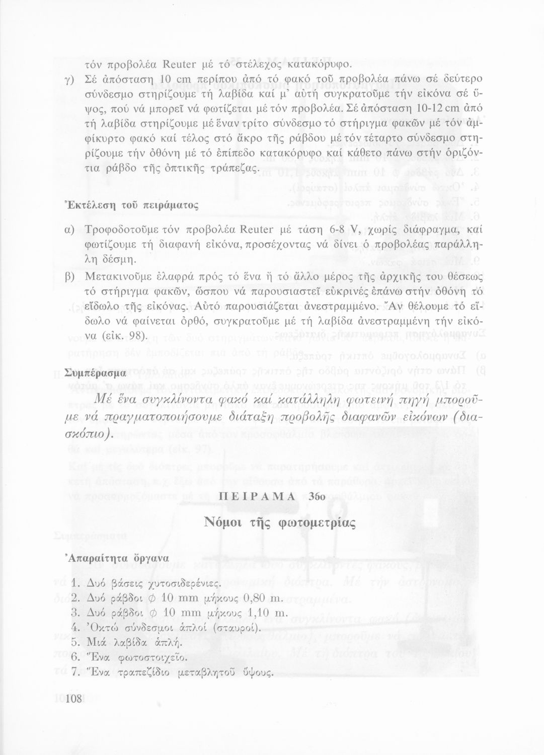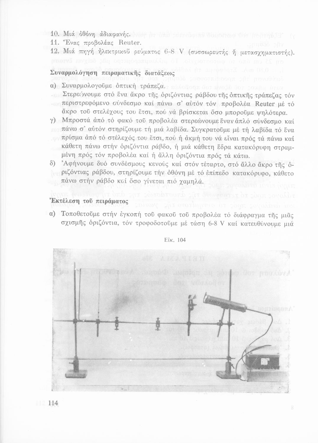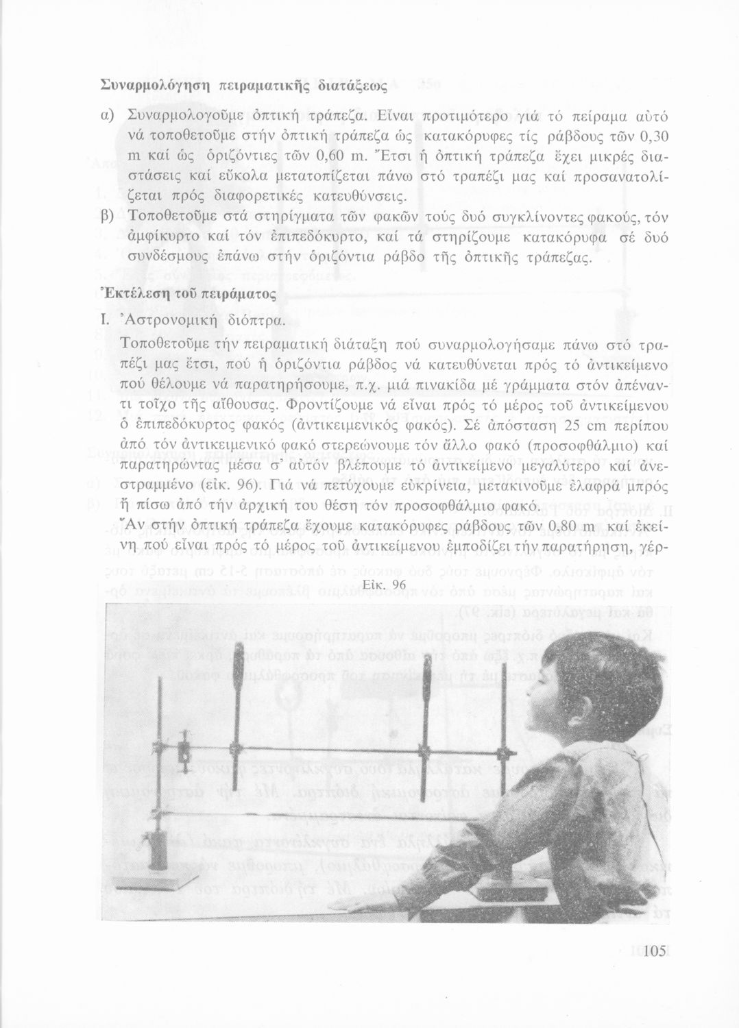 Σχολικό εγχειρίδιο Φυσικής που περιλαμβάνει πειράματα οπτικής, ηλεκτρισμού και μαγνητισμού.