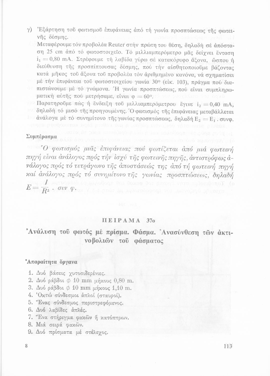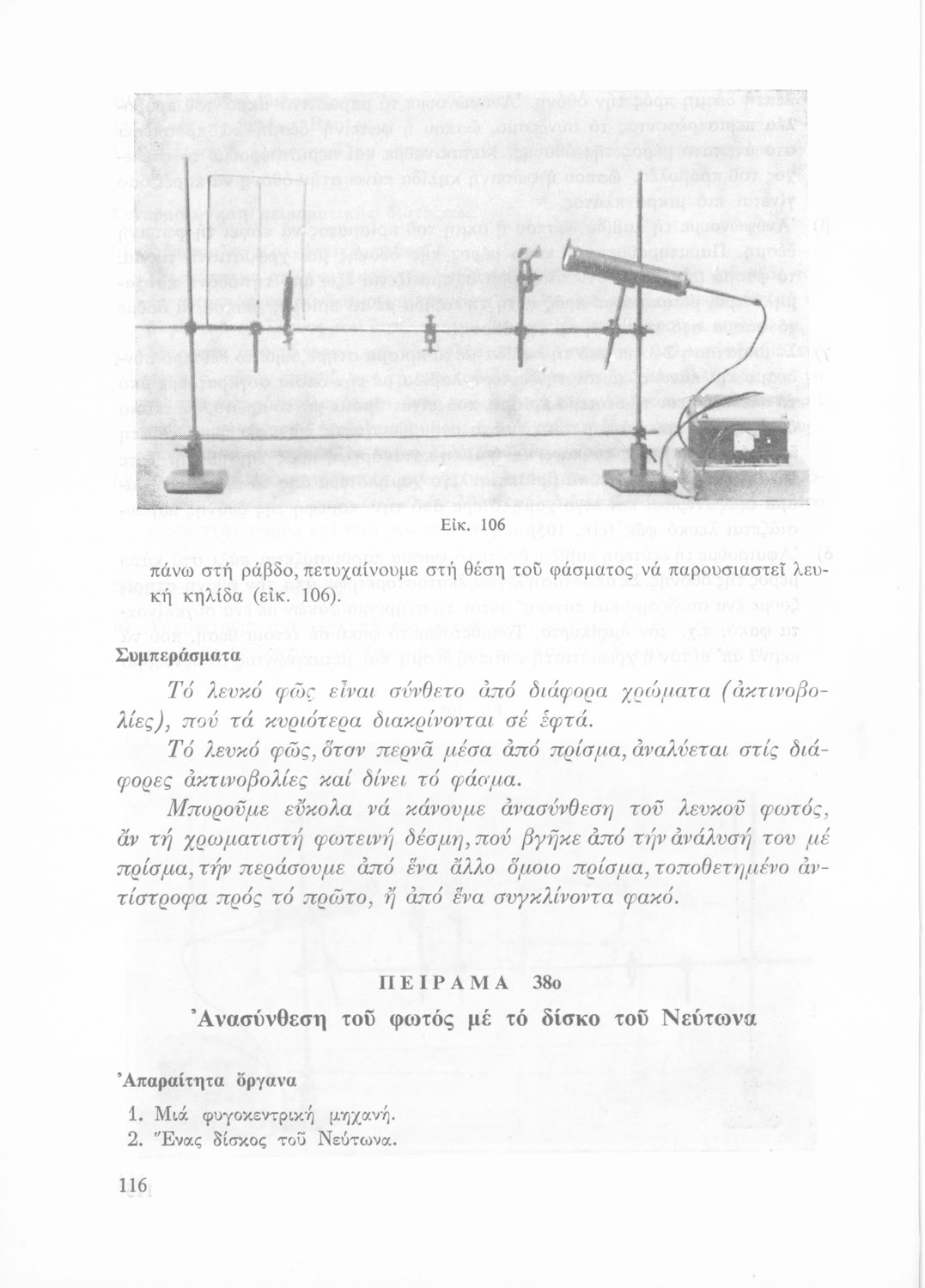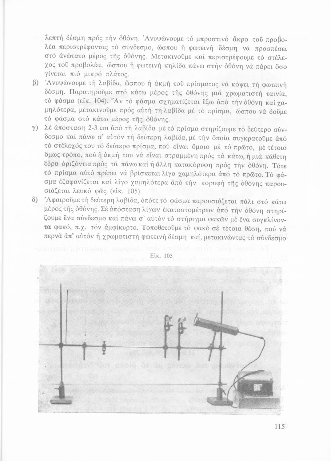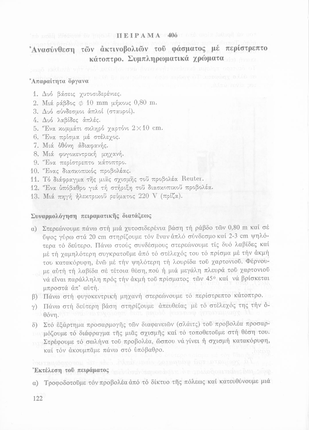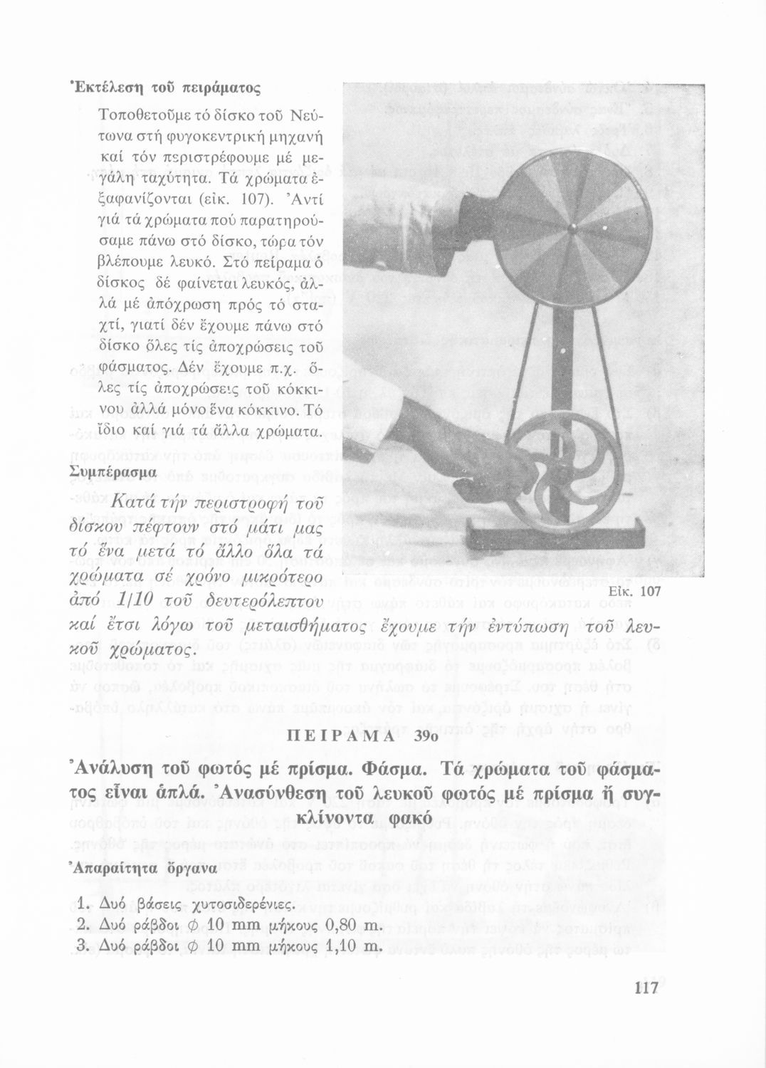Σχολικό εγχειρίδιο Φυσικής που περιλαμβάνει πειράματα οπτικής, ηλεκτρισμού και μαγνητισμού.