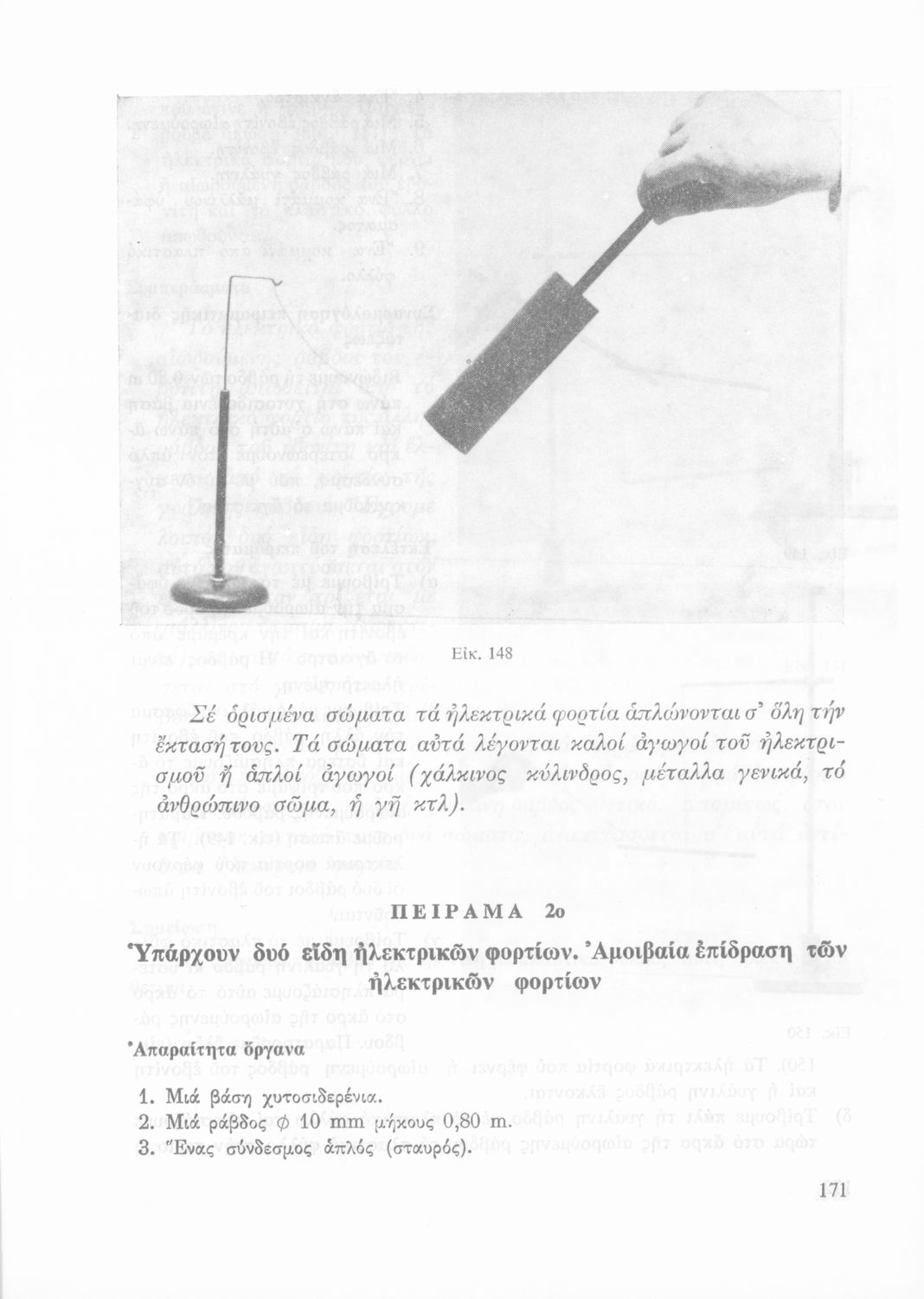 Σχολικό εγχειρίδιο Φυσικής που περιλαμβάνει πειράματα οπτικής, ηλεκτρισμού και μαγνητισμού.