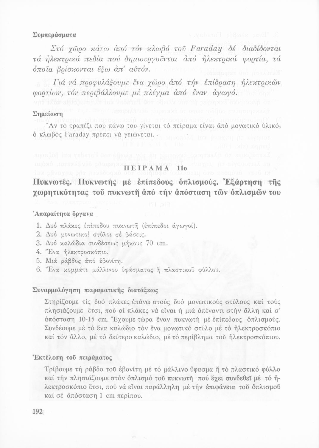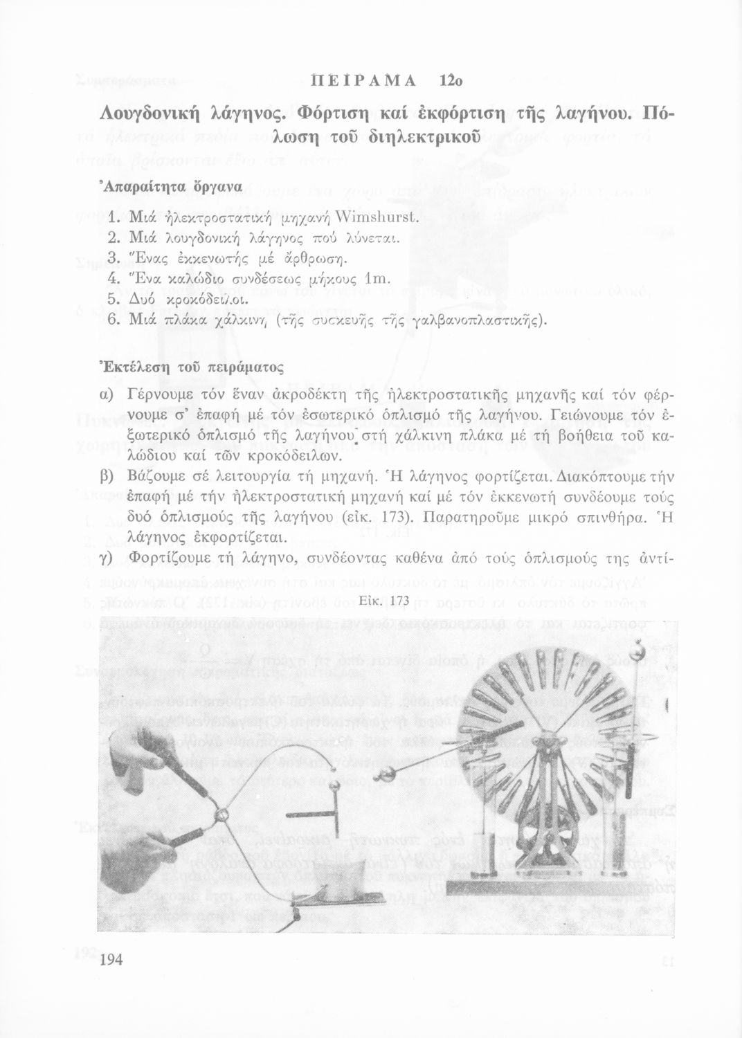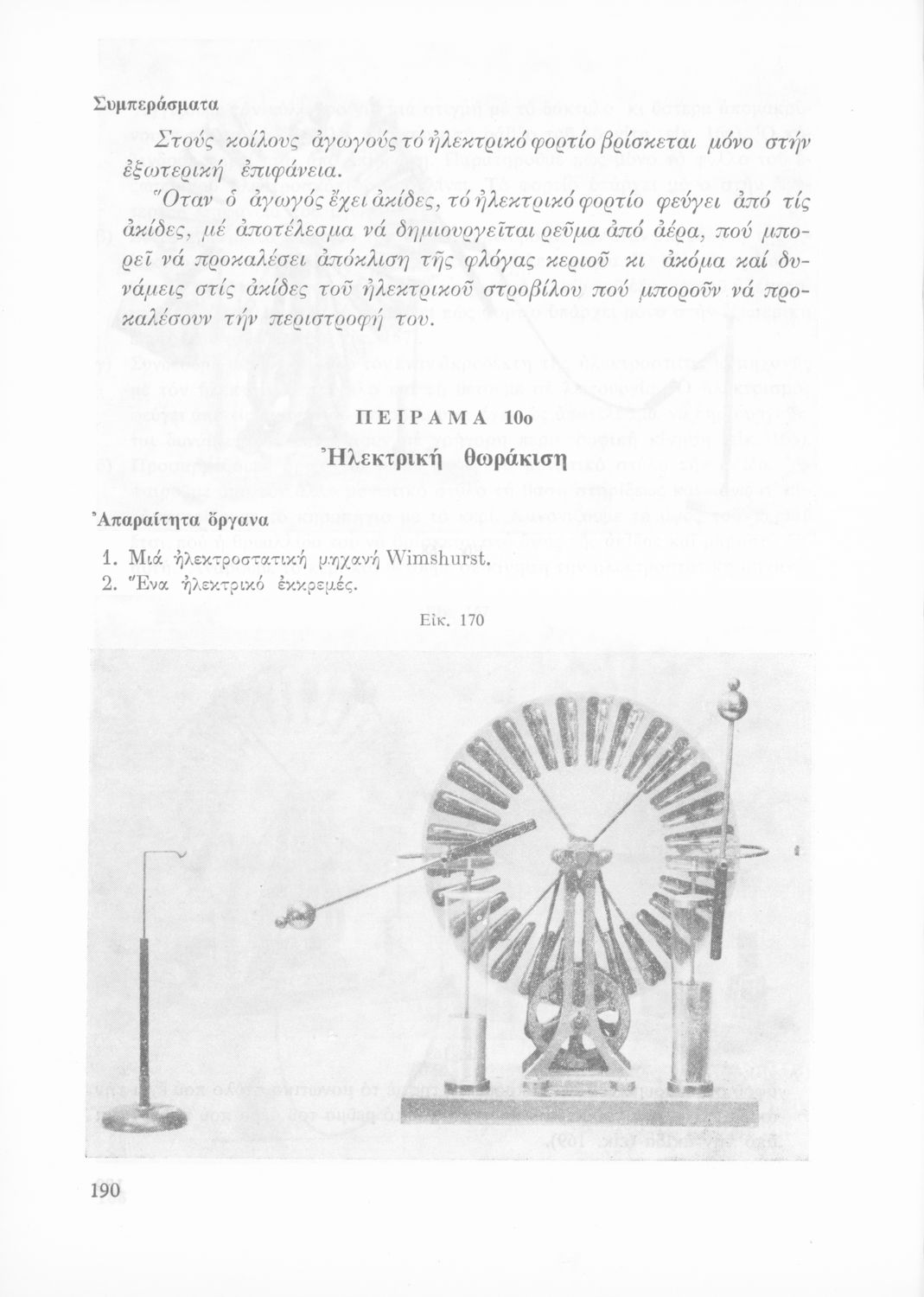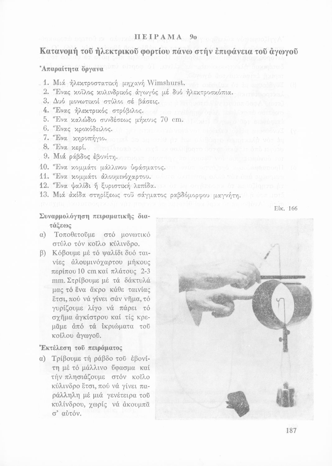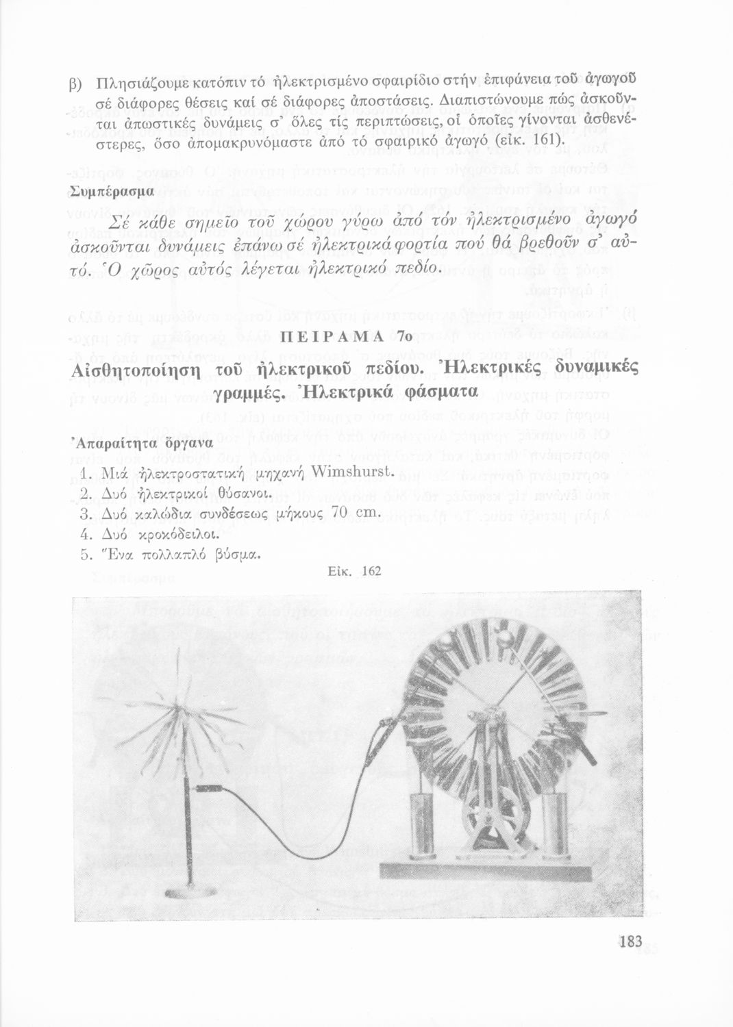 Σχολικό εγχειρίδιο Φυσικής που περιλαμβάνει πειράματα οπτικής, ηλεκτρισμού και μαγνητισμού.