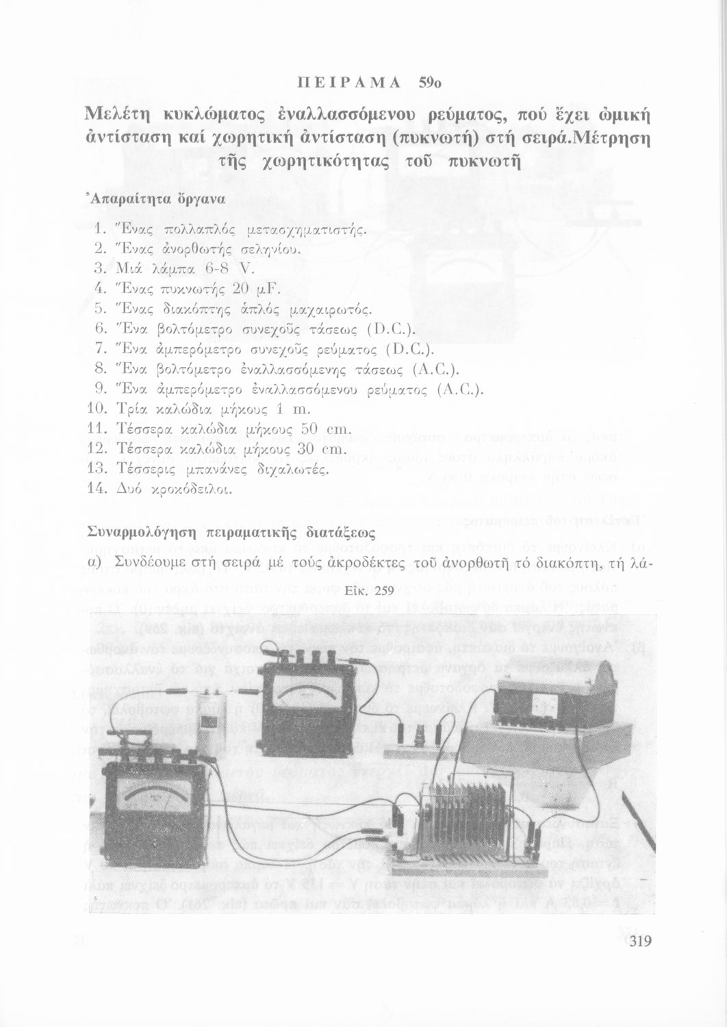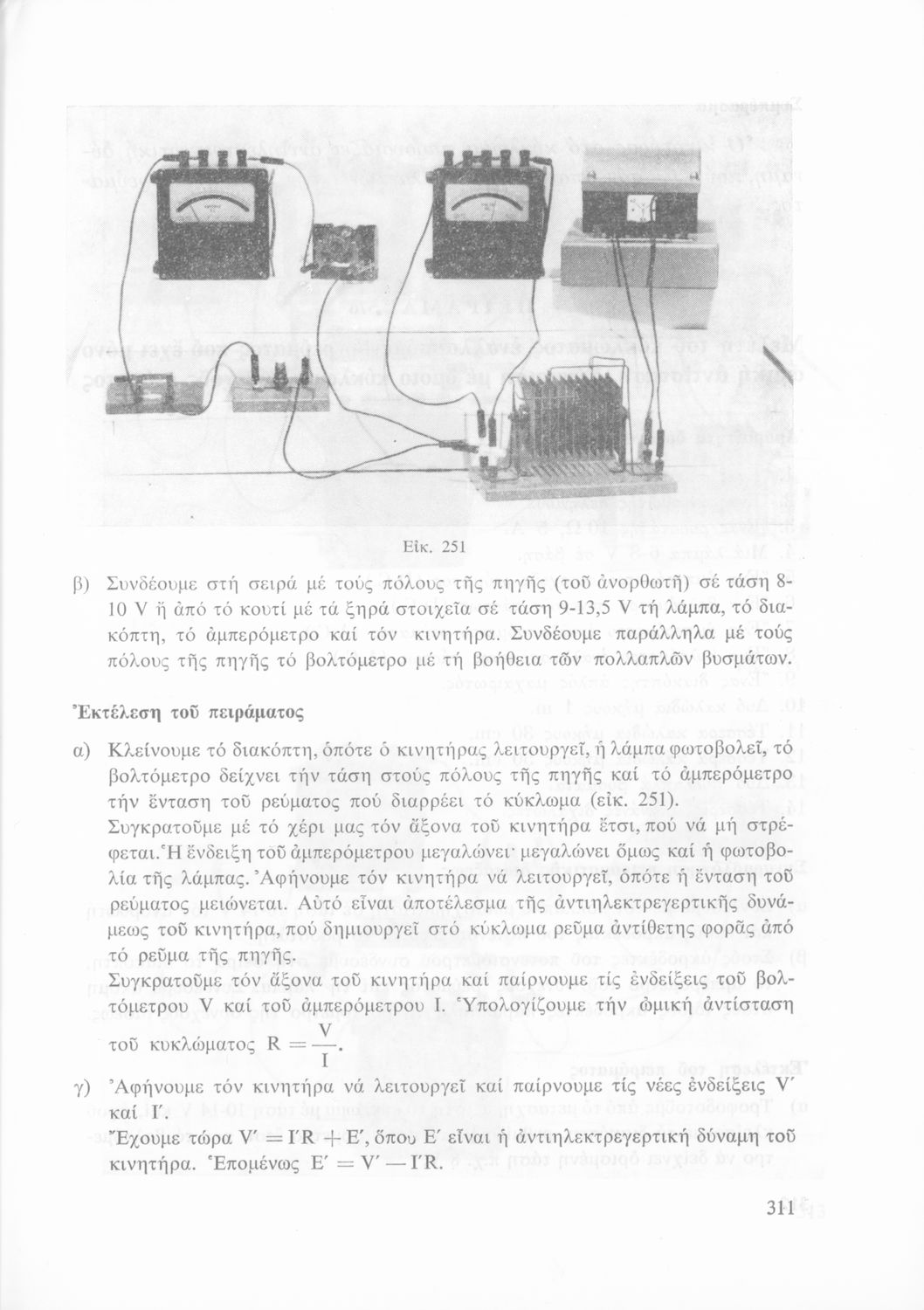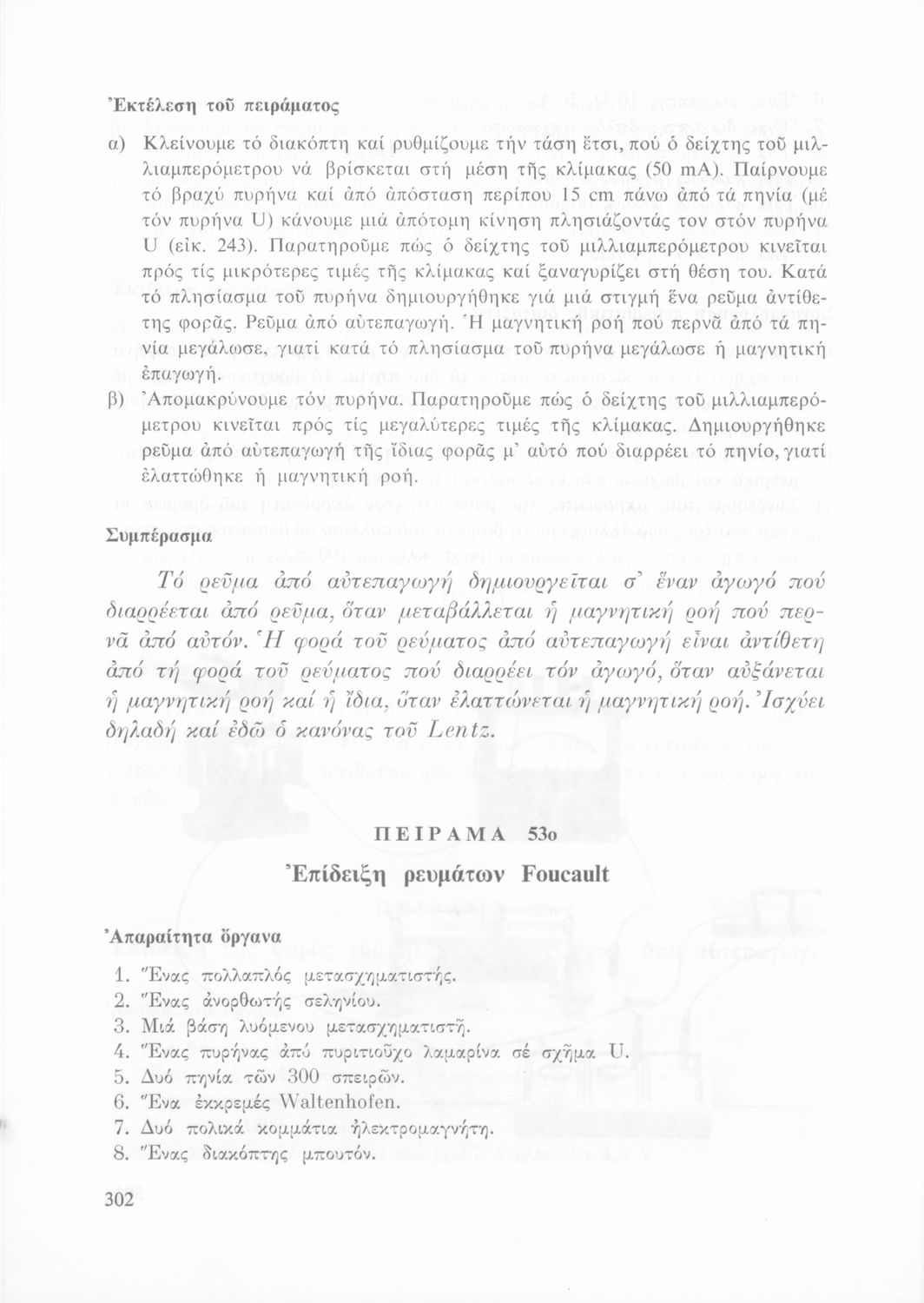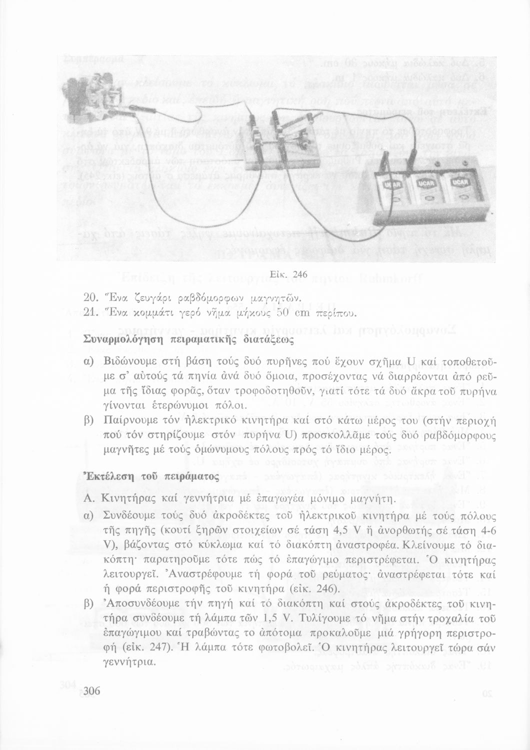 Σχολικό εγχειρίδιο Φυσικής που περιλαμβάνει πειράματα οπτικής, ηλεκτρισμού και μαγνητισμού.