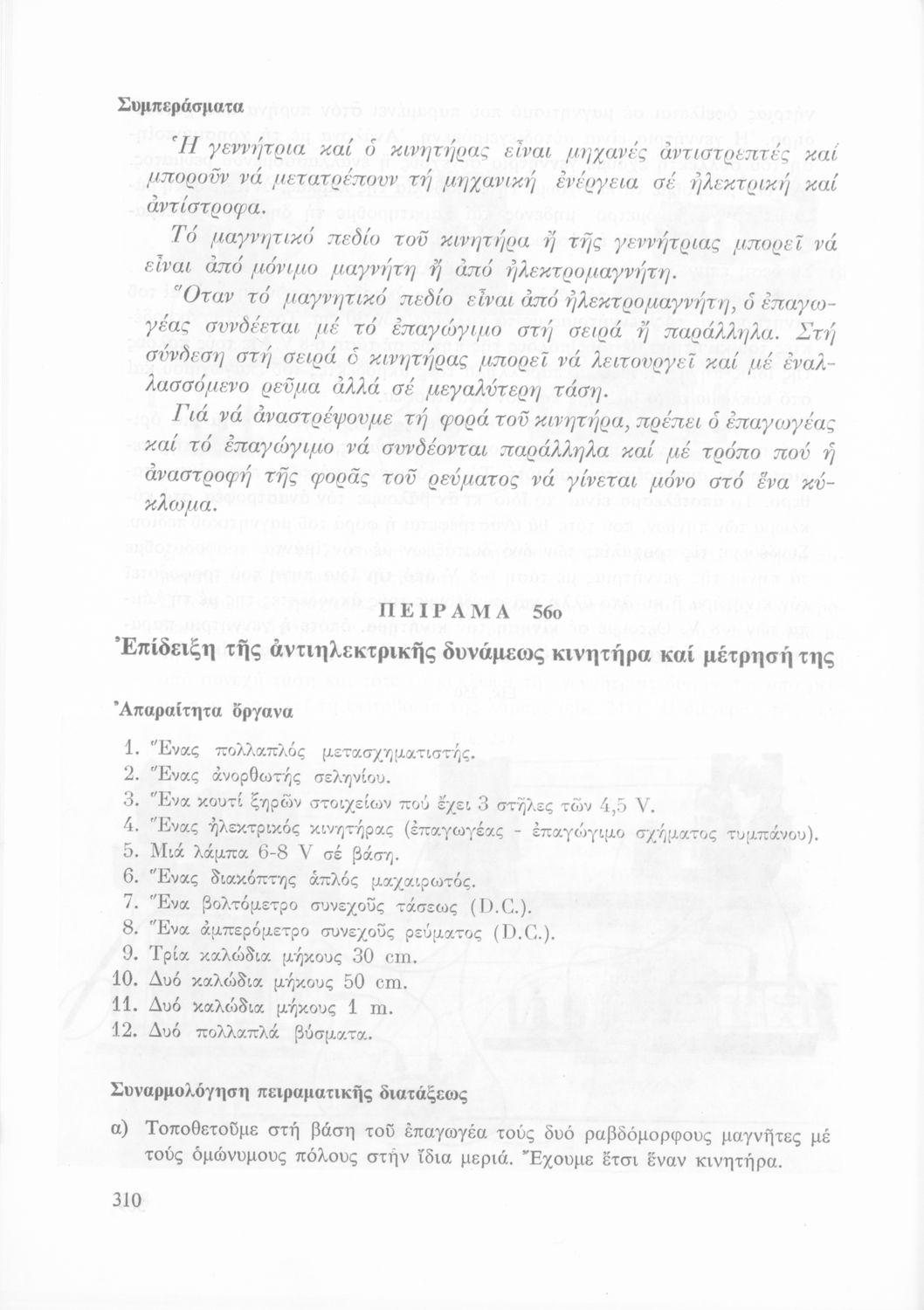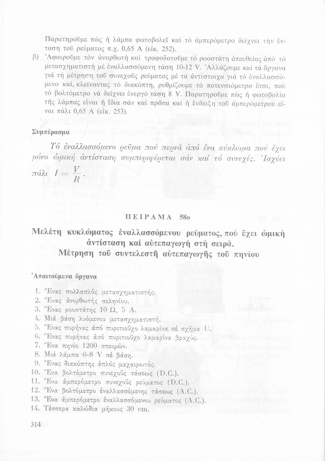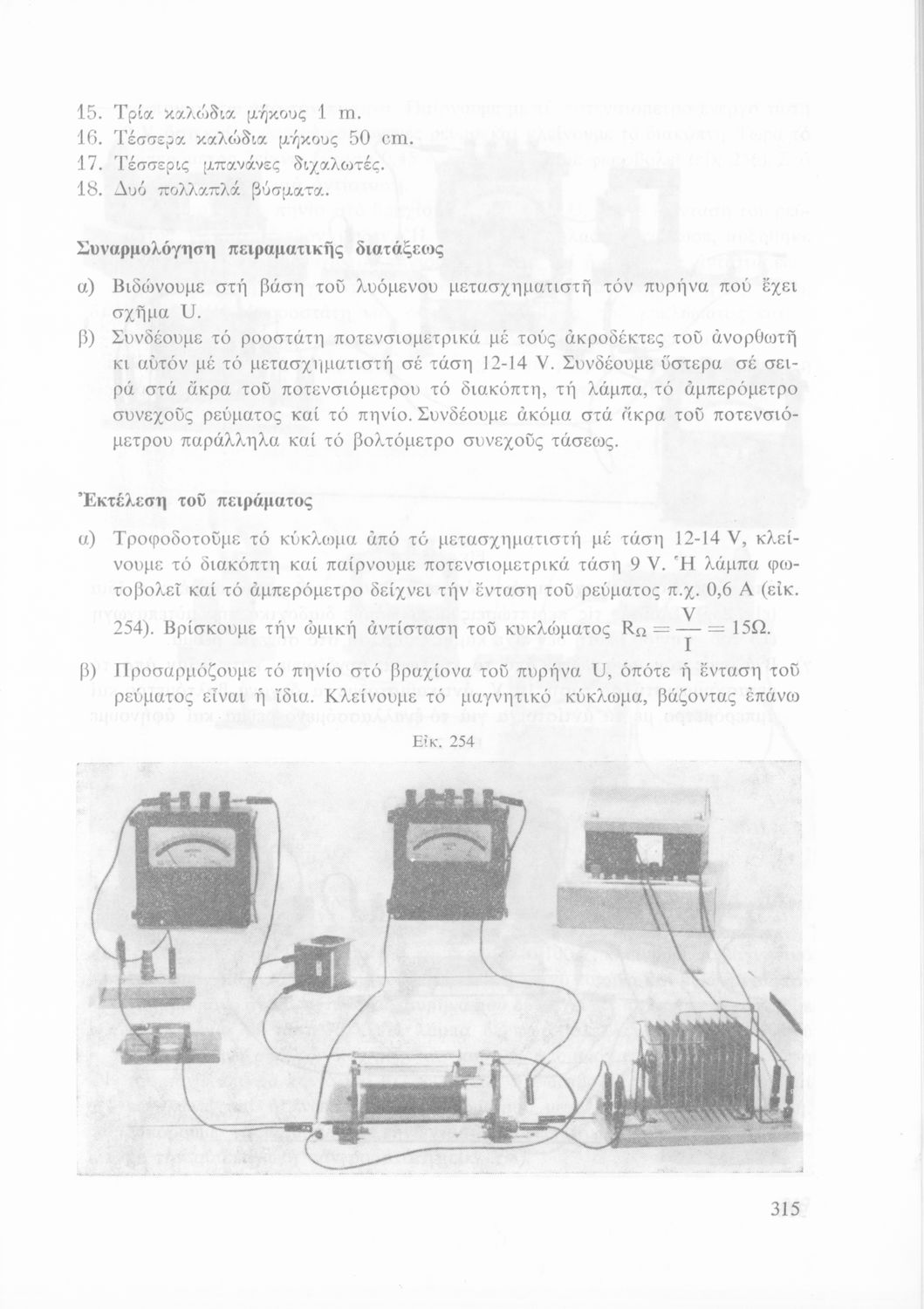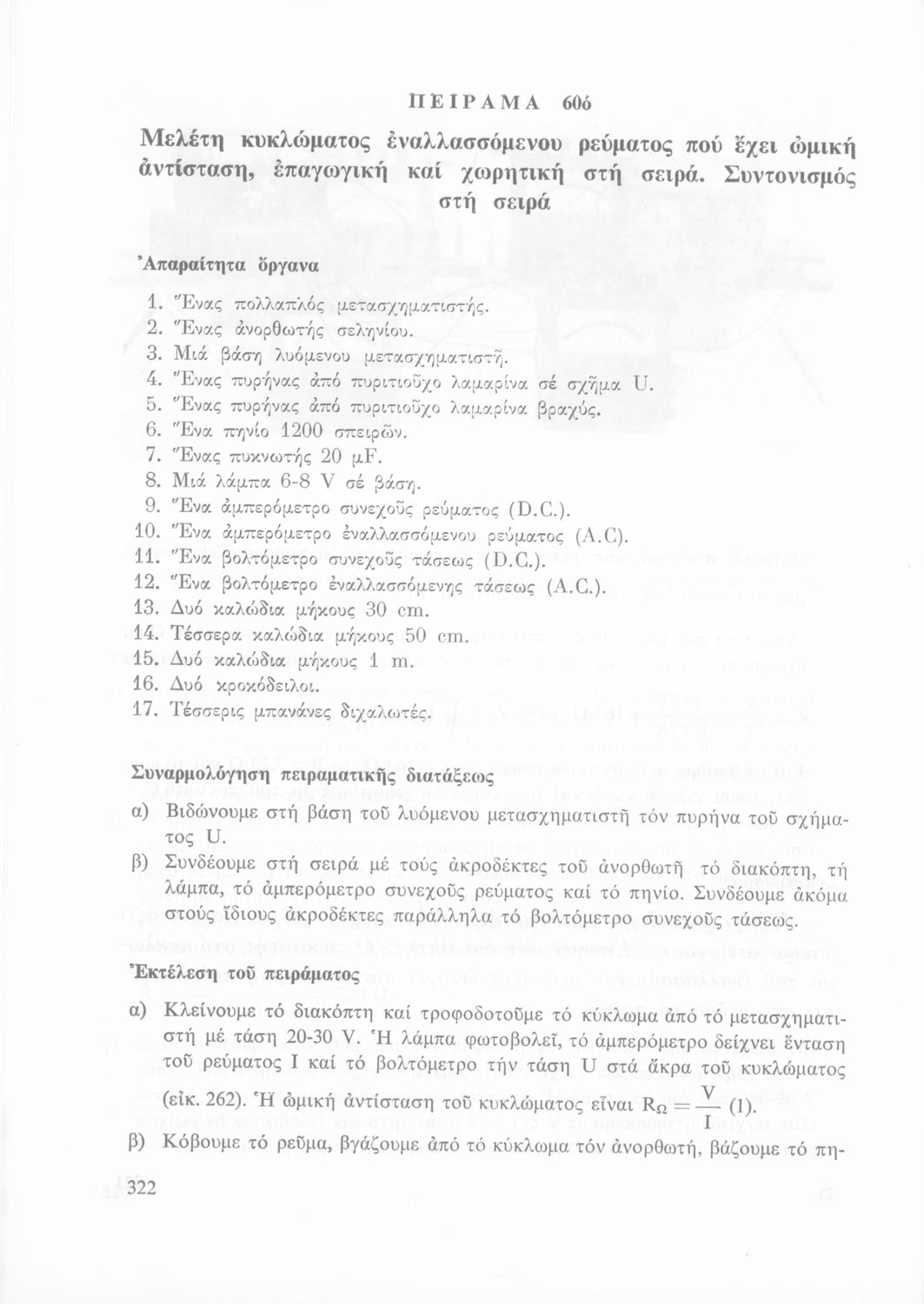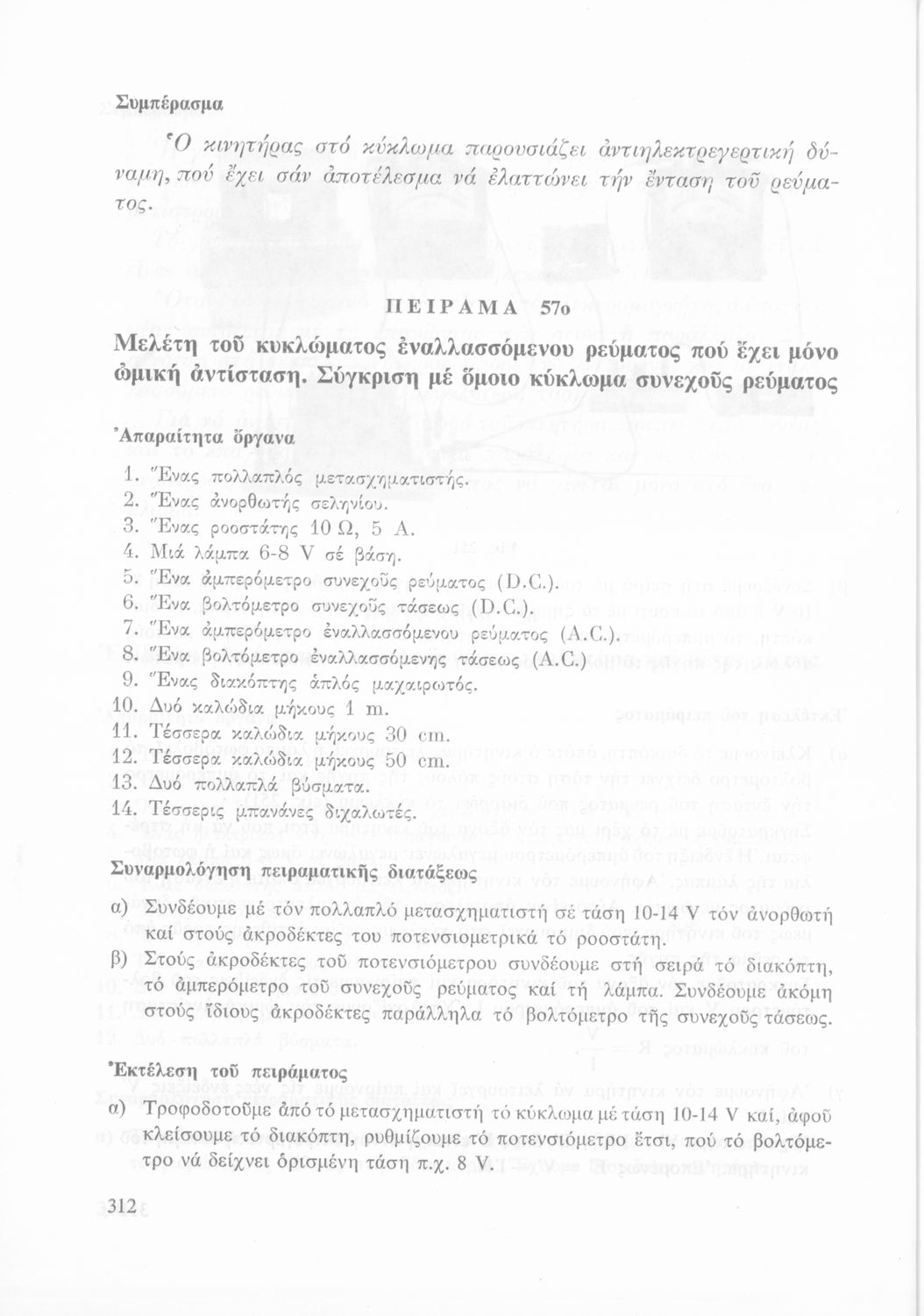 Σχολικό εγχειρίδιο Φυσικής που περιλαμβάνει πειράματα οπτικής, ηλεκτρισμού και μαγνητισμού.