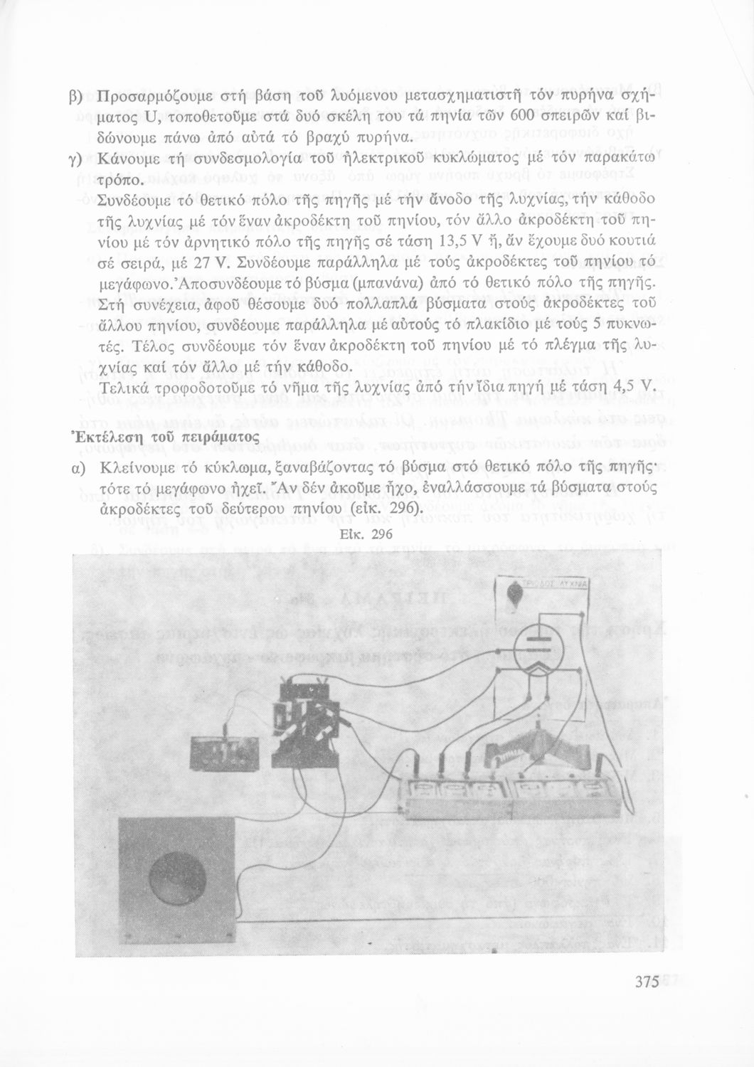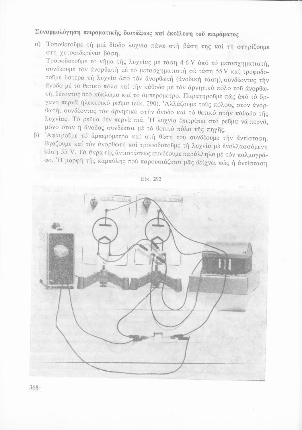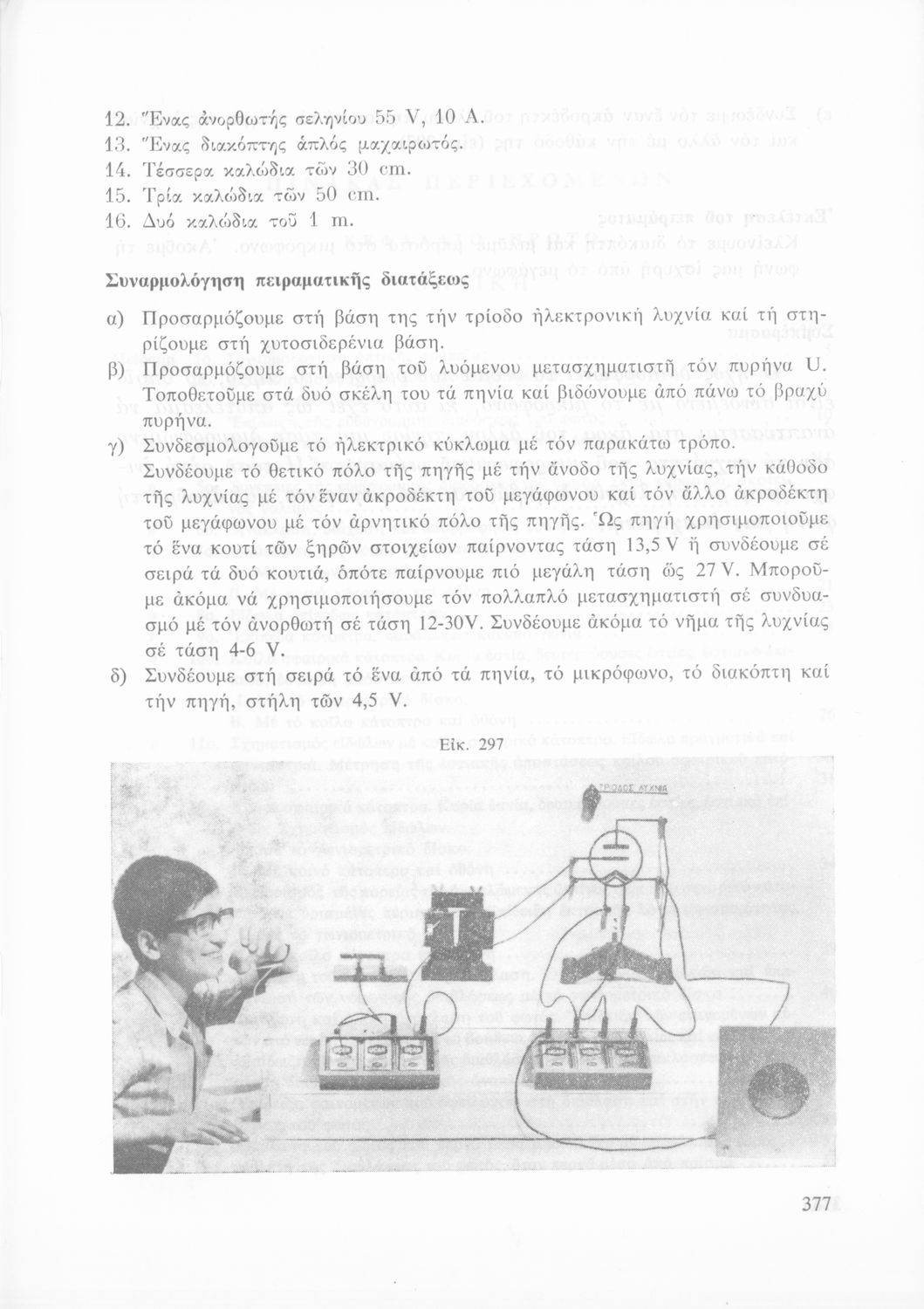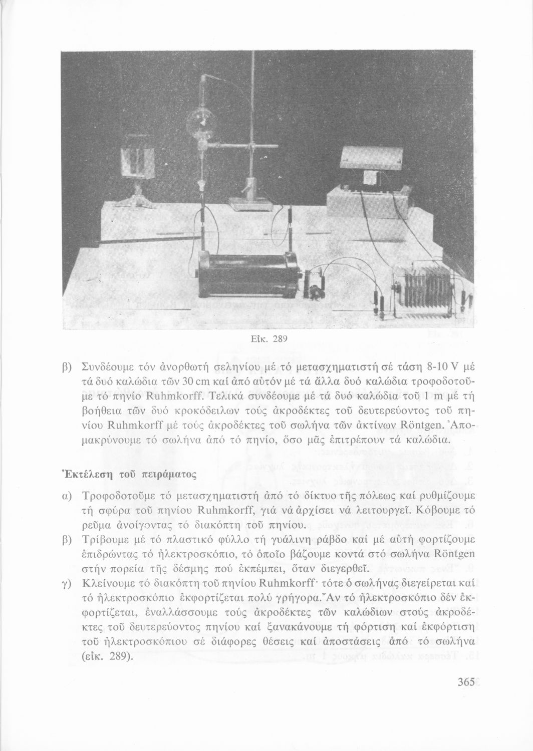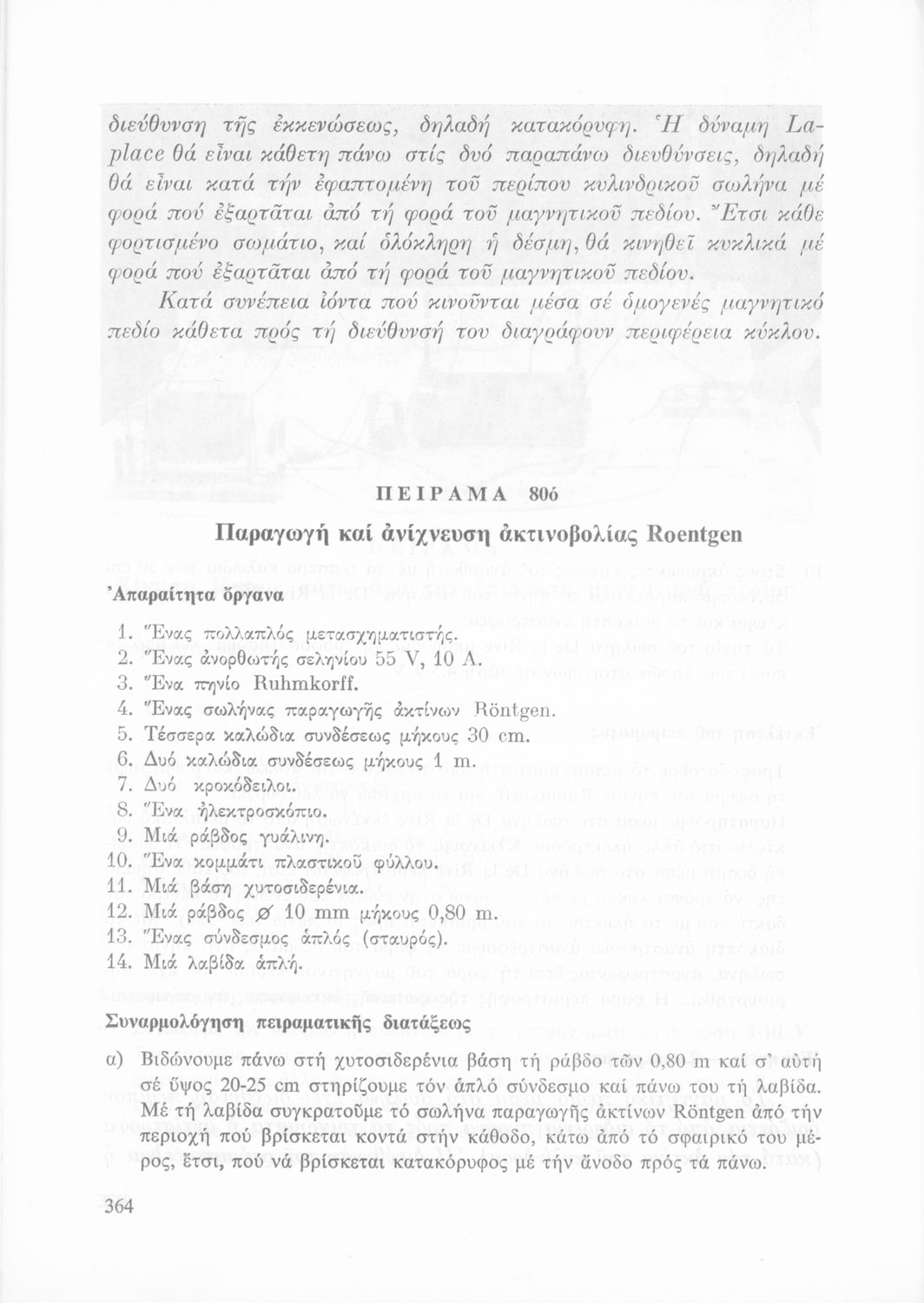 Σχολικό εγχειρίδιο Φυσικής που περιλαμβάνει πειράματα οπτικής, ηλεκτρισμού και μαγνητισμού.