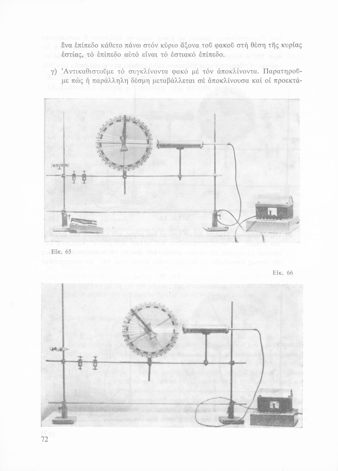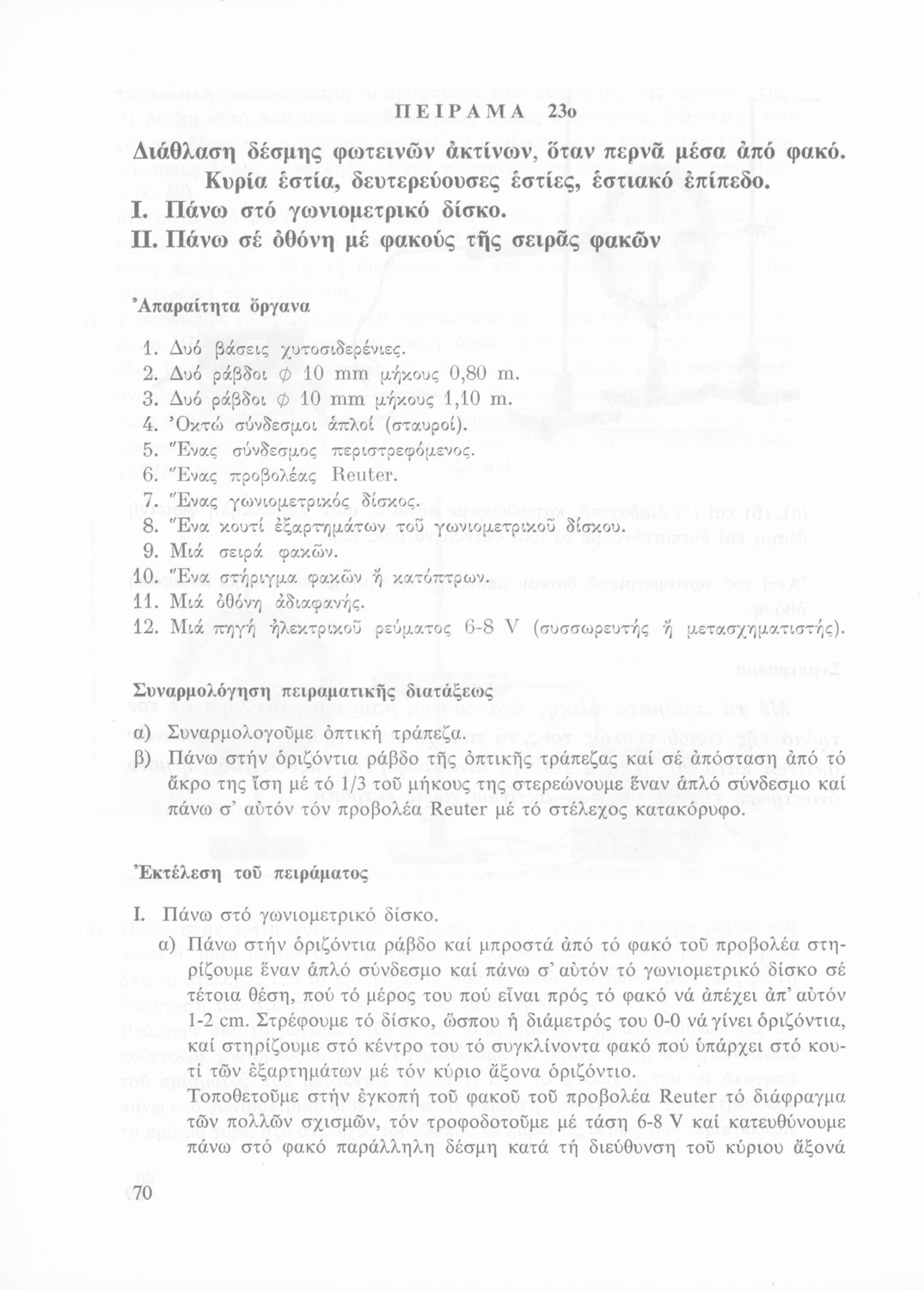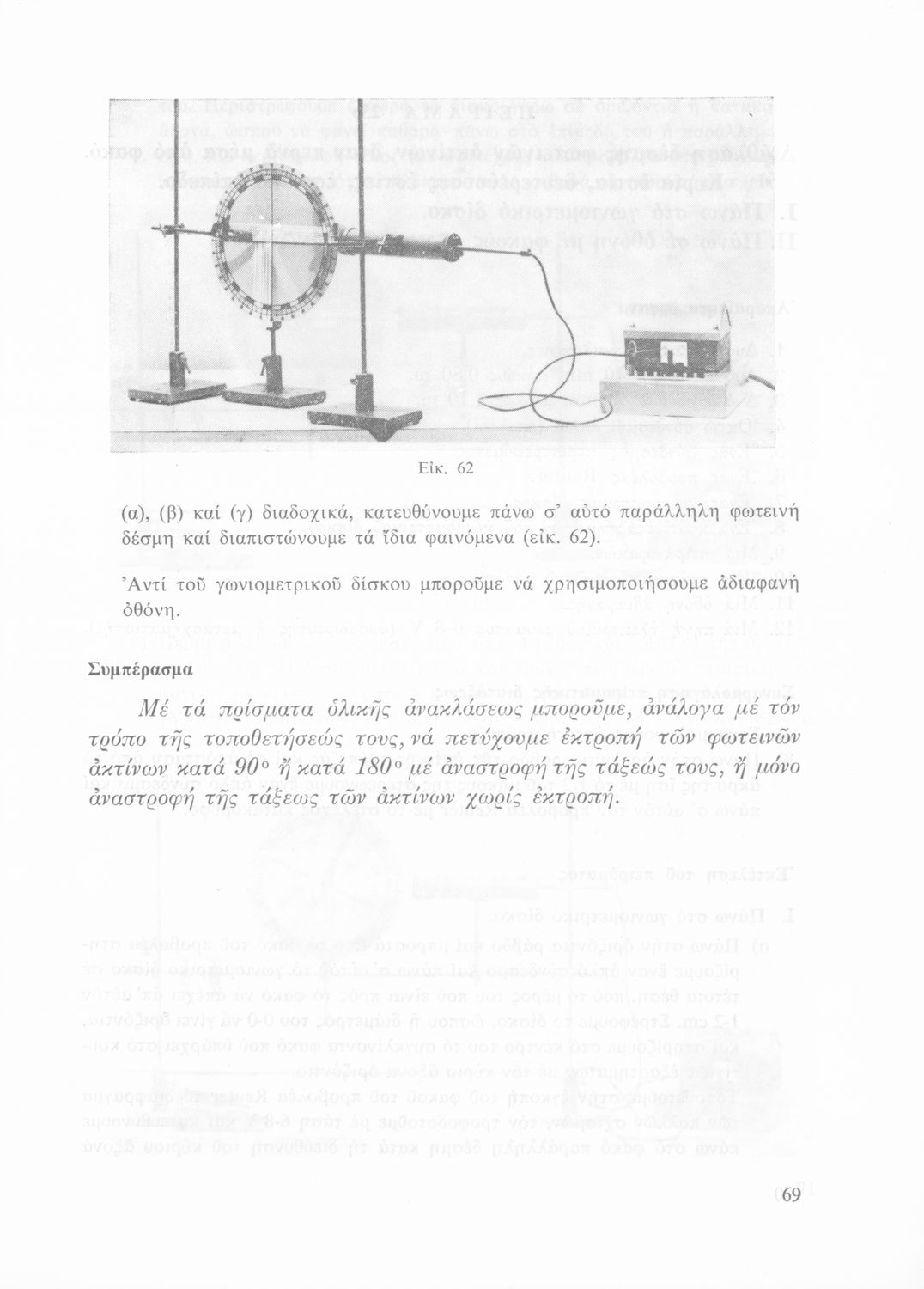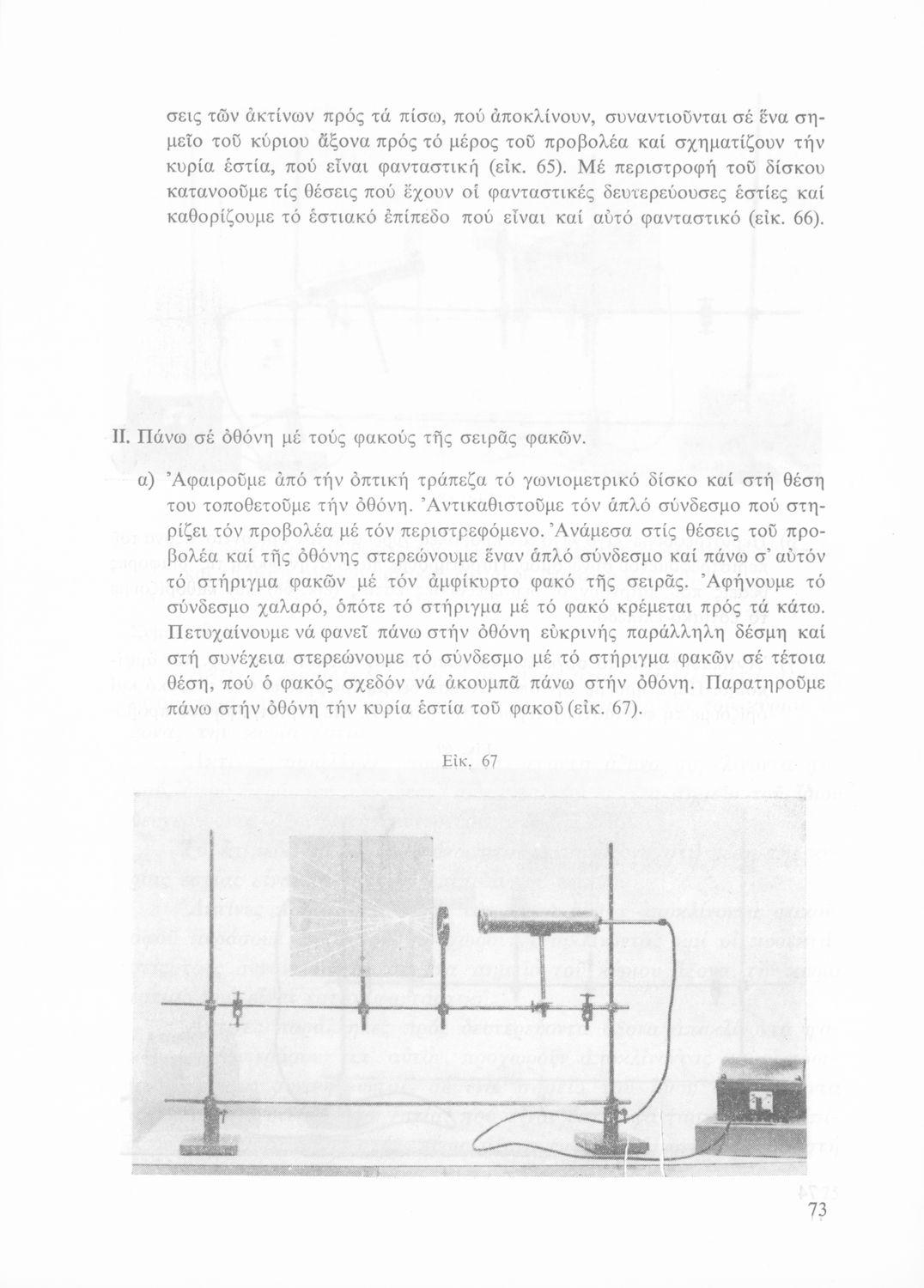 Σχολικό εγχειρίδιο Φυσικής που περιλαμβάνει πειράματα οπτικής, ηλεκτρισμού και μαγνητισμού.