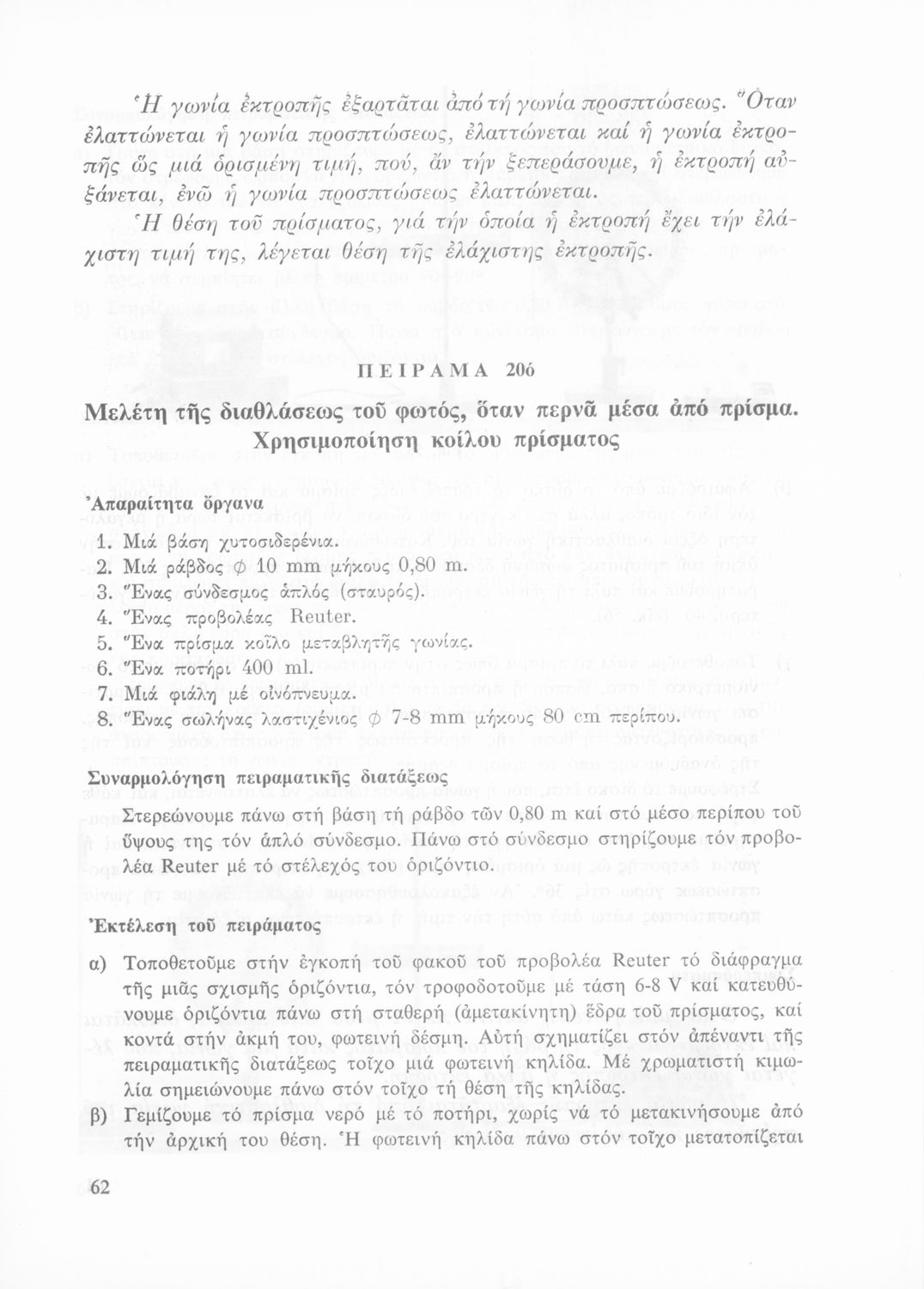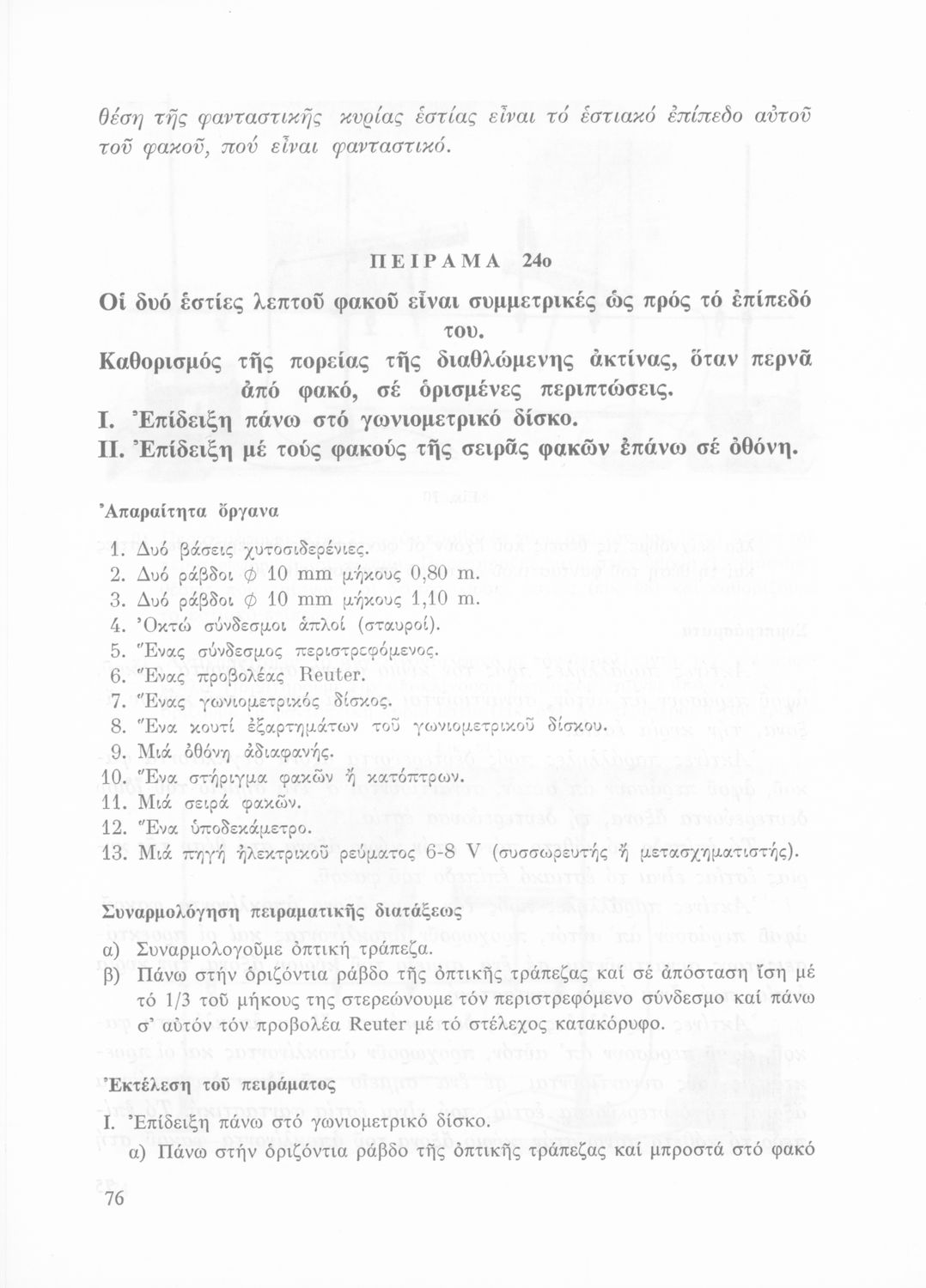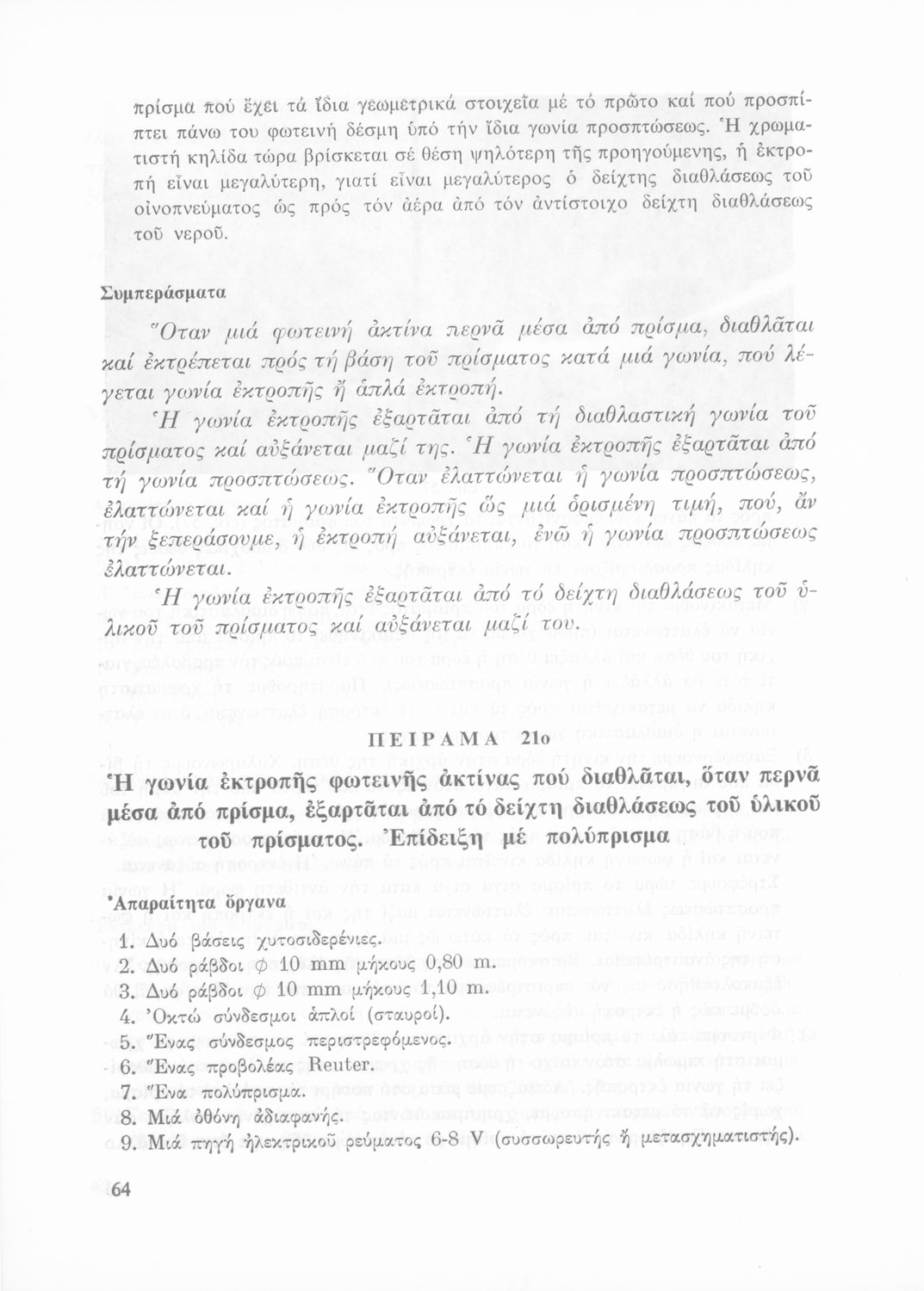 Σχολικό εγχειρίδιο Φυσικής που περιλαμβάνει πειράματα οπτικής, ηλεκτρισμού και μαγνητισμού.
