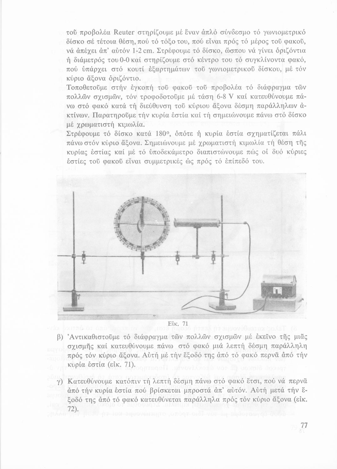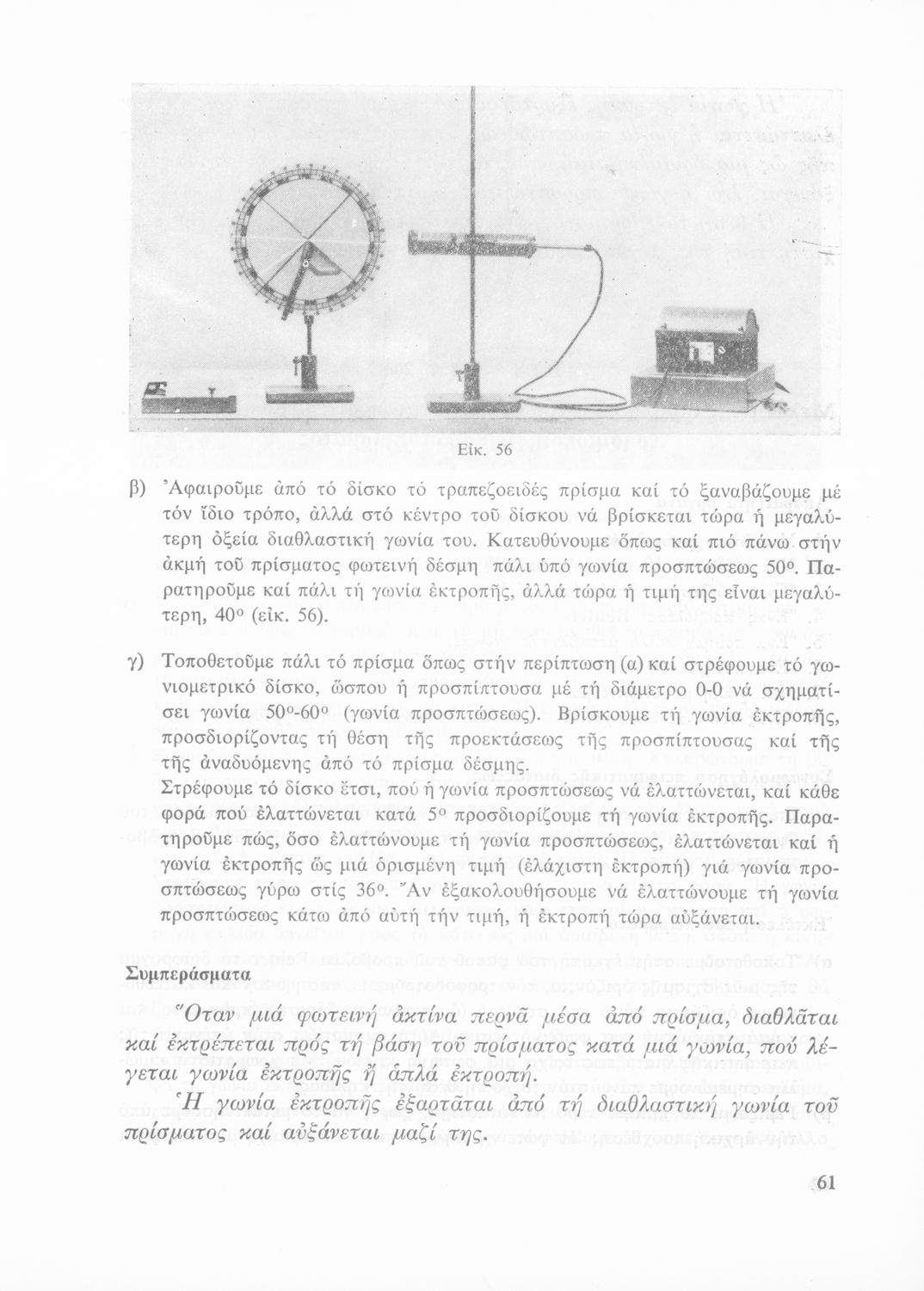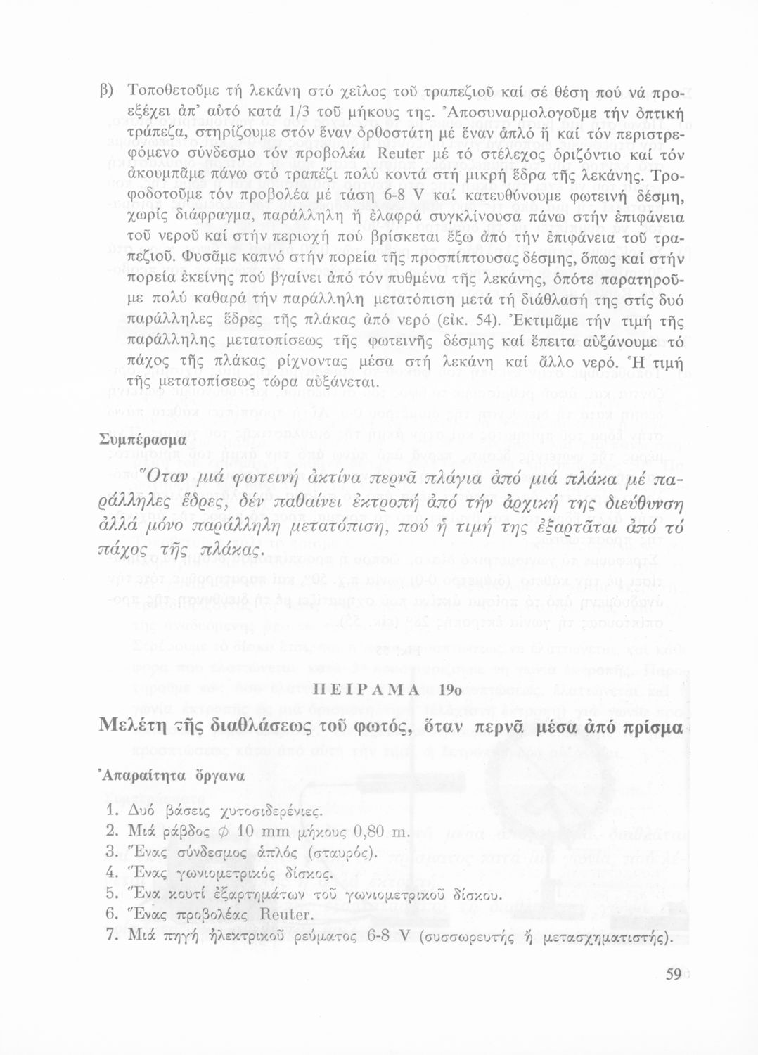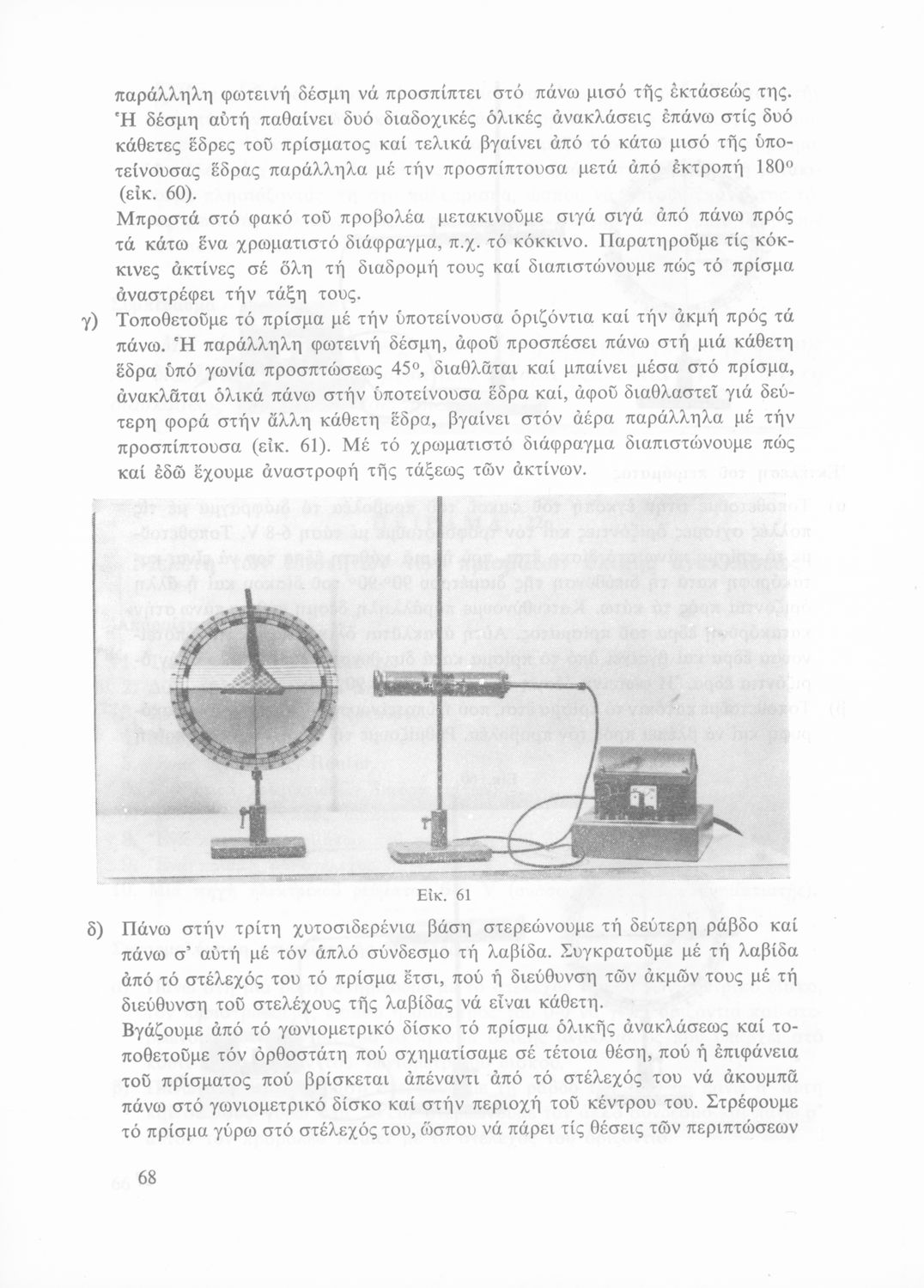 Σχολικό εγχειρίδιο Φυσικής που περιλαμβάνει πειράματα οπτικής, ηλεκτρισμού και μαγνητισμού.