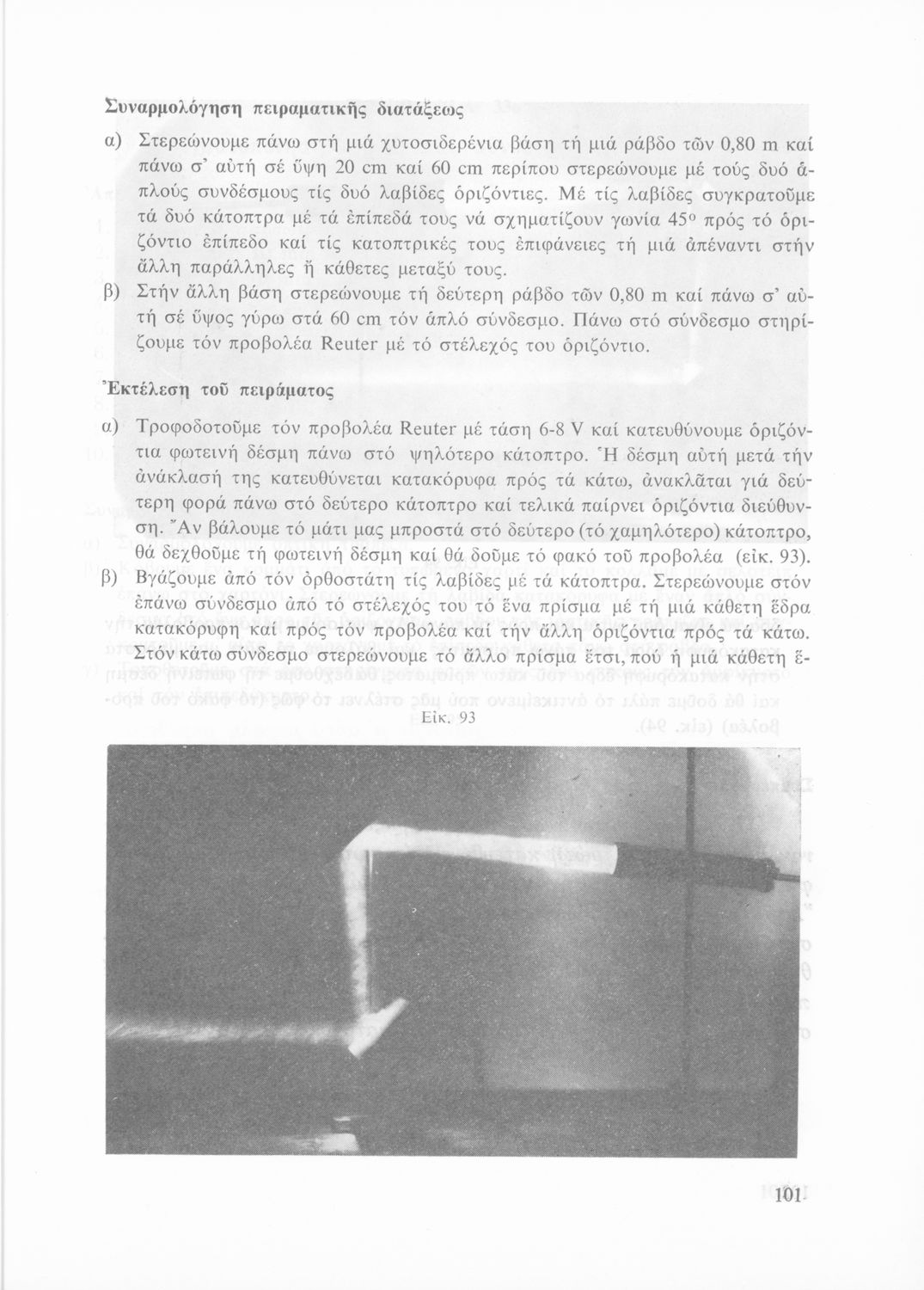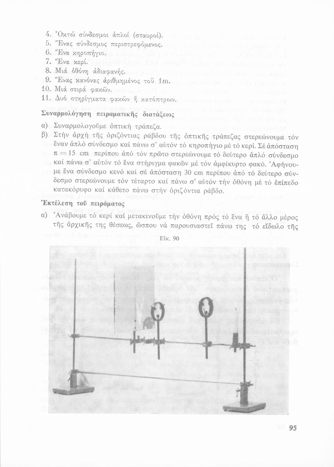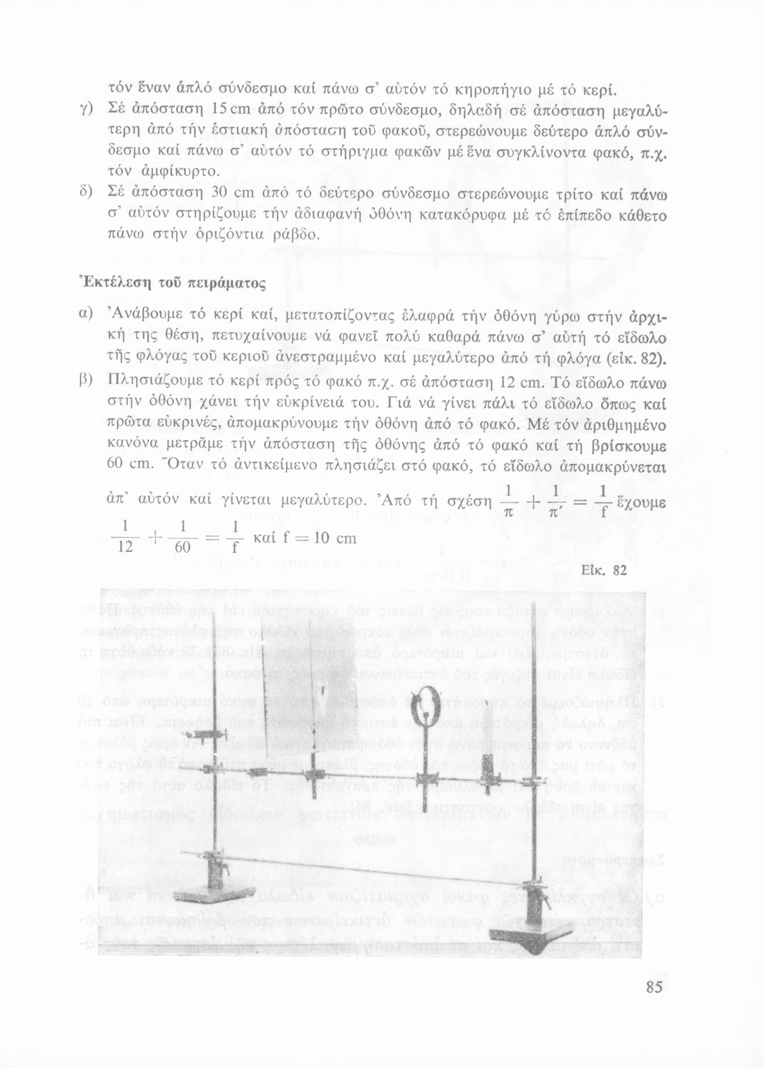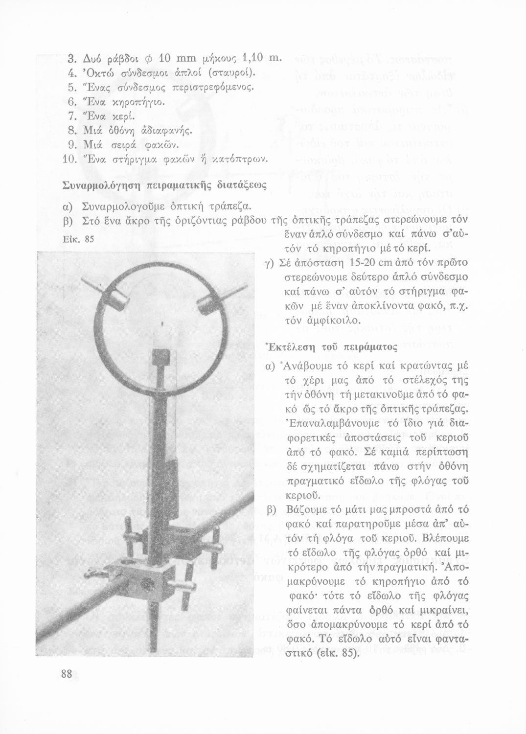 Σχολικό εγχειρίδιο Φυσικής που περιλαμβάνει πειράματα οπτικής, ηλεκτρισμού και μαγνητισμού.