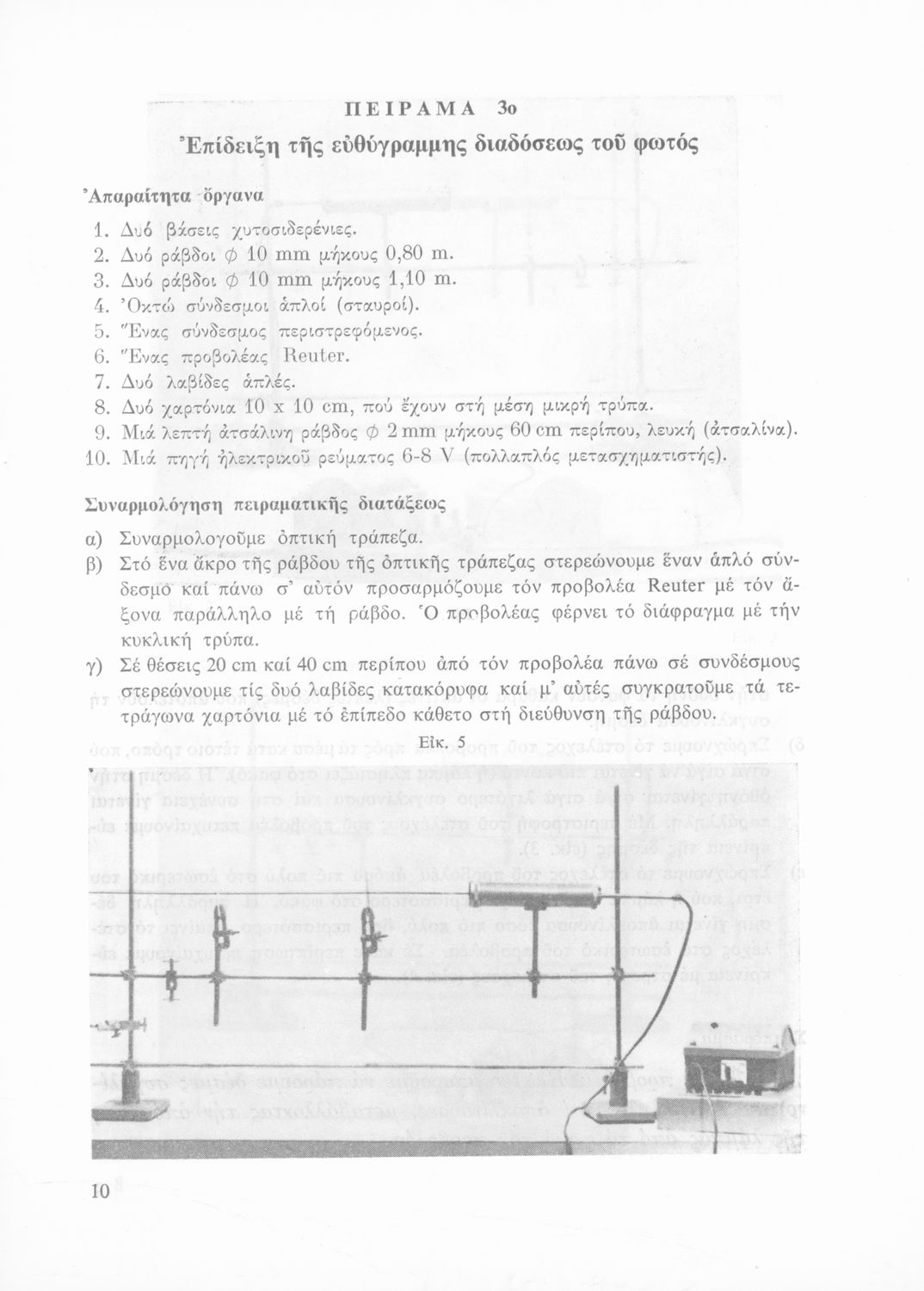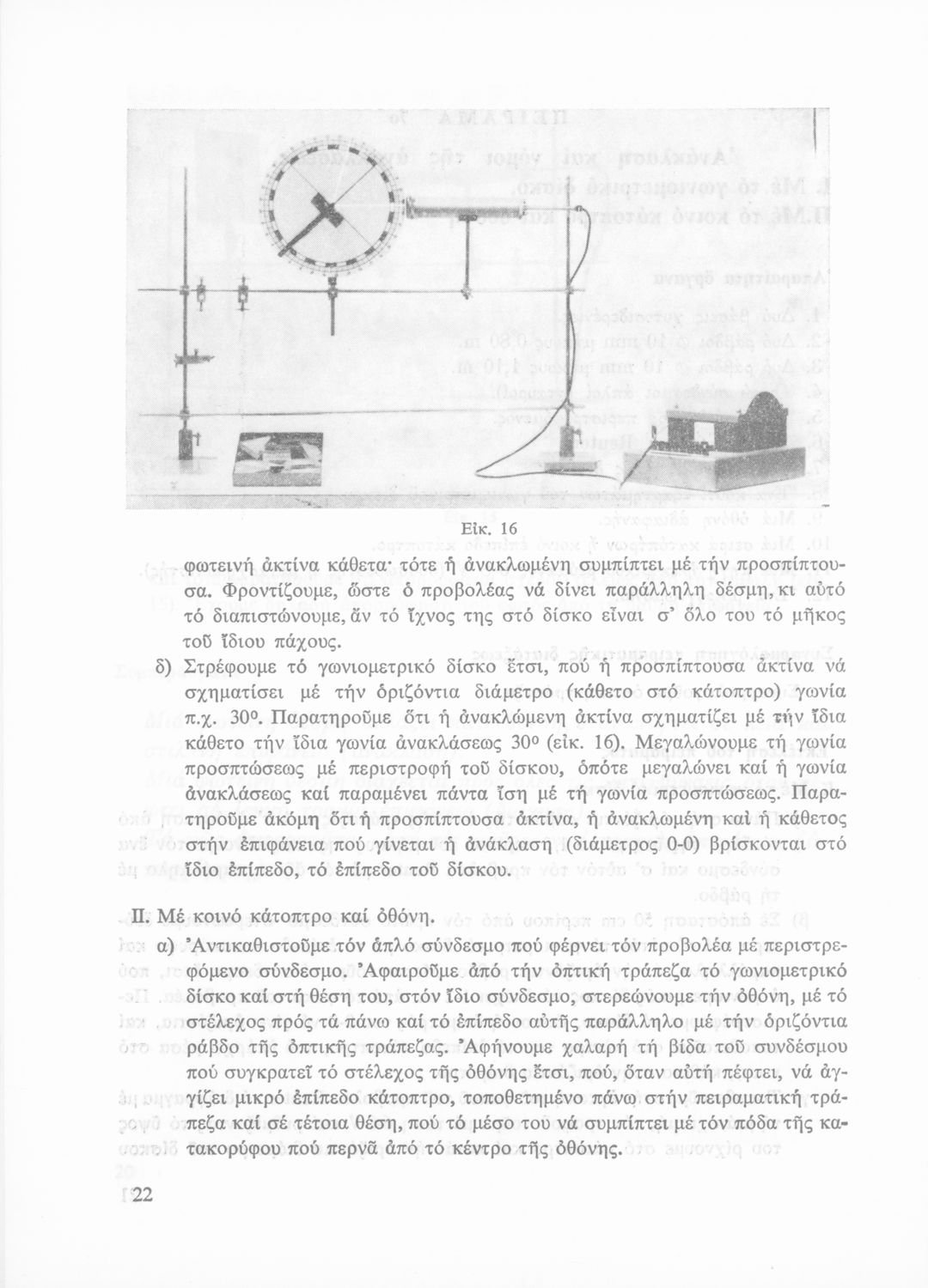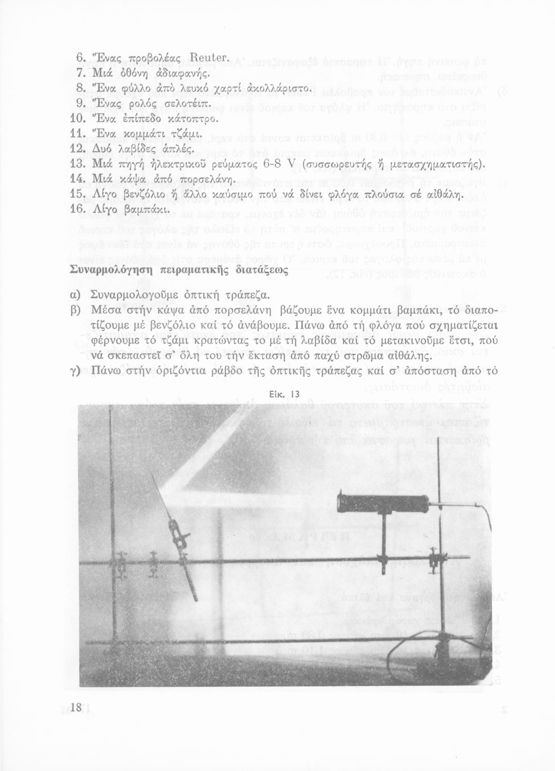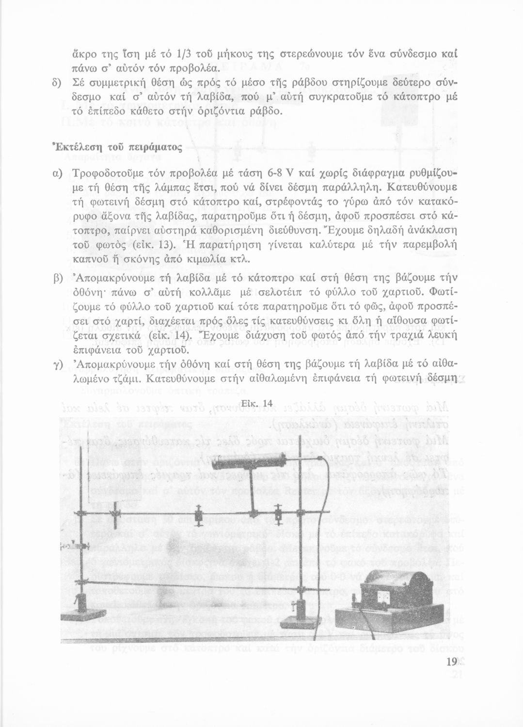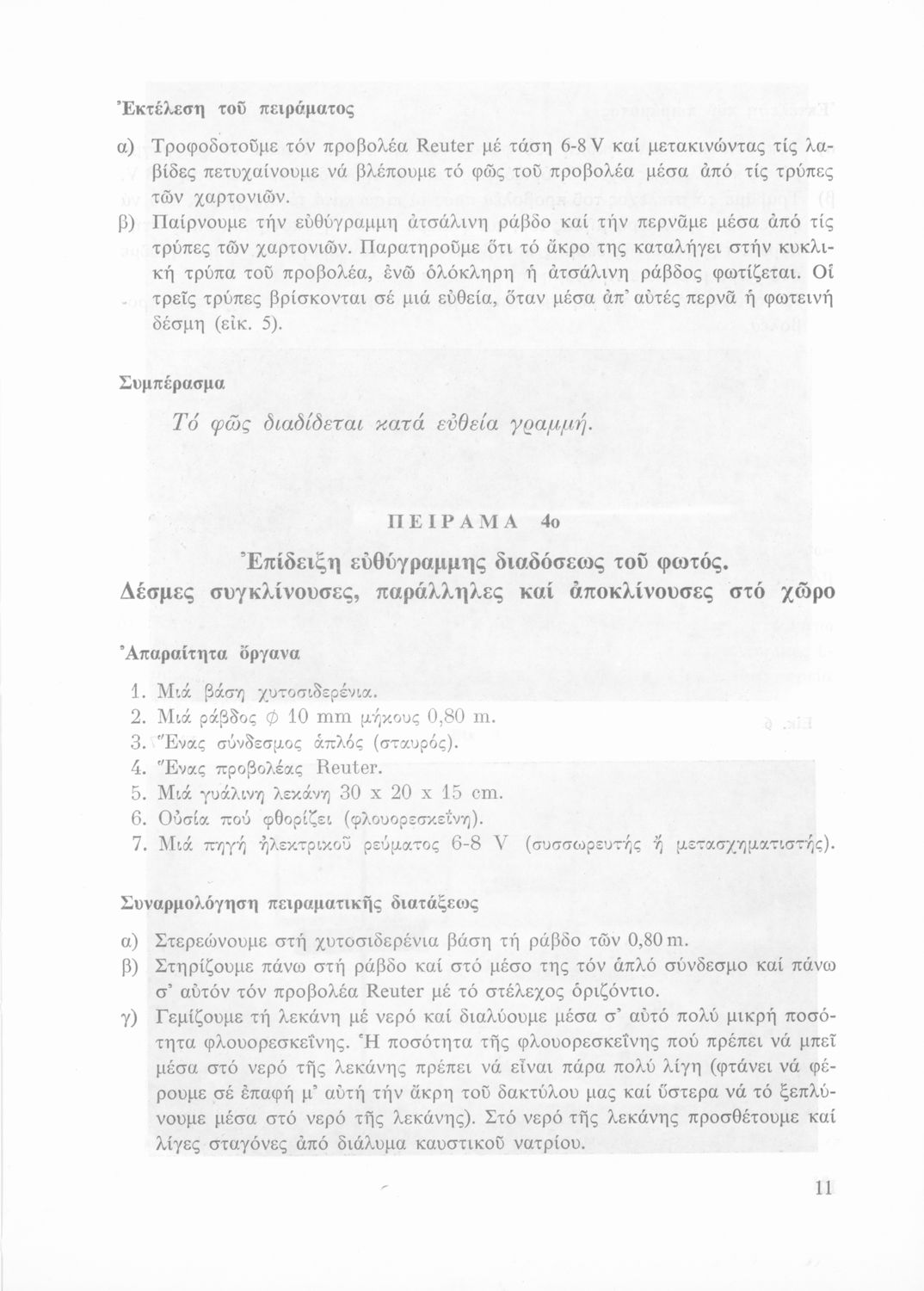 Σχολικό εγχειρίδιο Φυσικής που περιλαμβάνει πειράματα οπτικής, ηλεκτρισμού και μαγνητισμού.