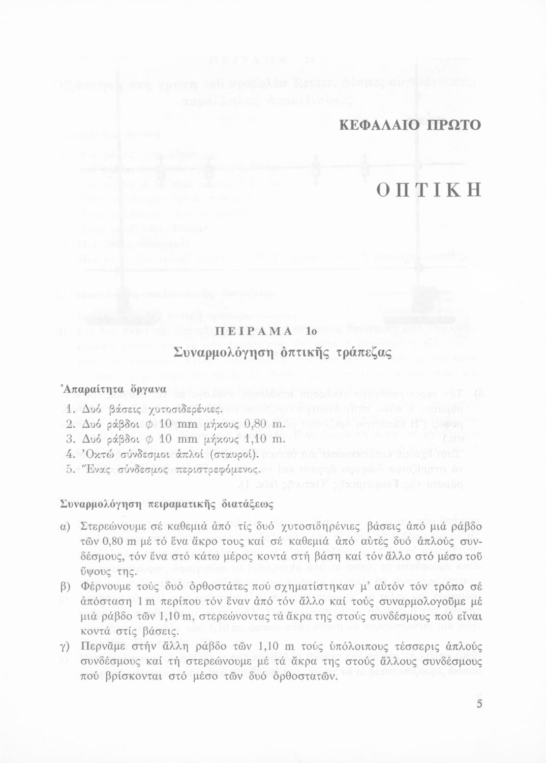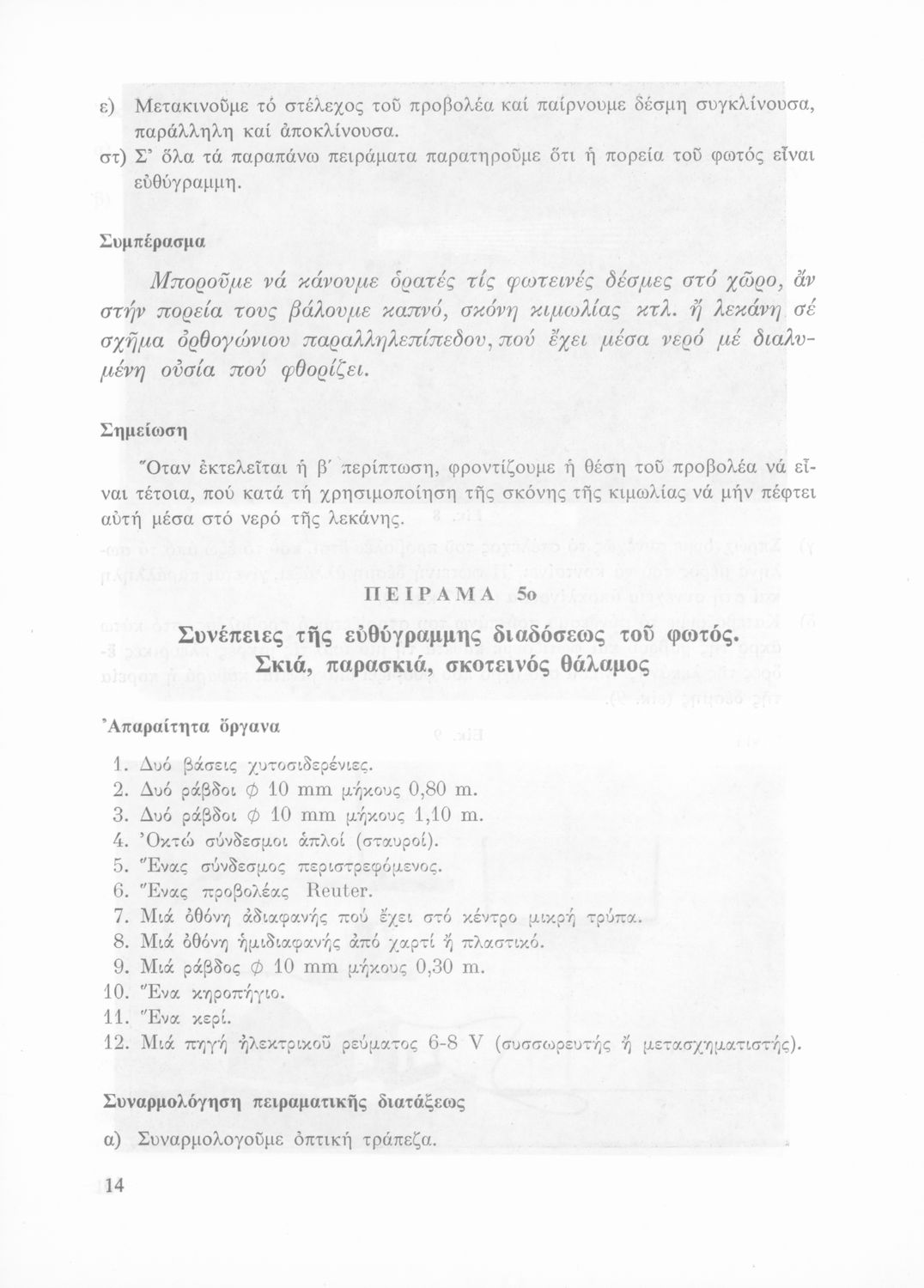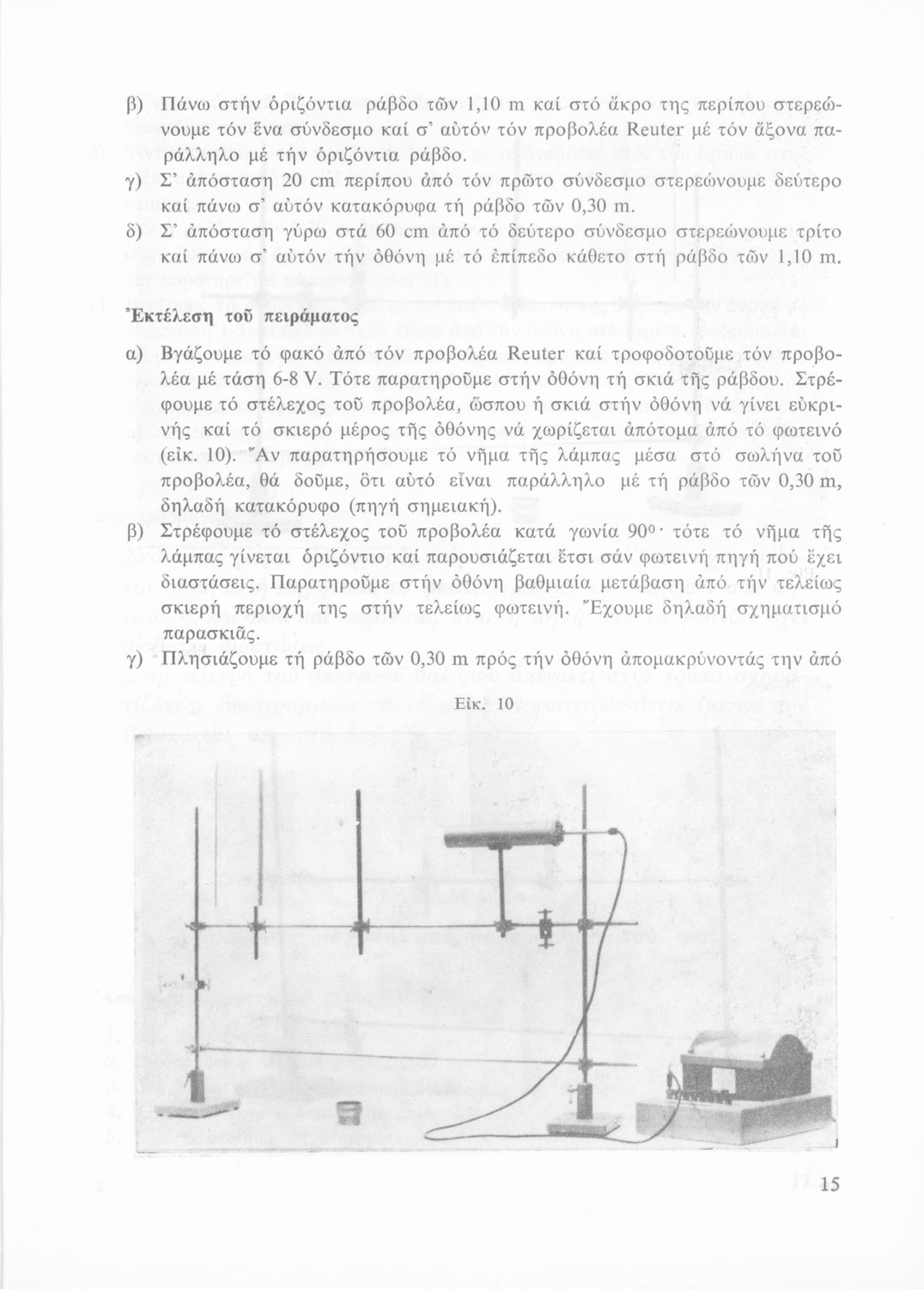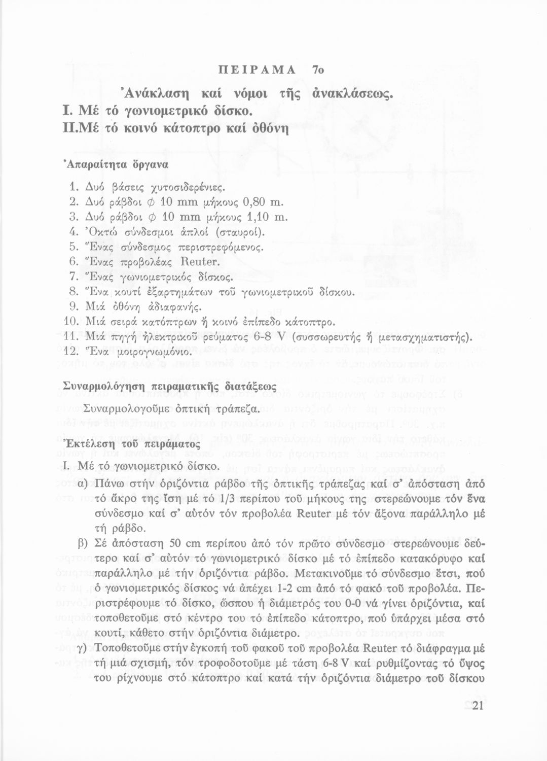 Σχολικό εγχειρίδιο Φυσικής που περιλαμβάνει πειράματα οπτικής, ηλεκτρισμού και μαγνητισμού.