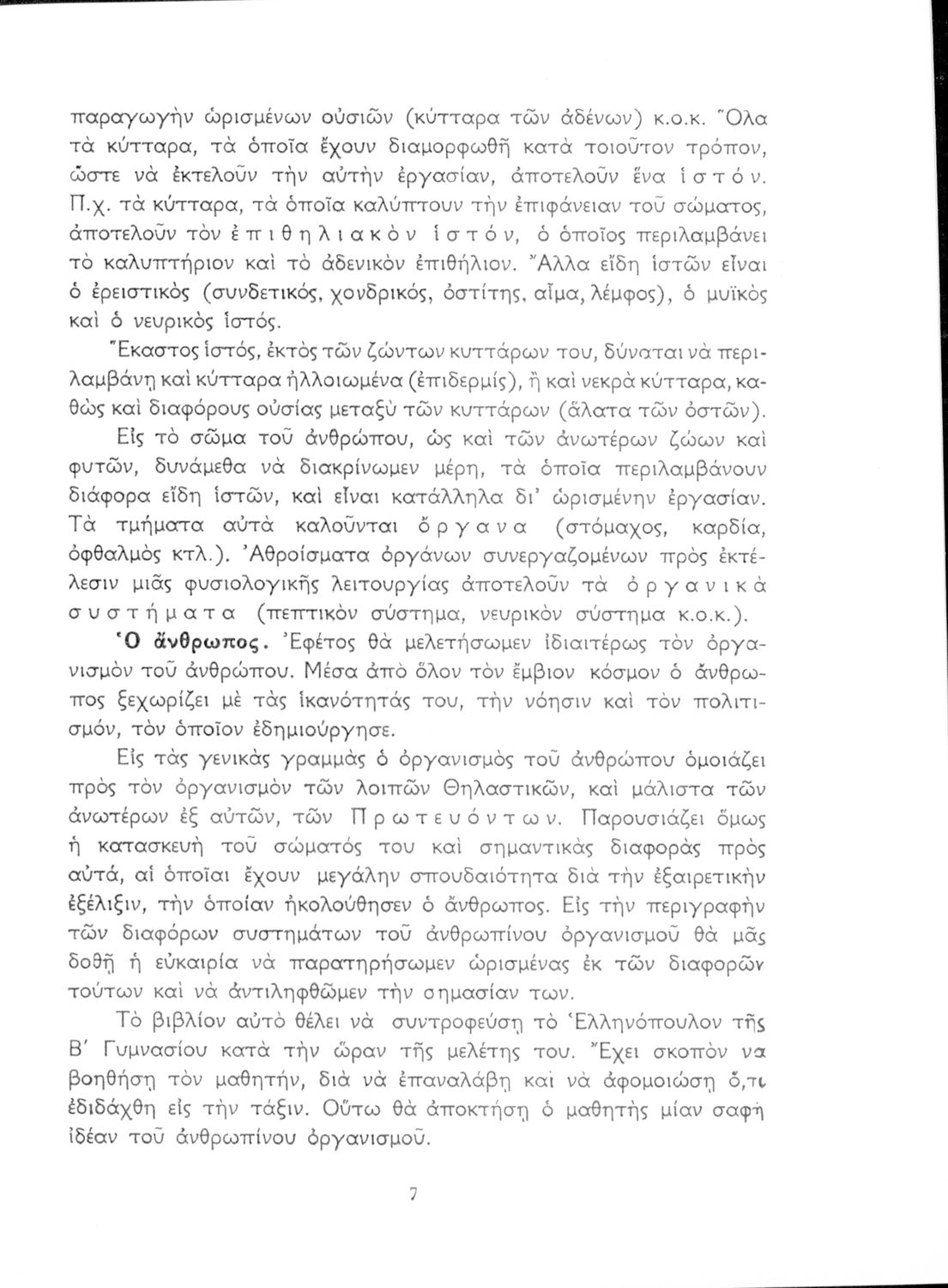 Σχολικό εγχειρίδιο Ανθρωπολογίας Β΄ Γυμνασίου που εστιάζει στην κατασκευή, ανάπτυξη και λειτουργία του ανθρώπινου οργανισμού και τη σχέση του ανθρώπου με το φυσικό περιβάλλον. Περιέχει και αναφορά στις ανθρώπινες φυλές.