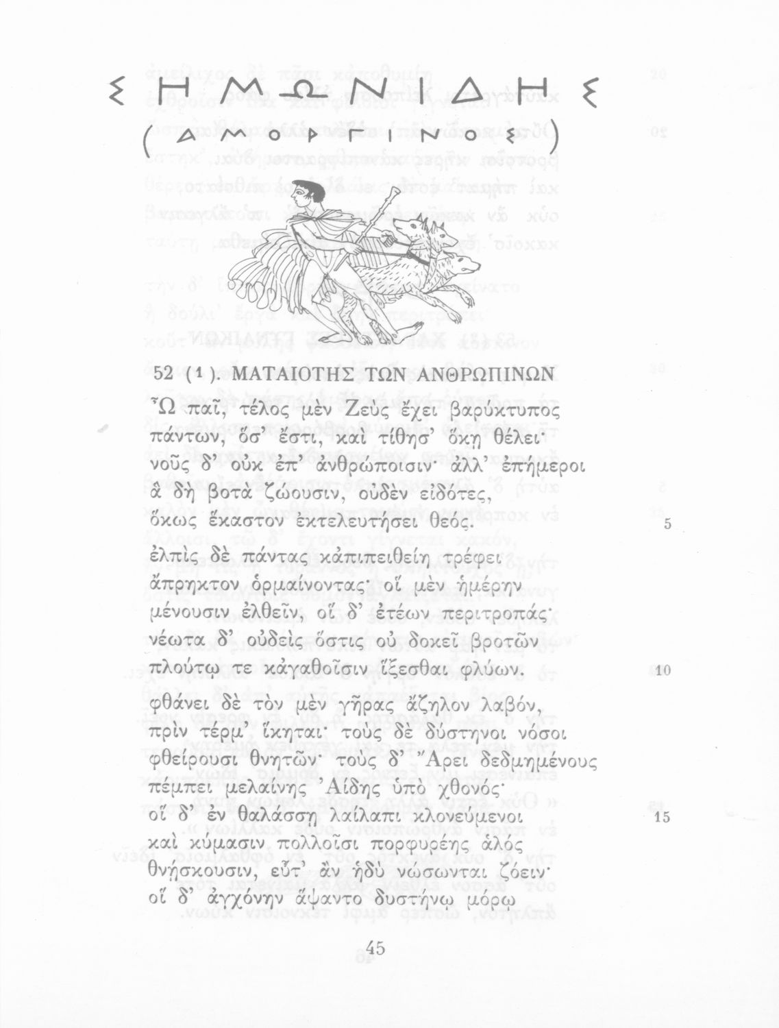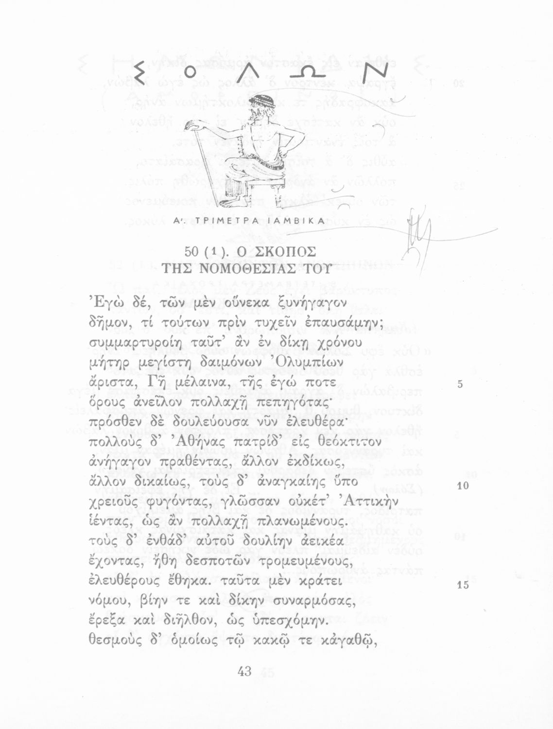 Σχολικό εγχειρίδιο Αρχαίων Ελληνικών Ε΄ Γυμνασίου που περιλαμβάνει αποσπάσματα έργων αρχαίων Ελλήνων λυρικών, πολιτικές και γνωμικές ελεγείες, ιάμβους και επιγράμματα. Περιέχει υπόμνημα με ερμηνευτικά, ...