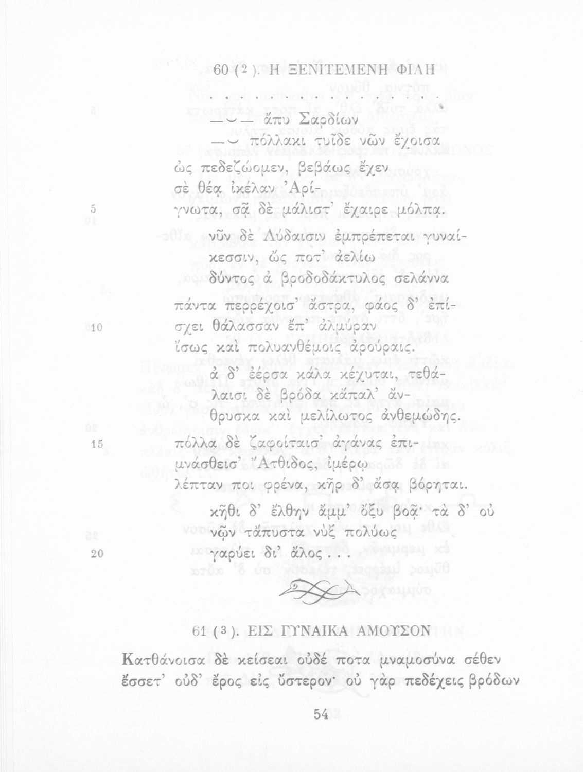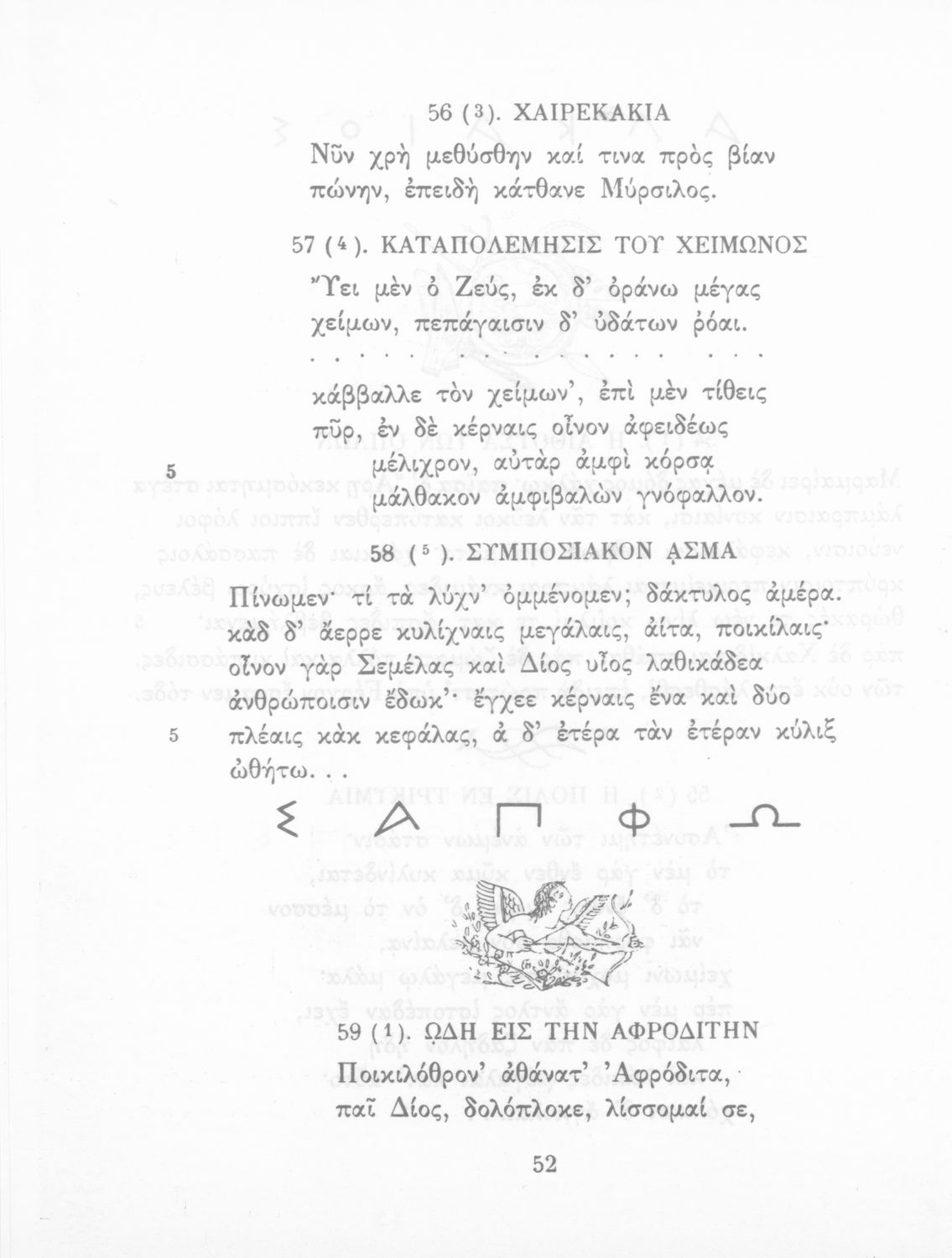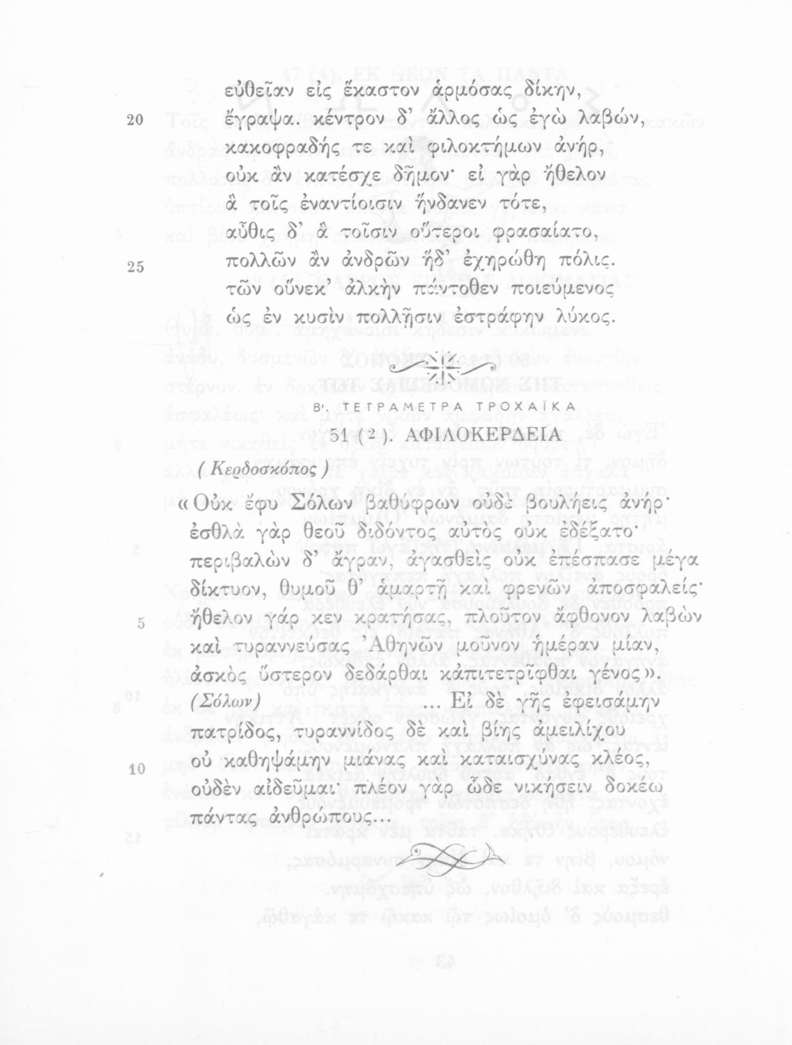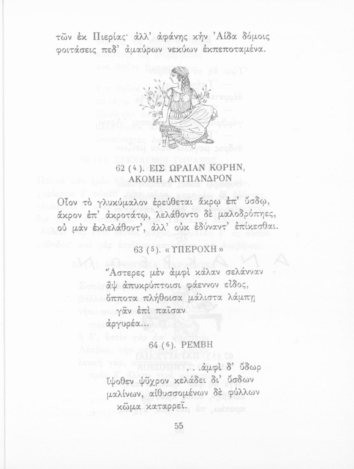 Σχολικό εγχειρίδιο Αρχαίων Ελληνικών που περιέχει αποσπάσματα αρχαίων Ελλήνων λυρικών, εισαγωγή και ερμηνευτικά σχόλια. Κοσμείται από μικρά διακοσμητικά σχέδια.