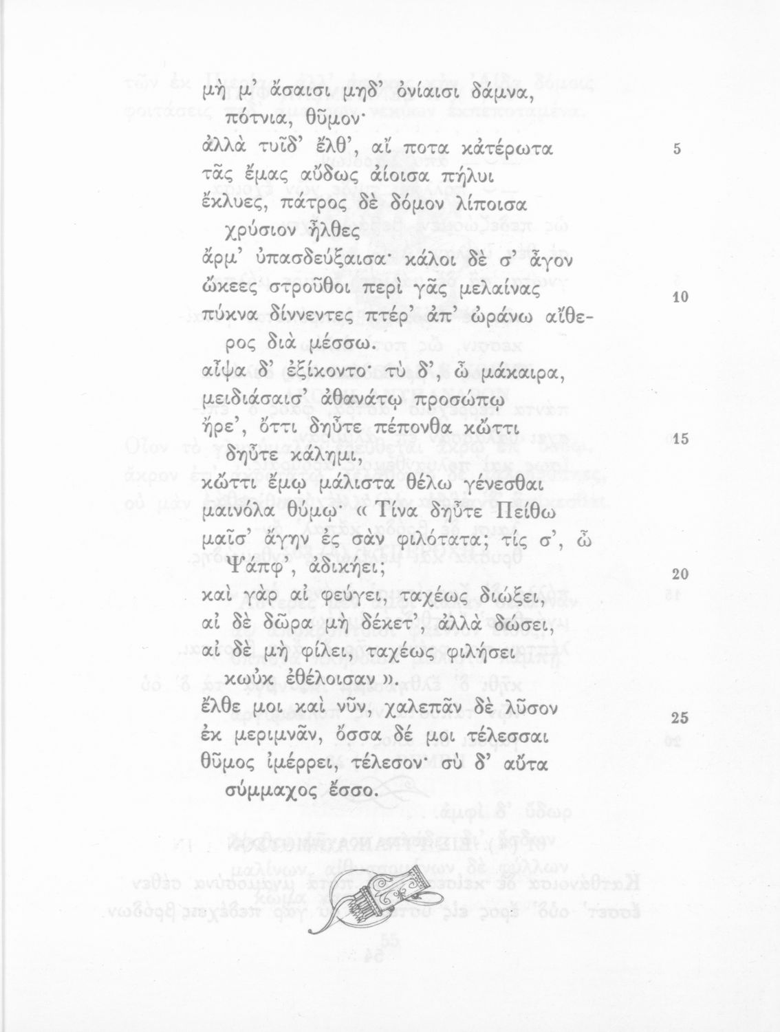 Σχολικό εγχειρίδιο Αρχαίων Ελληνικών Ε΄ Γυμνασίου που περιλαμβάνει εισαγωγή στη λυρική ποίηση, έργα αρχαίων Ελλήνων ποιητών, ερμηνευτικά και πραγματολογικά σχόλια, και λεξιλογικές παρατηρήσεις.