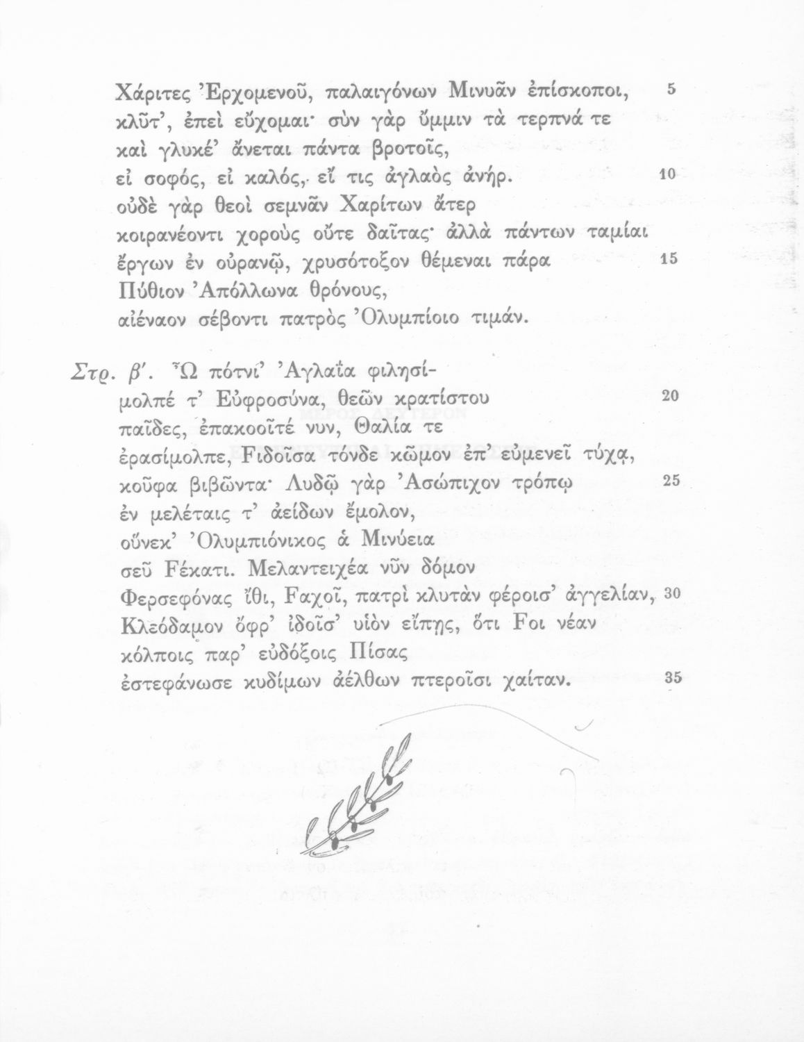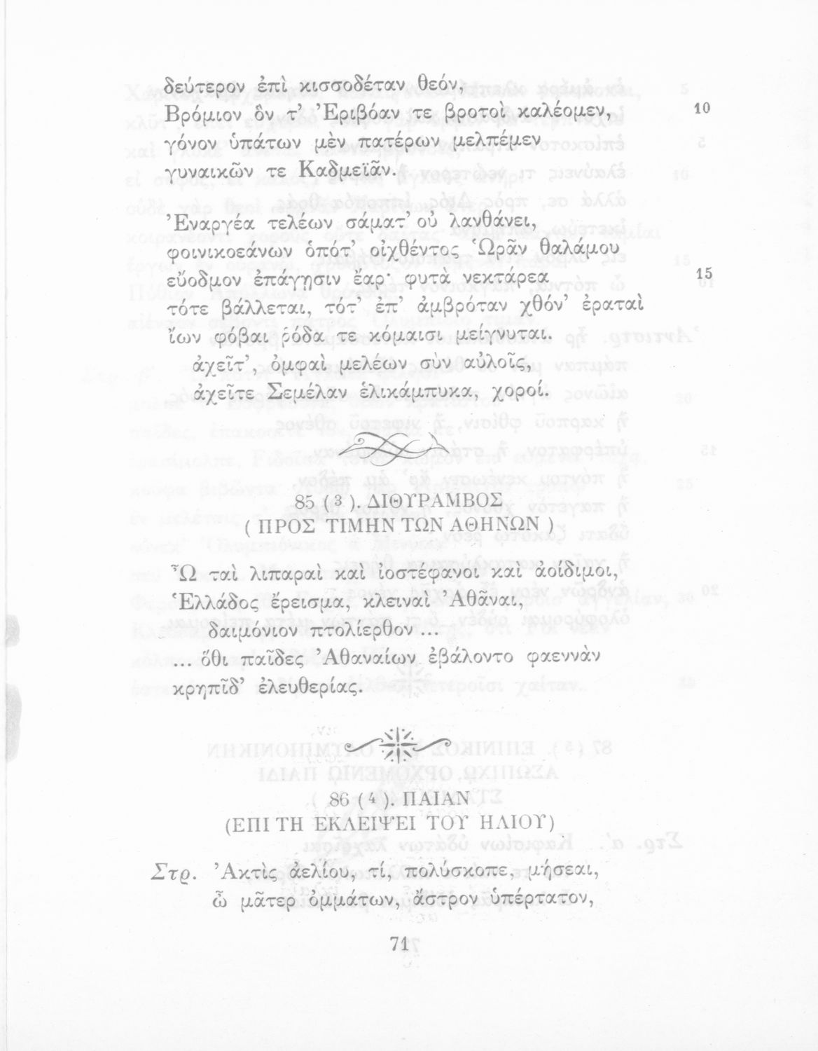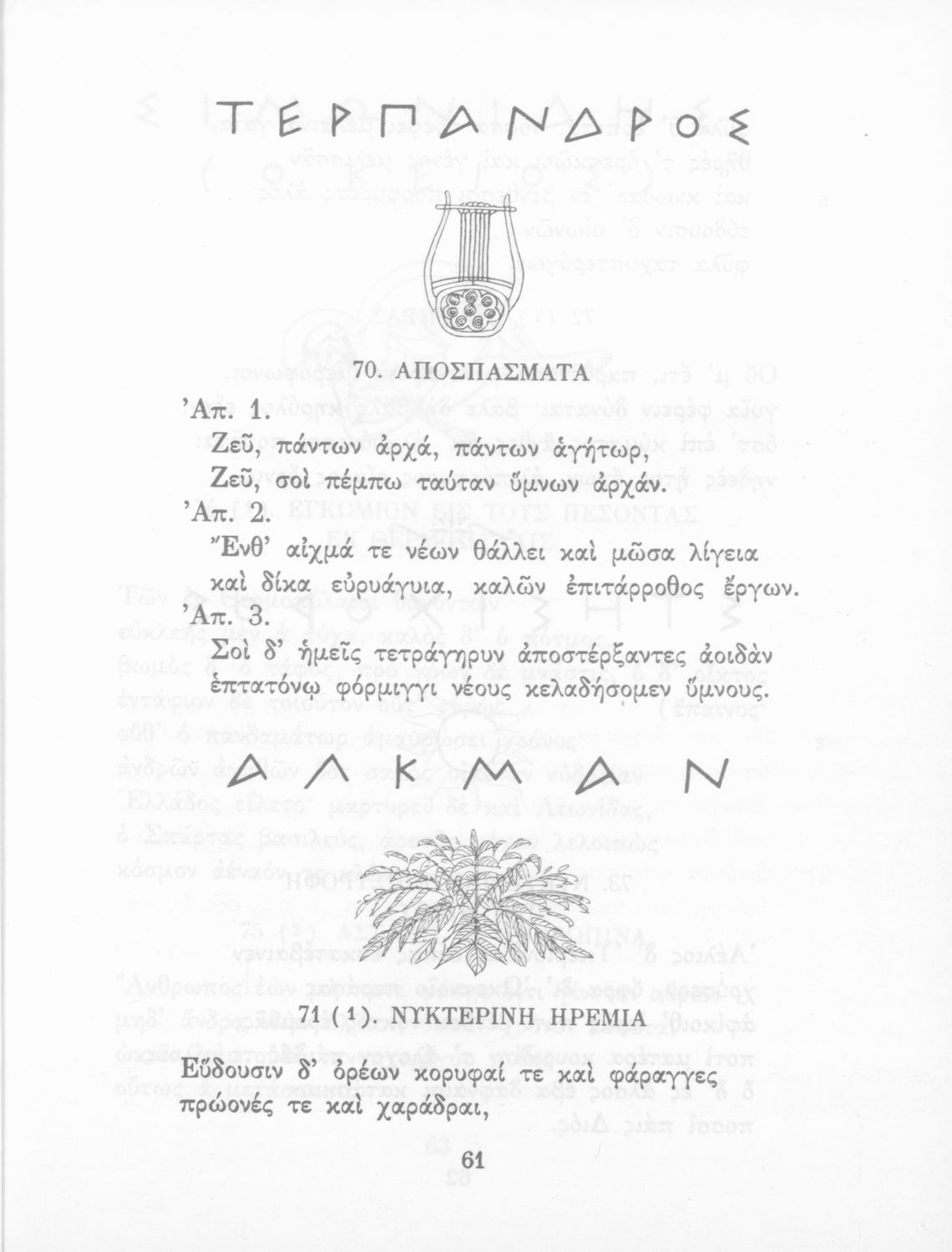 Σχολικό εγχειρίδιο Αρχαίων Ελληνικών που περιέχει αποσπάσματα αρχαίων Ελλήνων λυρικών, εισαγωγή και ερμηνευτικά σχόλια. Κοσμείται από μικρά διακοσμητικά σχέδια.