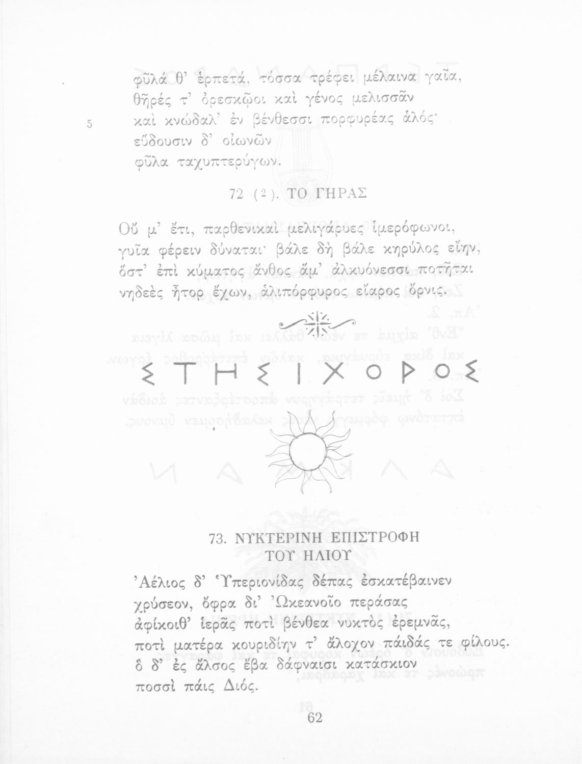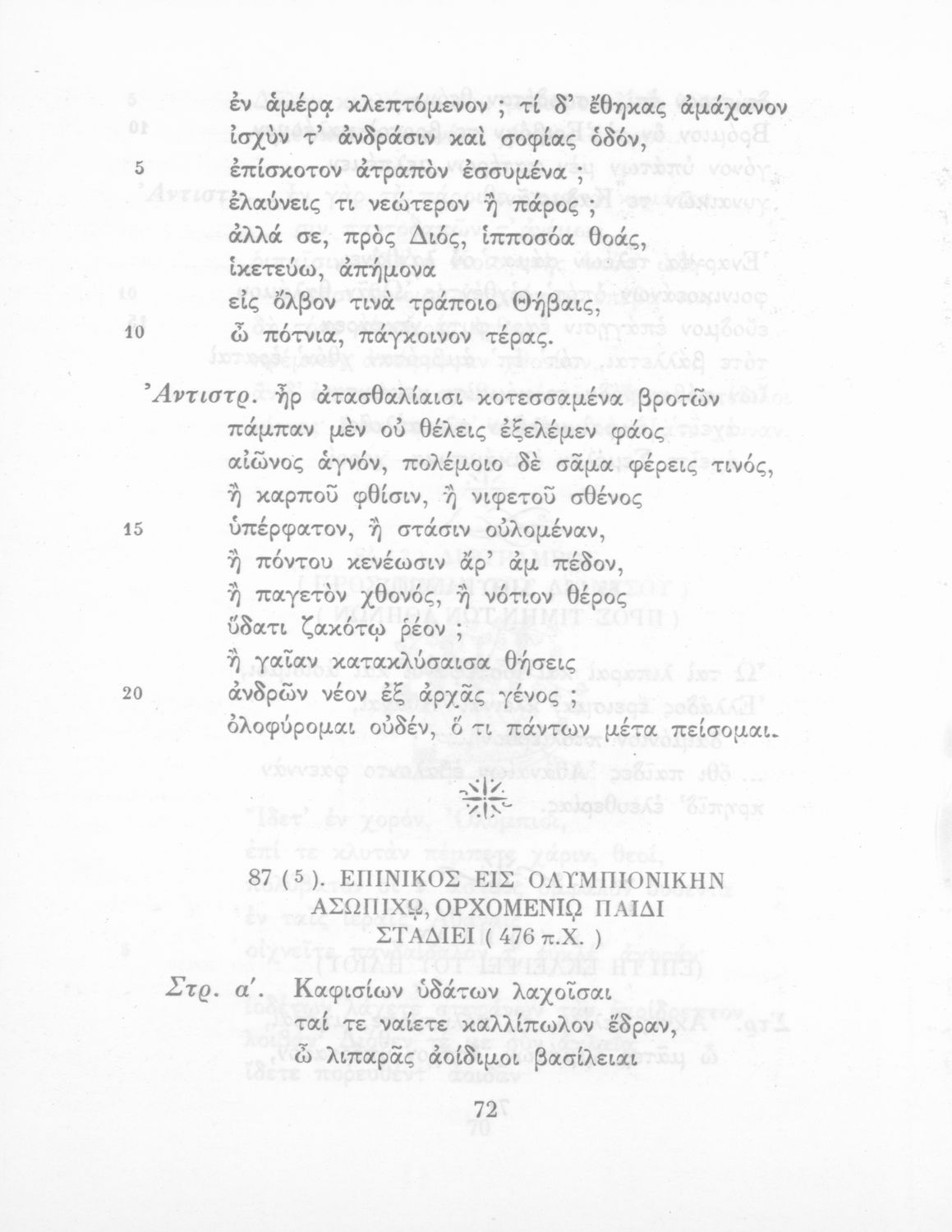 Σχολικό εγχειρίδιο Αρχαίων Ελληνικών Ε΄ Γυμνασίου που περιλαμβάνει εισαγωγή στη λυρική ποίηση, έργα αρχαίων Ελλήνων ποιητών, ερμηνευτικά και πραγματολογικά σχόλια, και λεξιλογικές παρατηρήσεις.