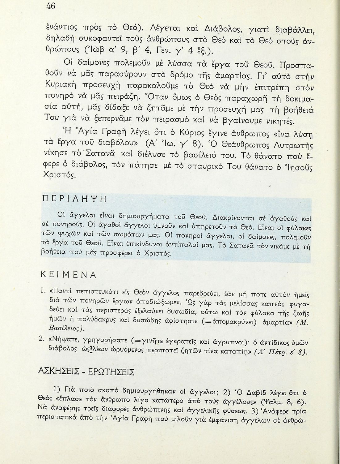 Σχολικό εγχειρίδιο Θρησκευτικών Γ΄ Γυμνασίου που περιλαμβάνει θέματα όπως η συμβολική διάσταση των Αγγέλων στη χριστιανική παράδοση, η ζωή και διδασκαλία του Ιησού Χριστού, η σημασία της Δευτέρας Παρουσίας και