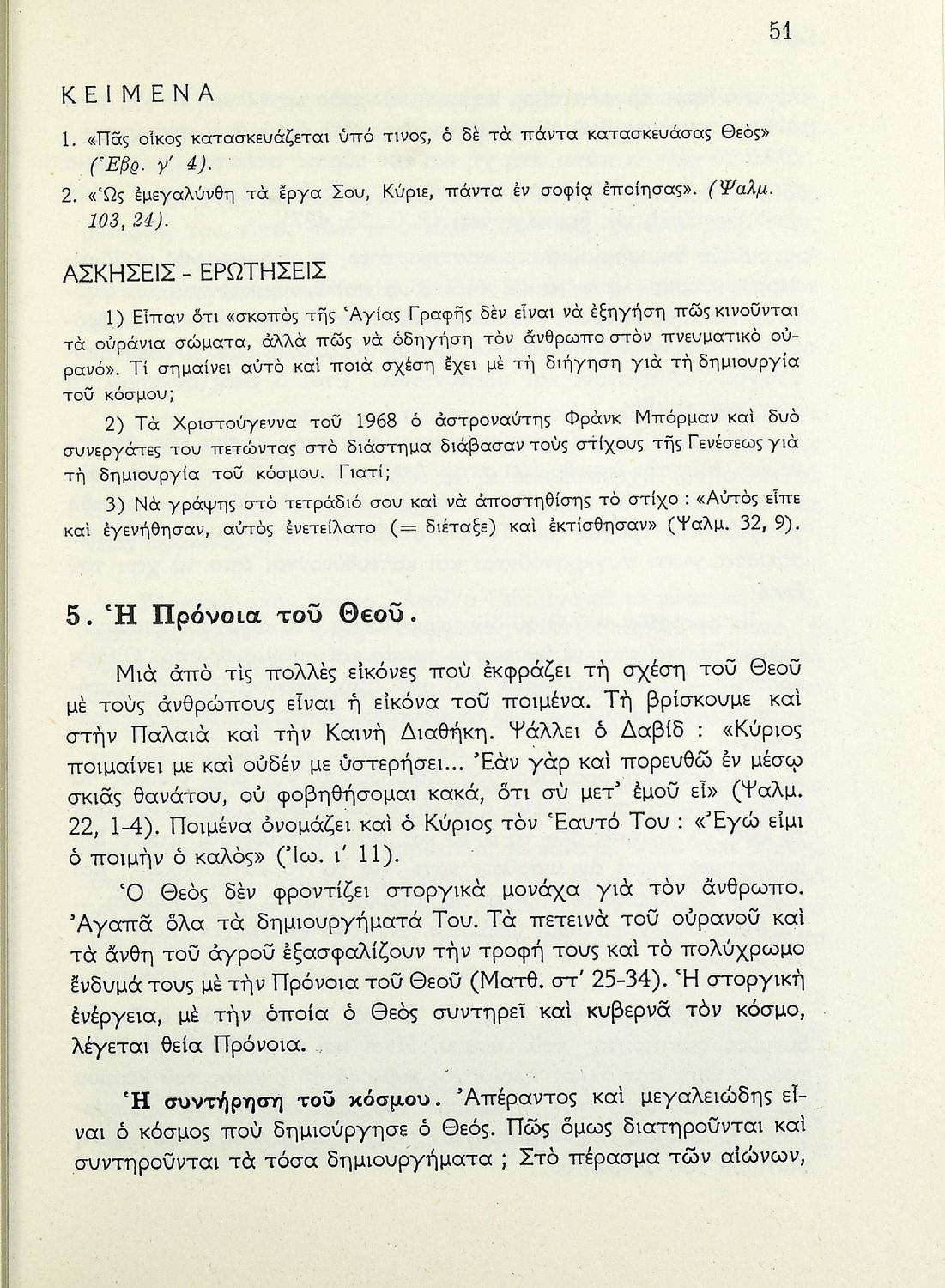 Σχολικό εγχειρίδιο Θρησκευτικών για την Ε΄ Γυμνασίου. Στο βιβλίο αναλύονται οι βασικές αλήθειες της πίστης και περιλαμβάνονται στοιχεία για τη λειτουργική λατρεία και ζωή της Εκκλησίας