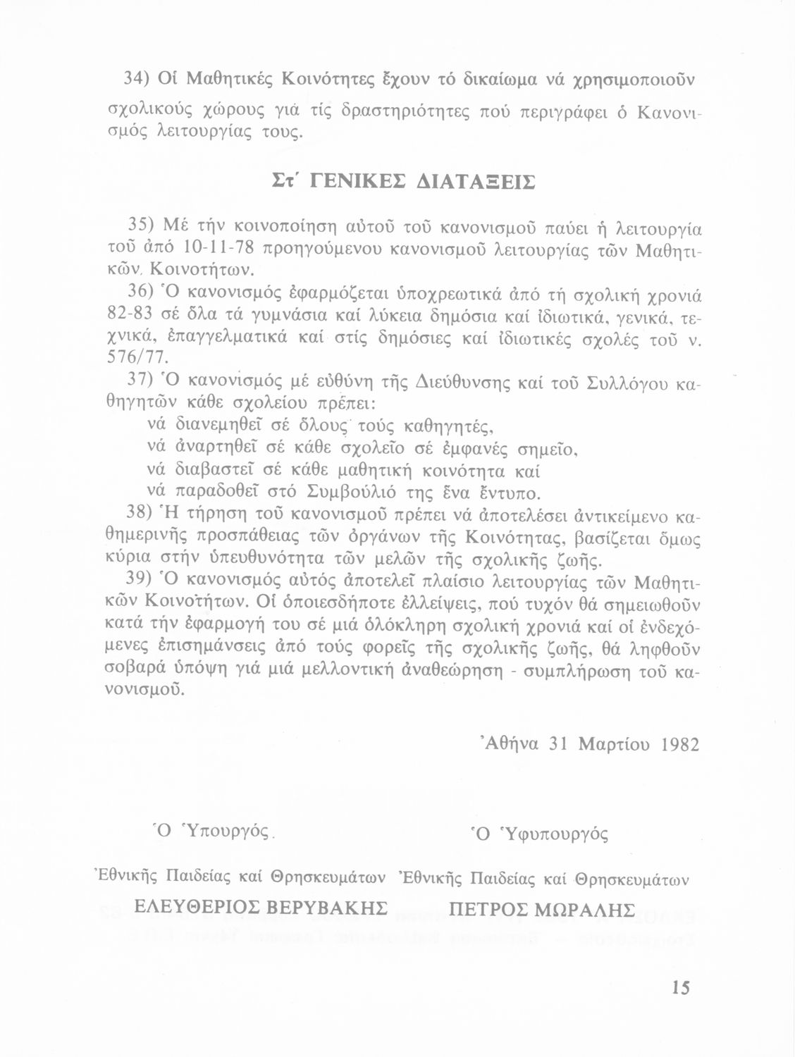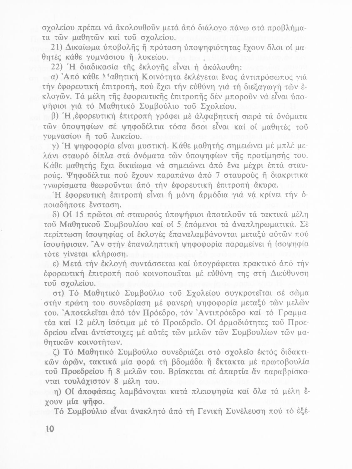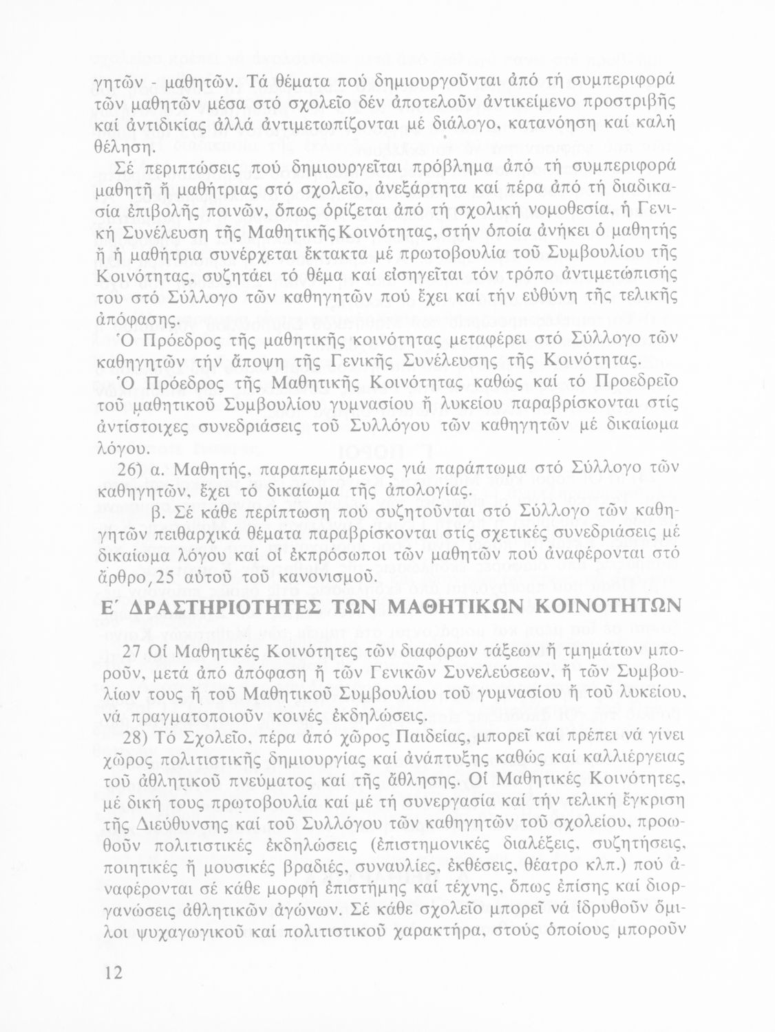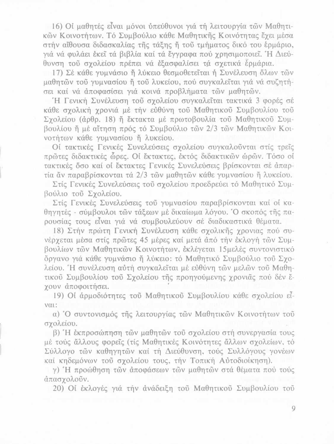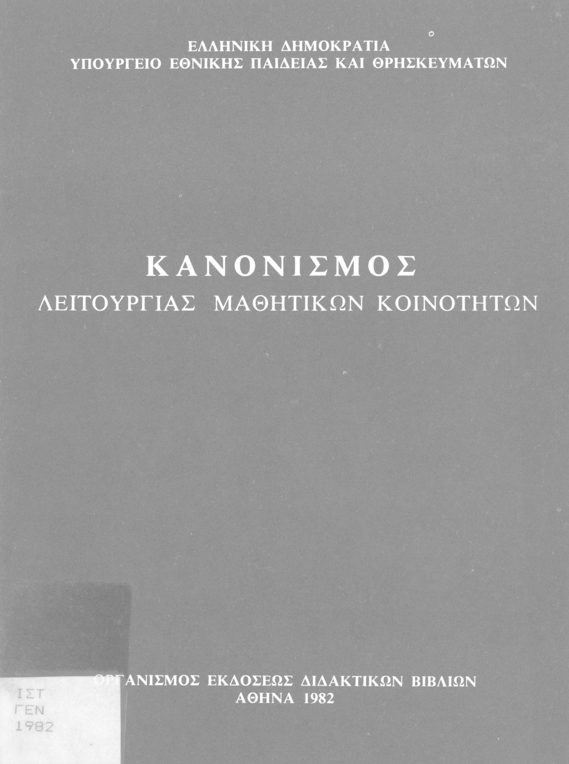 Έκδοση του Υπουργείου Εθνικής Παιδείας και Θρησκευμάτων που περιλαμβάνει τους κανόνες και νόμους για την λειτουργία των μαθητικών κοινοτήτων.