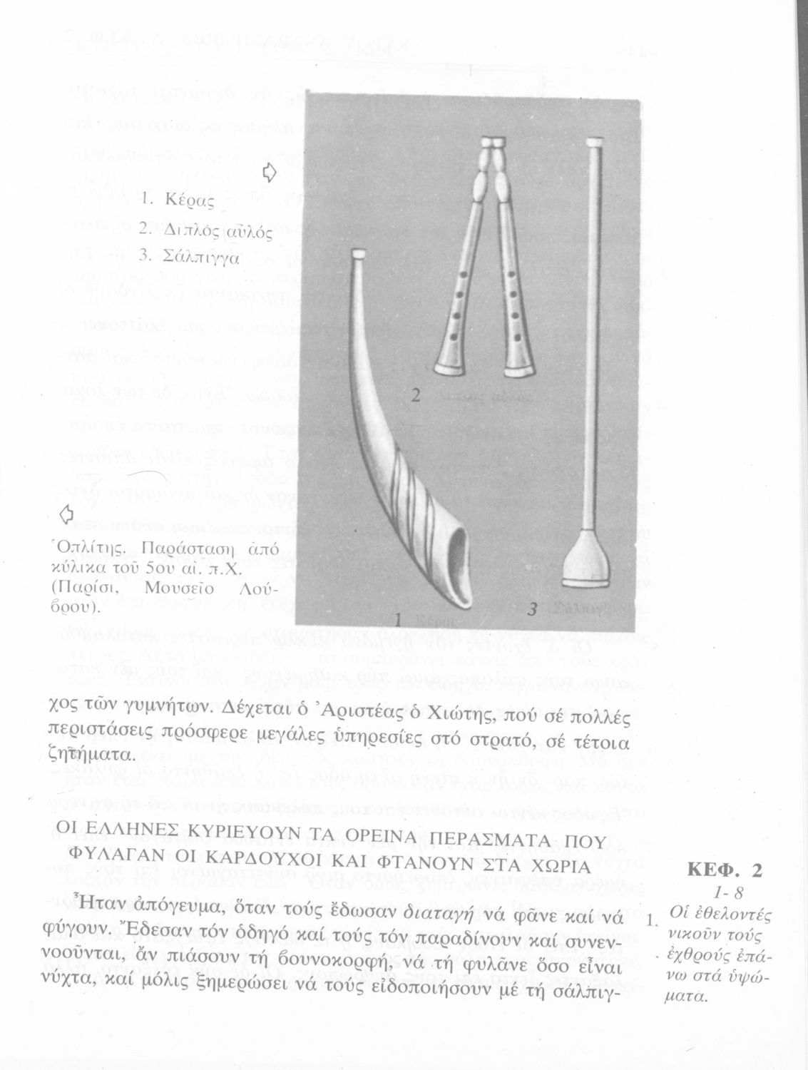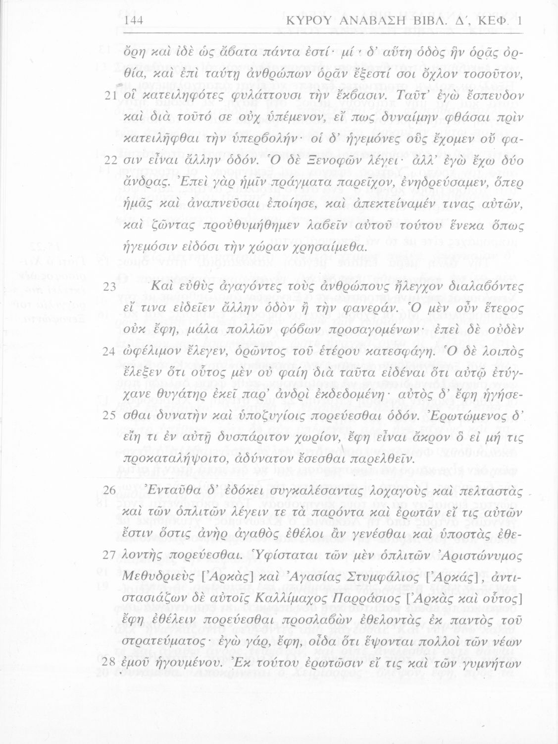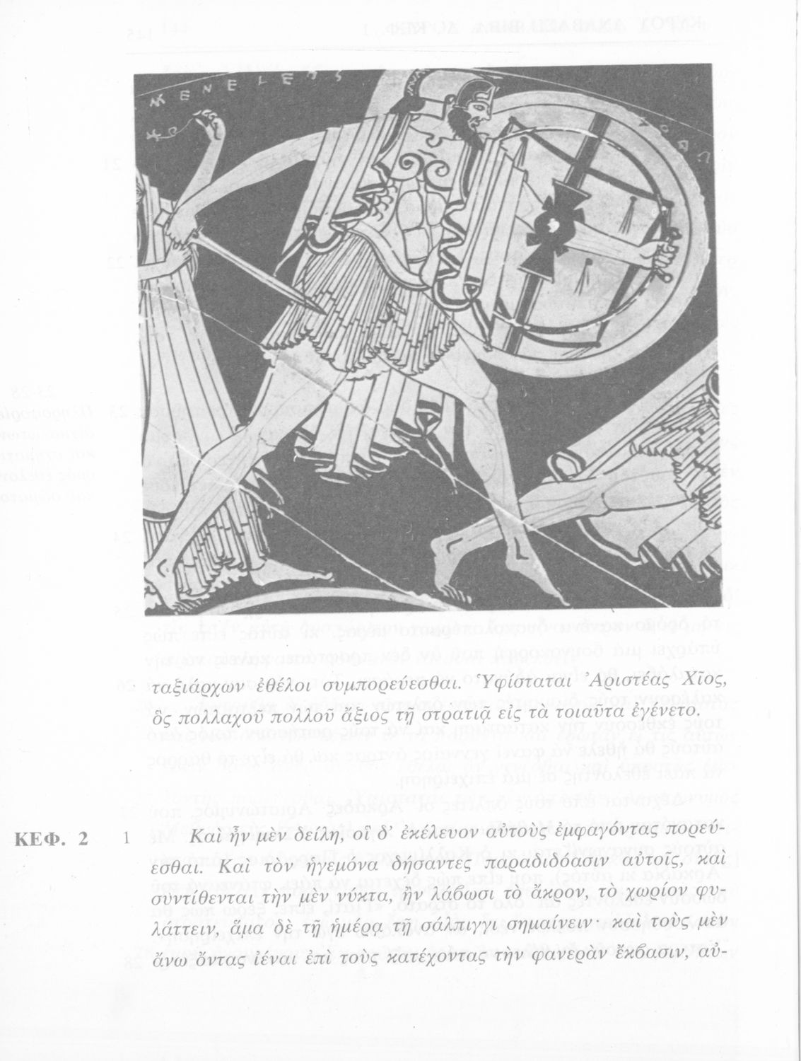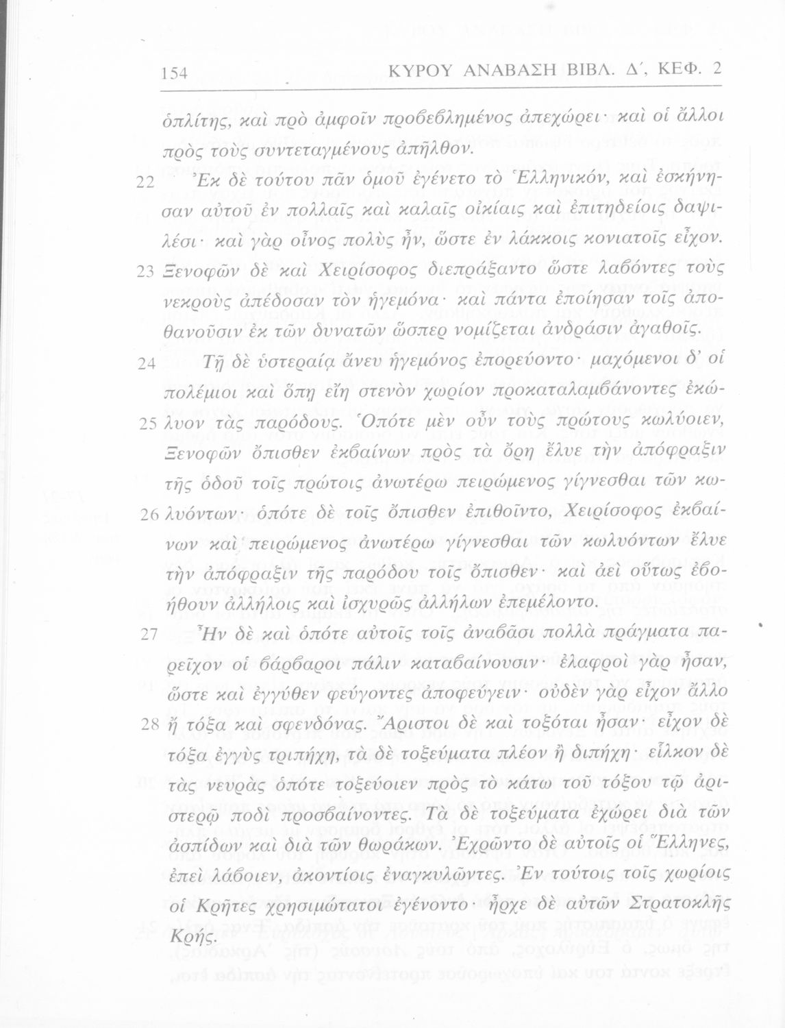 Σχολικό εγχειρίδιο Αρχαίων Ελληνικών. Από τα εφτά μέρη της "Κύρου Ανάβασις" του Ξενοφώντα που περιέχονται στο εγχειρίδιο το Πρώτο και το Έβδομο αναφέρονται περιληπτικά. Στο βιβλίο περιλαμβάνονται εισαγωγικό σημείωμα για τη ζωή και το έργο του Ξενοφώντα, σημειώσεις πάνω στα κείμενα ενώ διανθίζεται από εικόνες, χάρτες και διαγράμματα.