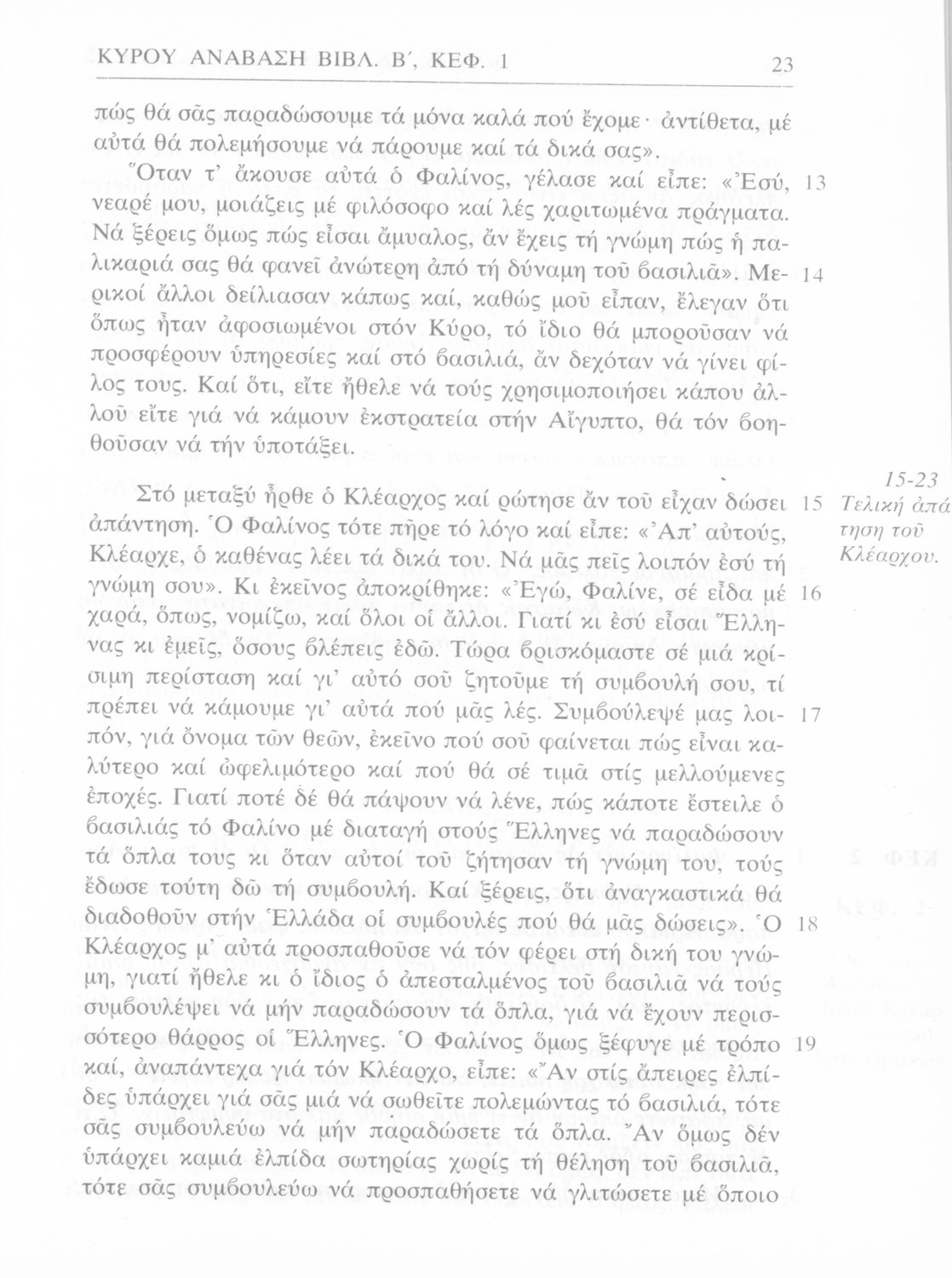 Σχολικό Εγχειρίδιο Αρχαίων Ελληνικών της Β' Γυμνασίου. Το βιβλίο αναφέρεται στο σύγγραμμα του Ξενοφώντα για την εκστρατεία του Κύρου κατά του Αρταξέρξη και κυρίως την κάθοδο ( επιστροφή) των Μυρίων. Στο ...