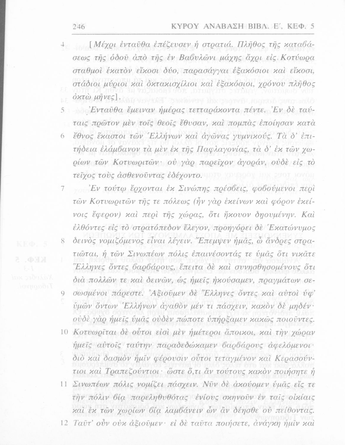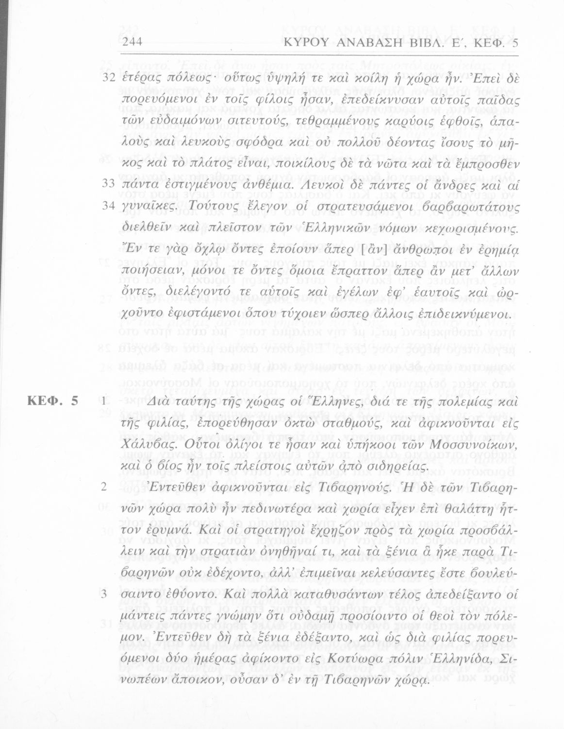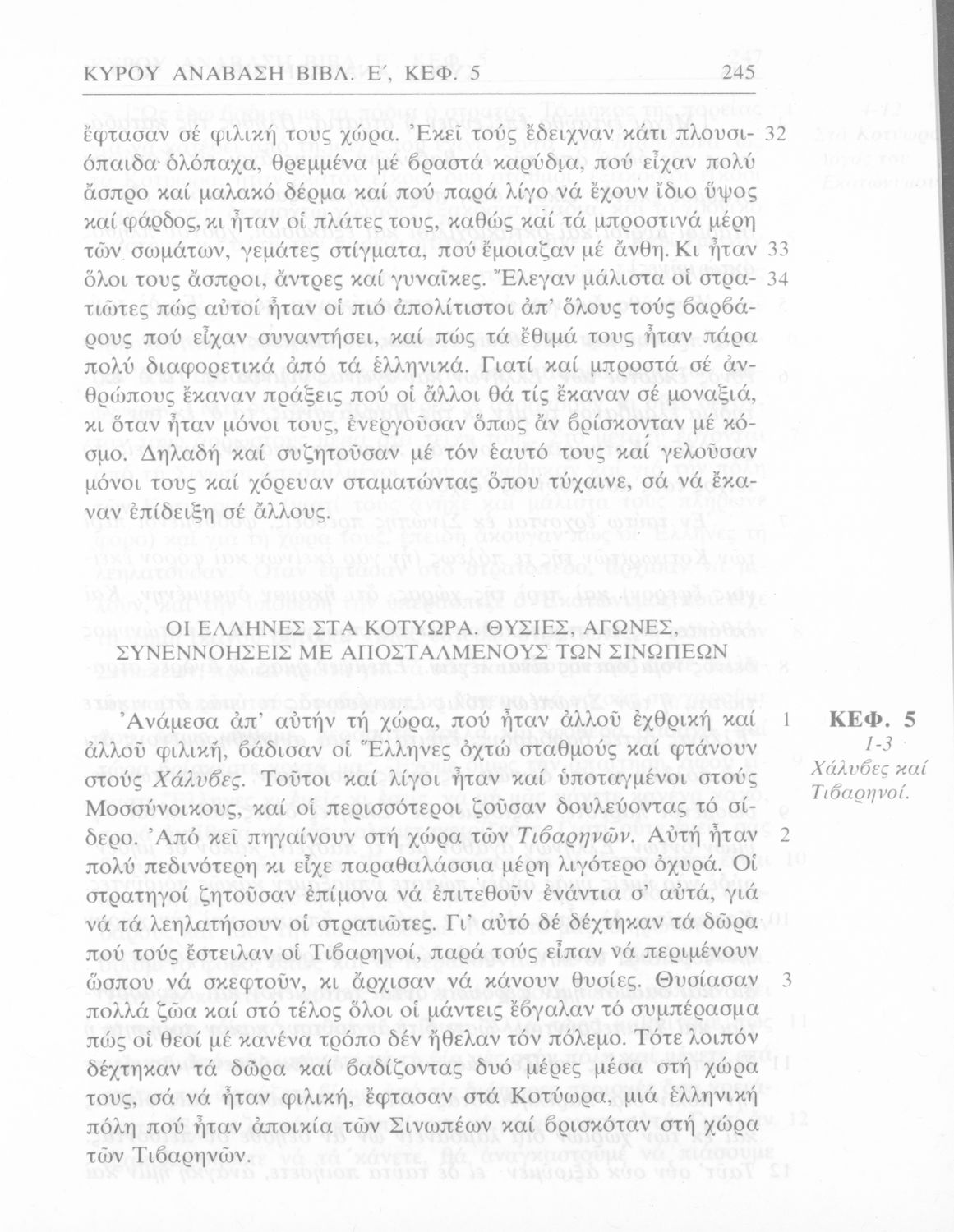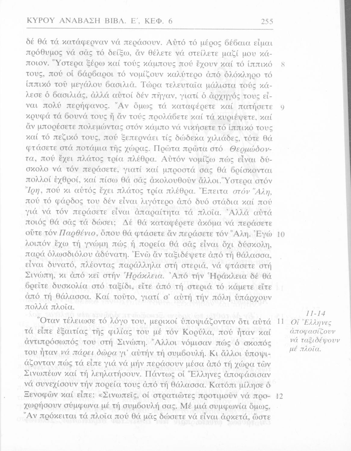 Σχολικό εγχειρίδιο Αρχαίων Ελληνικών α΄ Γυμνασίου που περιλαμβάνει μετάφραση του έργου του Ξενοφώντα Κύρου Ανάβασις, εισαγωγικά σχόλια για τη ζωή και το έργο του, και ερμηνευτικές παρατηρήσεις.