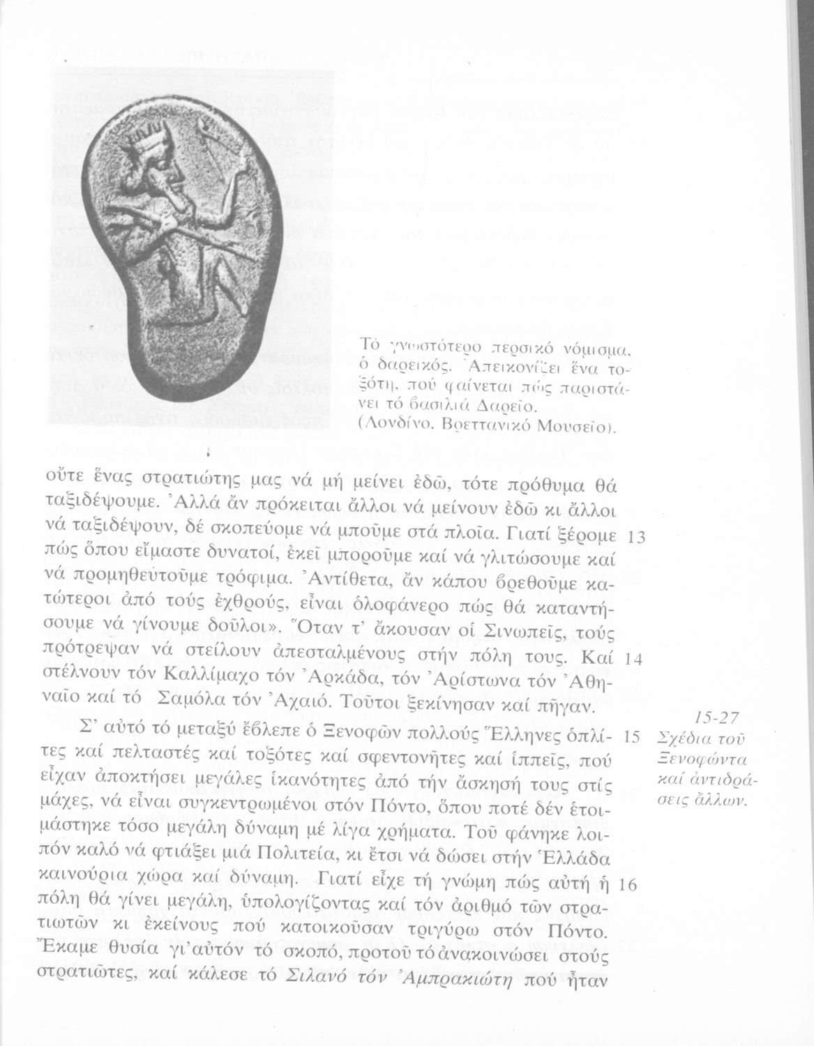 Σχολικό Εγχειρίδιο Αρχαίων Ελληνικών της Β' Γυμνασίου. Το βιβλίο αναφέρεται στο σύγγραμμα του Ξενοφώντα για την εκστρατεία του Κύρου κατά του Αρταξέρξη και κυρίως την κάθοδο ( επιστροφή) των Μυρίων. Στο ...