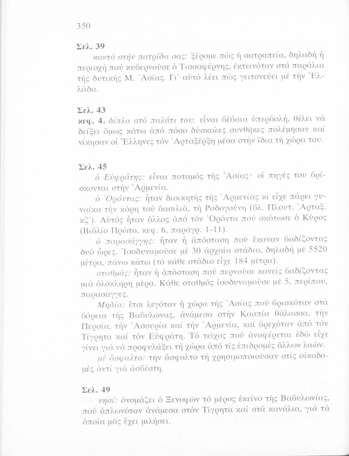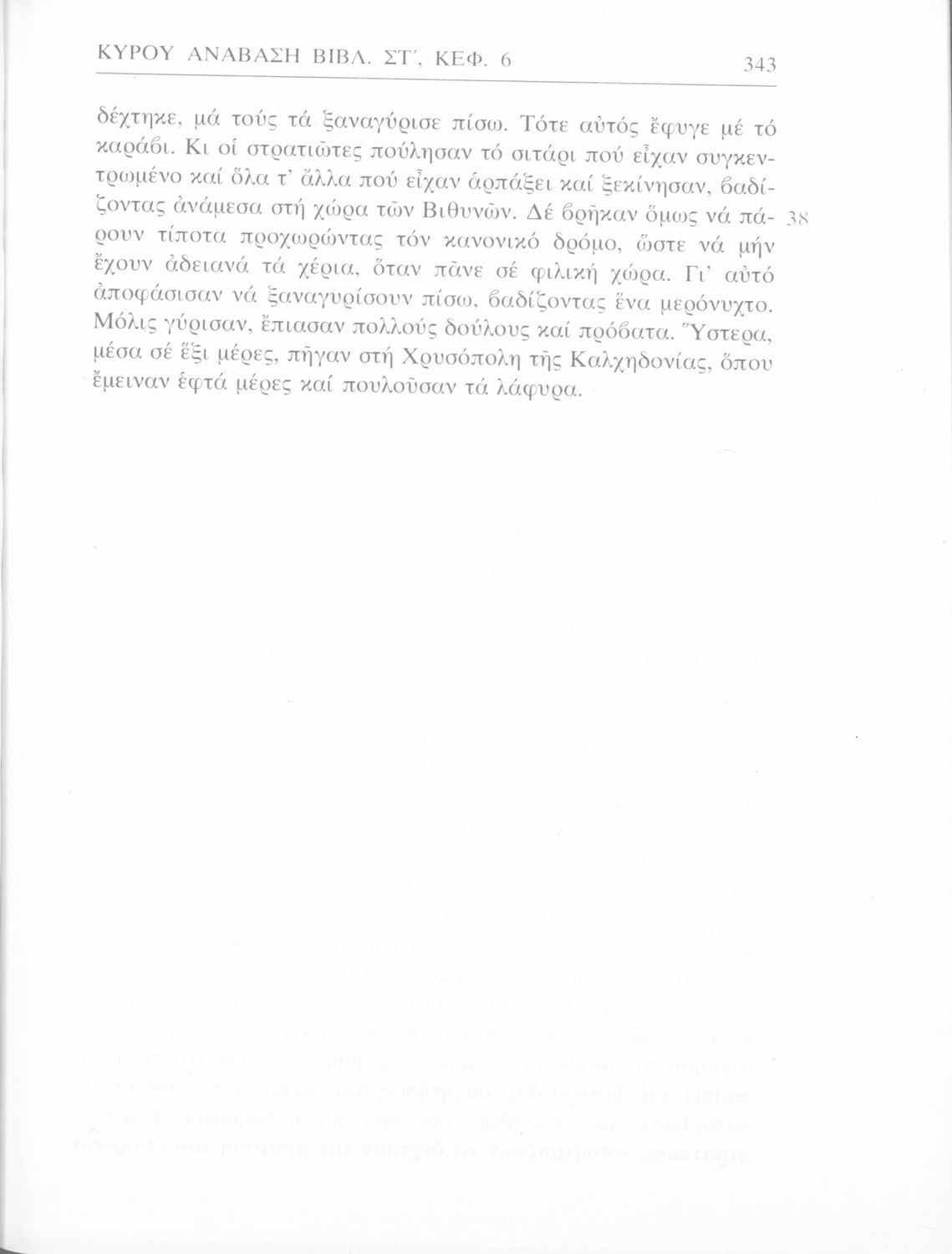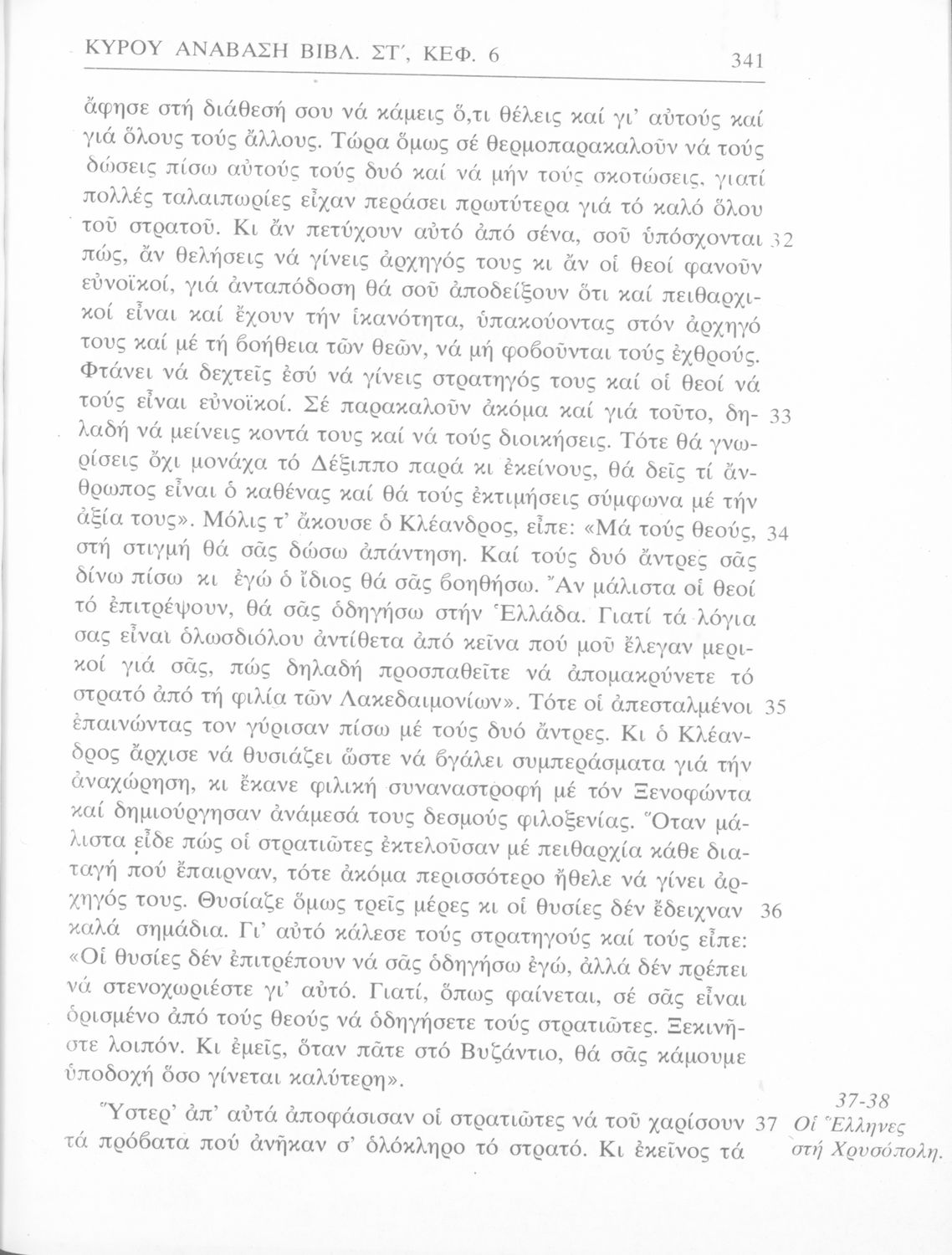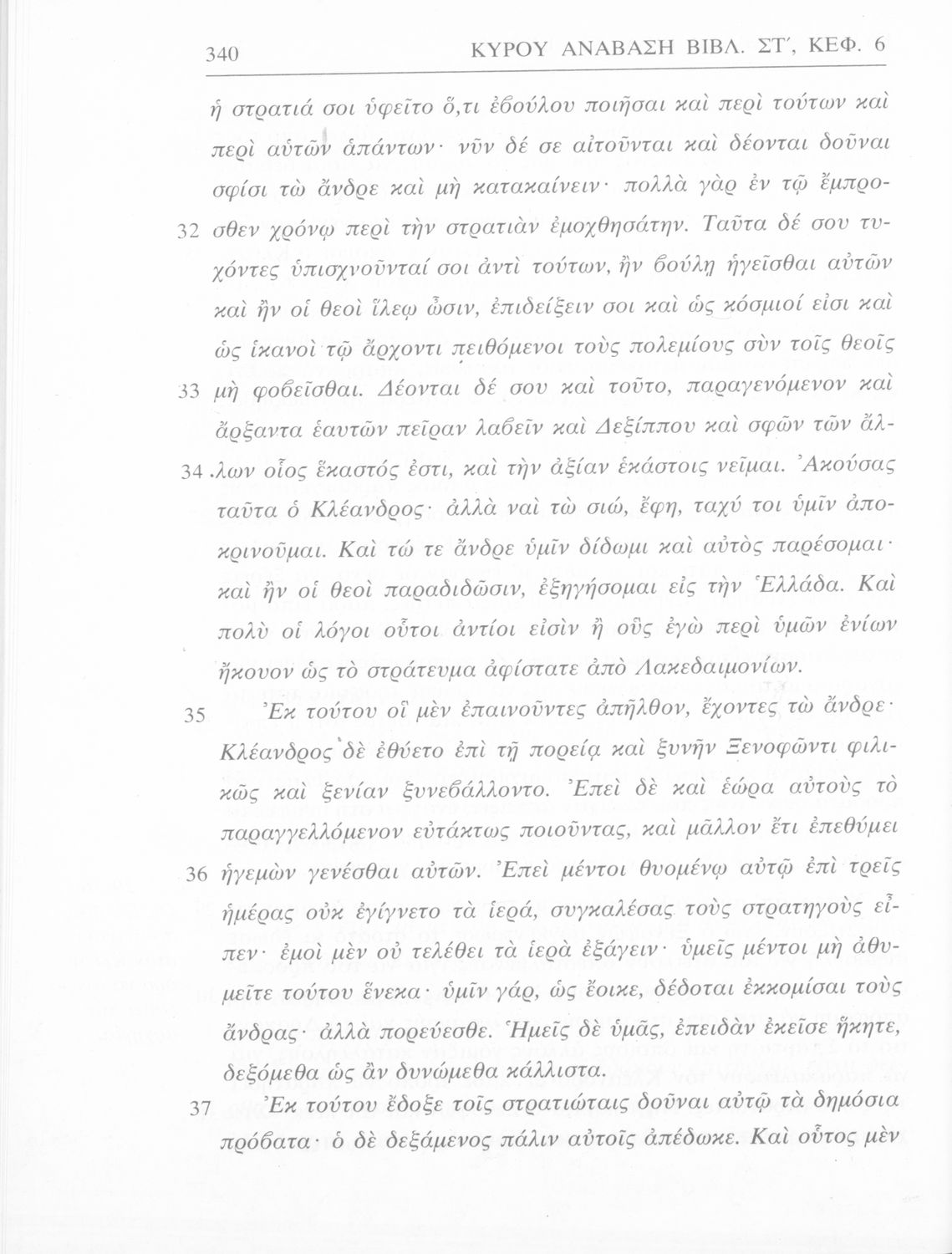 Σχολικό εγχειρίδιο Αρχαίων Ελληνικών. Από τα εφτά μέρη της "Κύρου Ανάβασις" του Ξενοφώντα που περιέχονται στο εγχειρίδιο το Πρώτο και το Έβδομο αναφέρονται περιληπτικά. Στο βιβλίο περιλαμβάνονται εισαγωγικό σημείωμα για τη ζωή και το έργο του Ξενοφώντα, σημειώσεις πάνω στα κείμενα ενώ διανθίζεται από εικόνες, χάρτες και διαγράμματα.