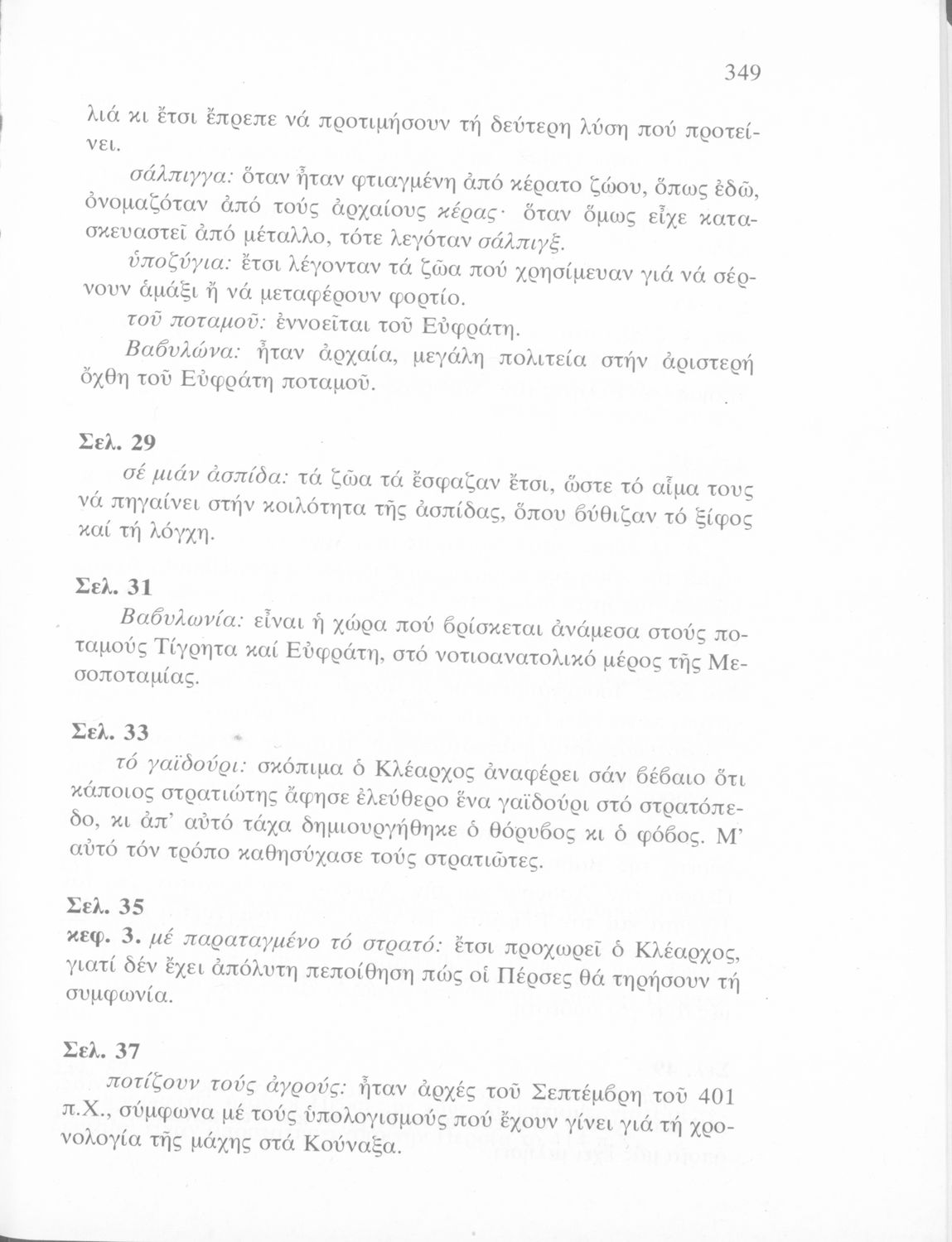 Σχολικό Εγχειρίδιο Αρχαίων Ελληνικών της Β' Γυμνασίου. Το βιβλίο αναφέρεται στο σύγγραμμα του Ξενοφώντα για την εκστρατεία του Κύρου κατά του Αρταξέρξη και κυρίως την κάθοδο ( επιστροφή) των Μυρίων. Στο ...