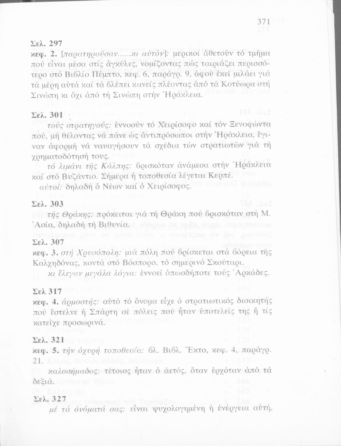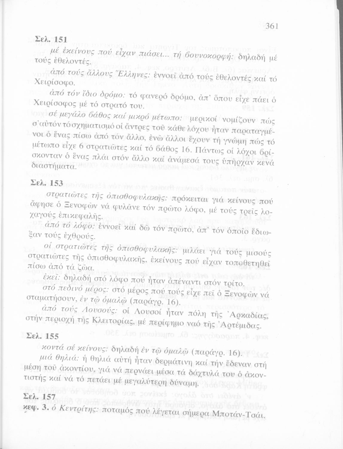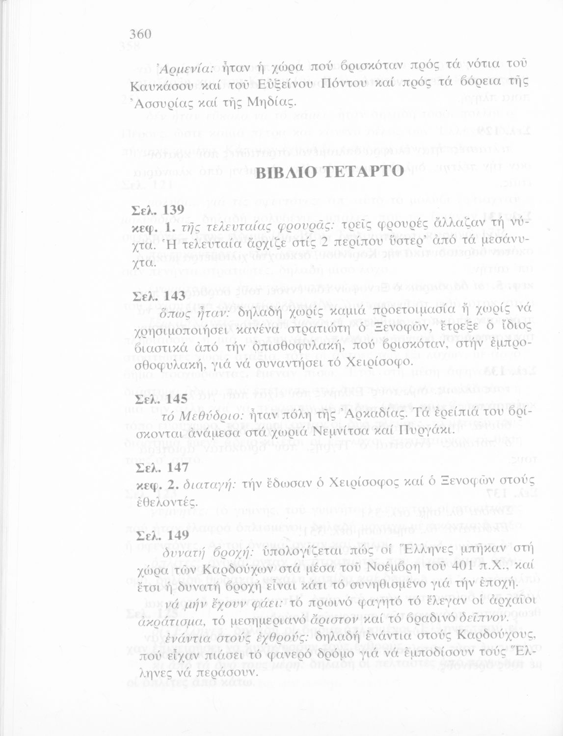 Σχολικό εγχειρίδιο Αρχαίων Ελληνικών. Από τα εφτά μέρη της "Κύρου Ανάβασις" του Ξενοφώντα που περιέχονται στο εγχειρίδιο το Πρώτο και το Έβδομο αναφέρονται περιληπτικά. Στο βιβλίο περιλαμβάνονται εισαγωγικό σημείωμα για τη ζωή και το έργο του Ξενοφώντα, σημειώσεις πάνω στα κείμενα ενώ διανθίζεται από εικόνες, χάρτες και διαγράμματα.