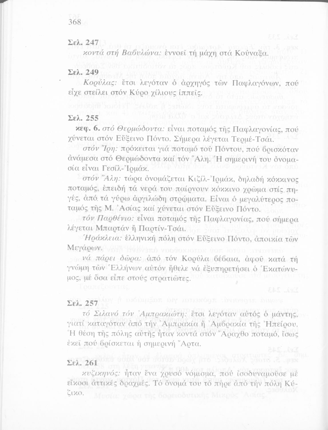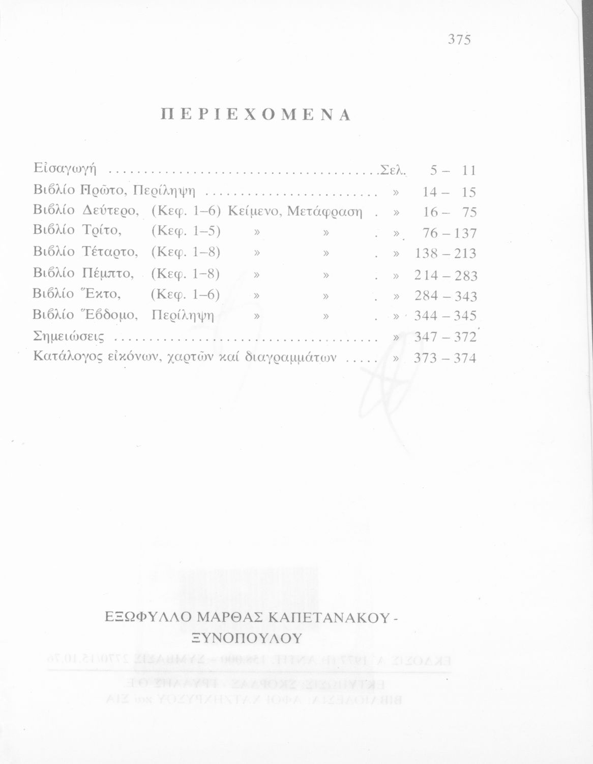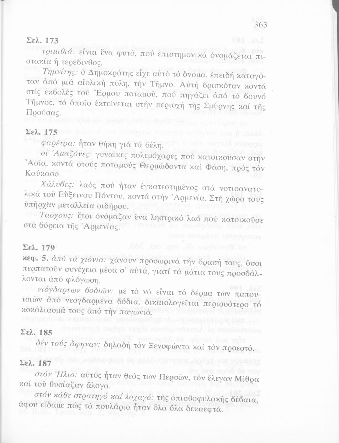 Σχολικό εγχειρίδιο Αρχαίων Ελληνικών. Από τα εφτά μέρη της "Κύρου Ανάβασις" του Ξενοφώντα που περιέχονται στο εγχειρίδιο το Πρώτο και το Έβδομο αναφέρονται περιληπτικά. Στο βιβλίο περιλαμβάνονται εισαγωγικό σημείωμα για τη ζωή και το έργο του Ξενοφώντα, σημειώσεις πάνω στα κείμενα ενώ διανθίζεται από εικόνες, χάρτες και διαγράμματα.
