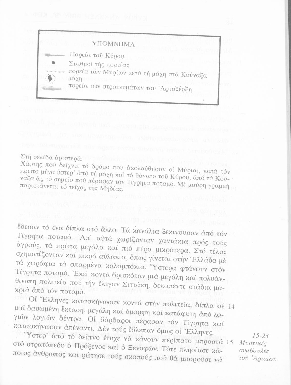 Σχολικό Εγχειρίδιο Αρχαίων Ελληνικών της Β' Γυμνασίου. Το βιβλίο αναφέρεται στο σύγγραμμα του Ξενοφώντα για την εκστρατεία του Κύρου κατά του Αρταξέρξη και κυρίως την κάθοδο ( επιστροφή) των Μυρίων. Στο ...