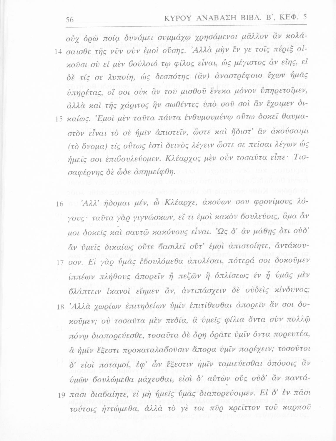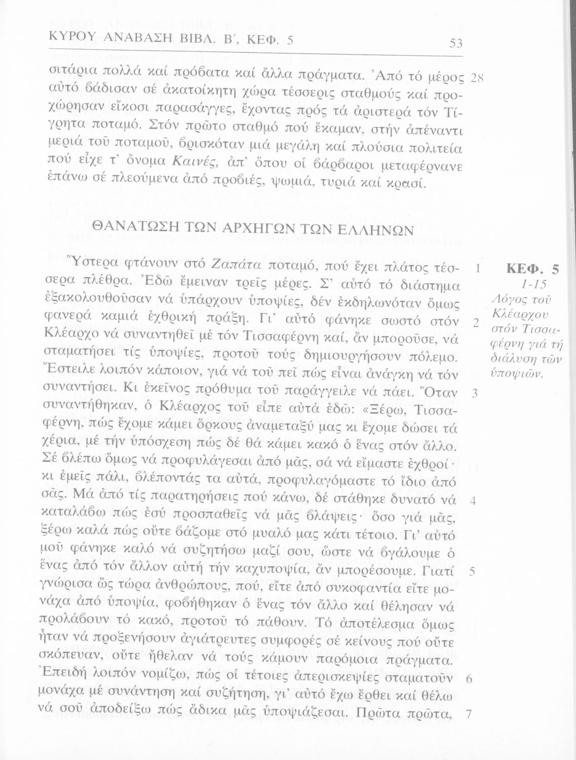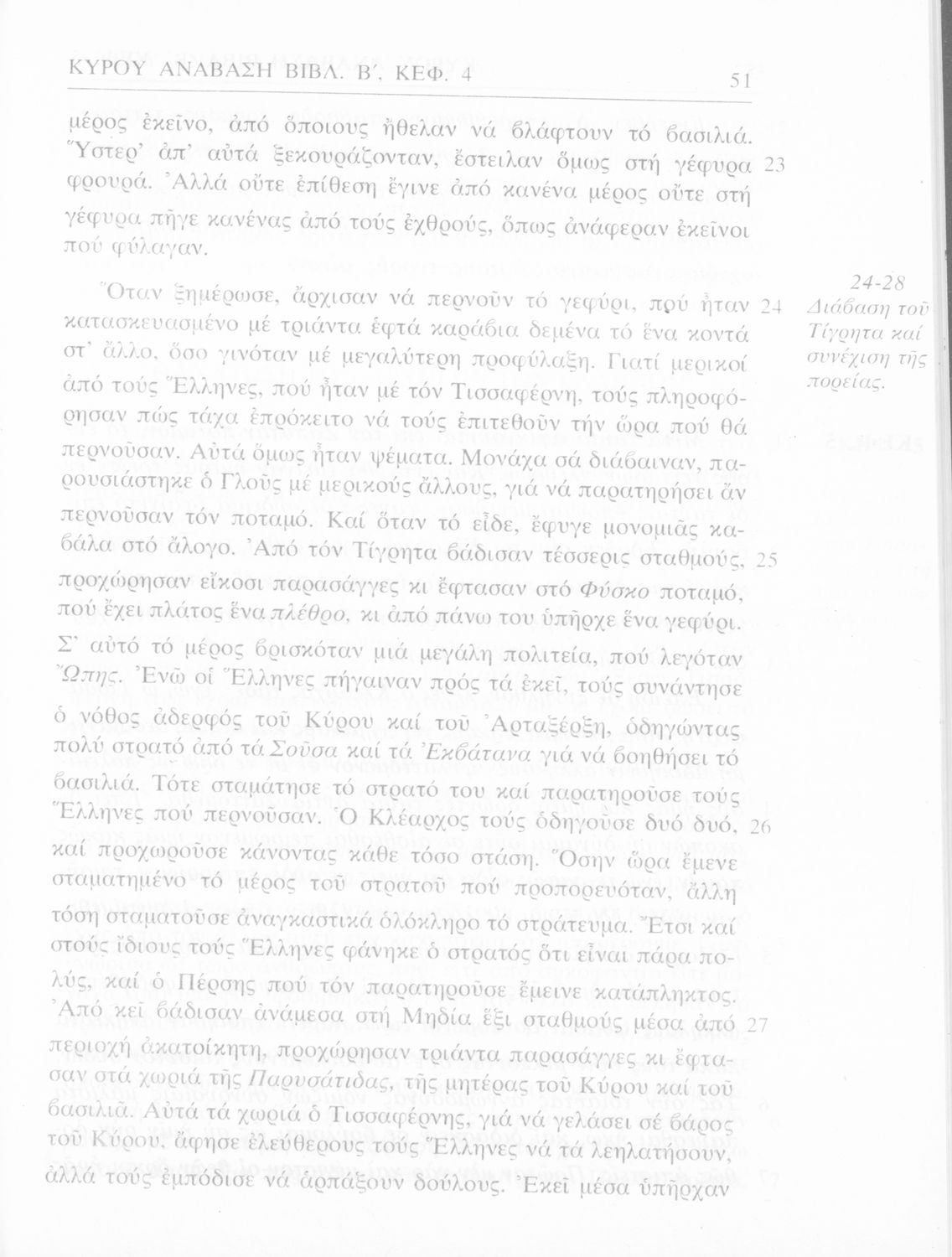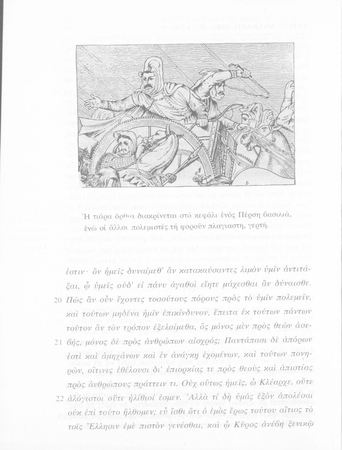 Σχολικό εγχειρίδιο Αρχαίων Ελληνικών α΄ Γυμνασίου που περιλαμβάνει μετάφραση του έργου του Ξενοφώντα Κύρου Ανάβασις, εισαγωγικά σχόλια για τη ζωή και το έργο του, και ερμηνευτικές παρατηρήσεις.