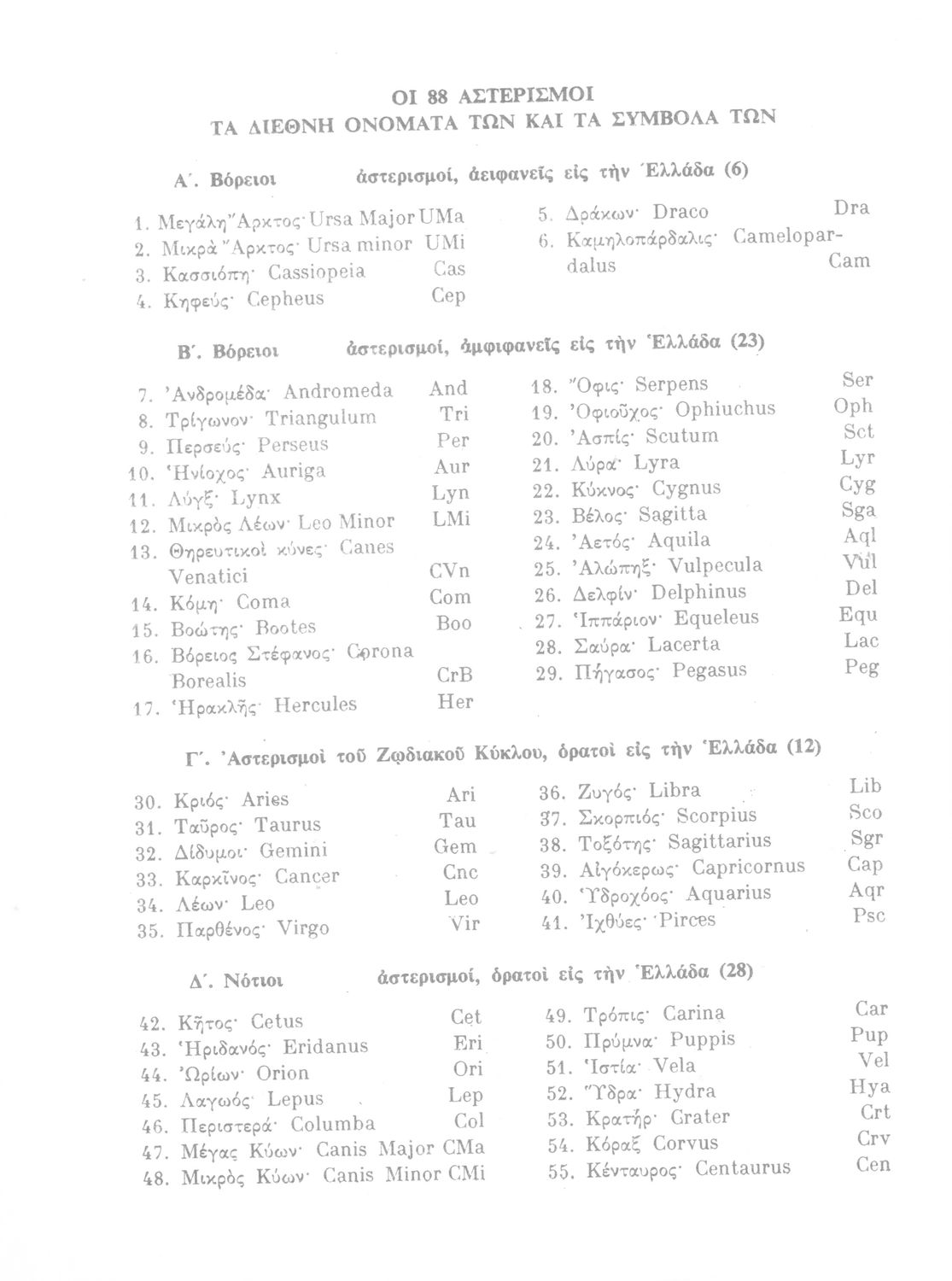 Σχολικό εγχειρίδιο Κοσμογραφίας ΣΤ΄ Γυμνασίου που πραγματεύεται τη μορφή, σύσταση, μέγεθος και κίνηση των γαλαξιών και των πλανητών. Περιέχει στοιχεία αστροναυτικής και πίνακα με 88 αστερισμούς, τα διεθνή ονόματα και τα σύμβολά τους.