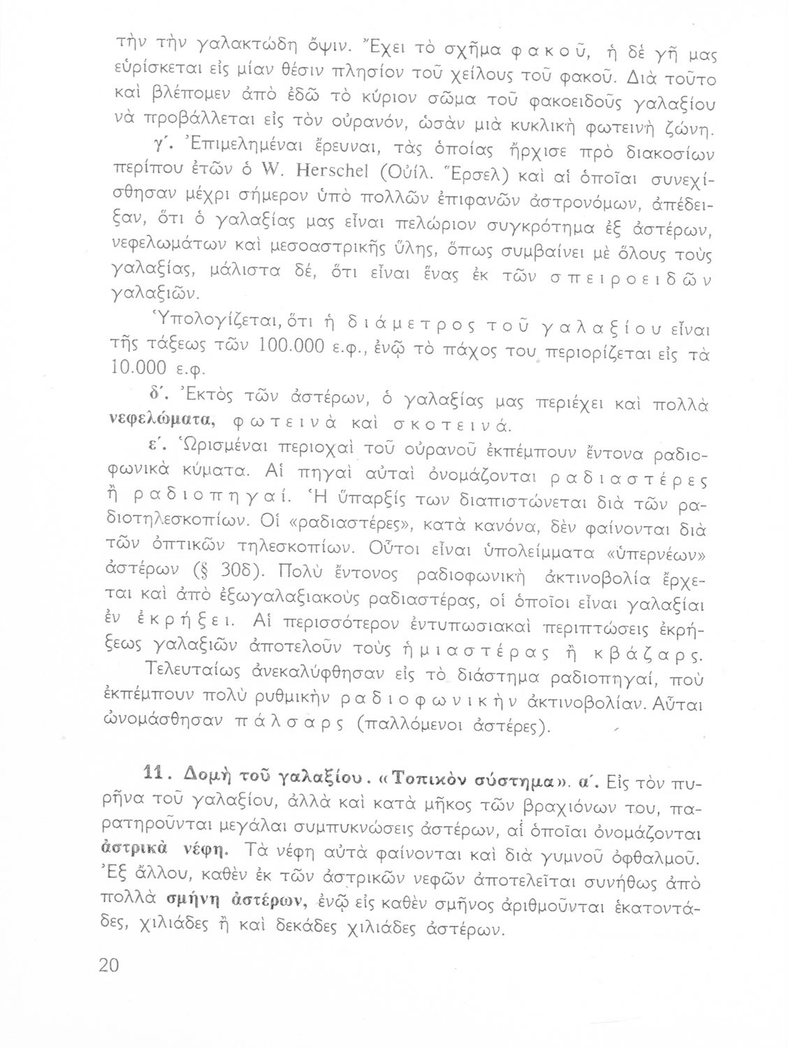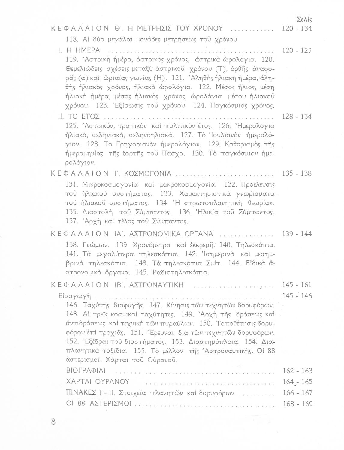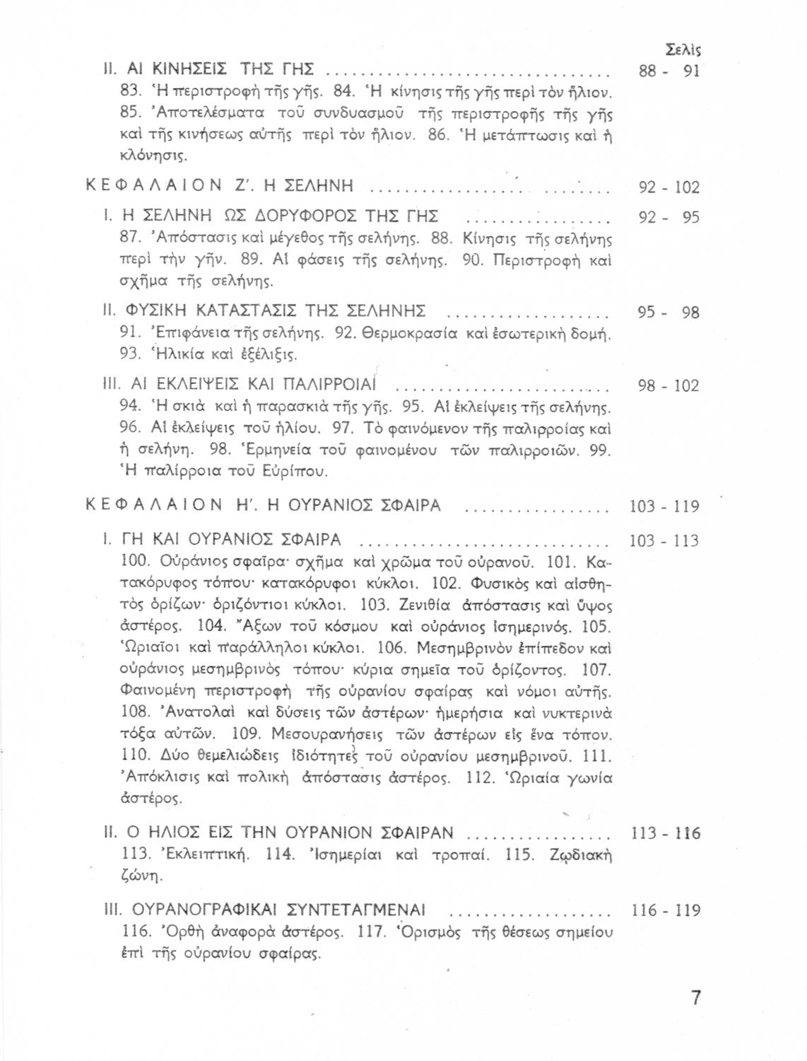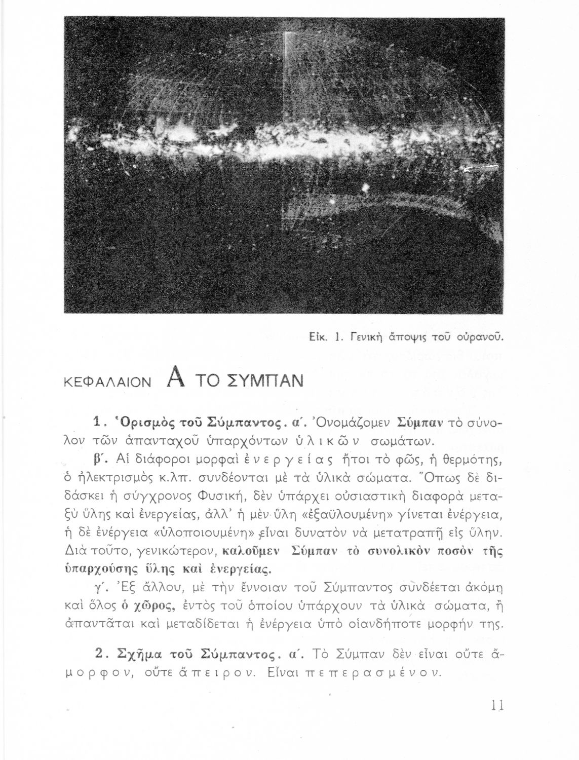 Σχολικό εγχειρίδιο Κοσμογραφίας ΣΤ΄ Γυμνασίου που πραγματεύεται τη μορφή, σύσταση, μέγεθος και κίνηση των γαλαξιών και των πλανητών. Περιέχει στοιχεία αστροναυτικής και πίνακα με 88 αστερισμούς, τα διεθνή ονόματα και τα σύμβολά τους.