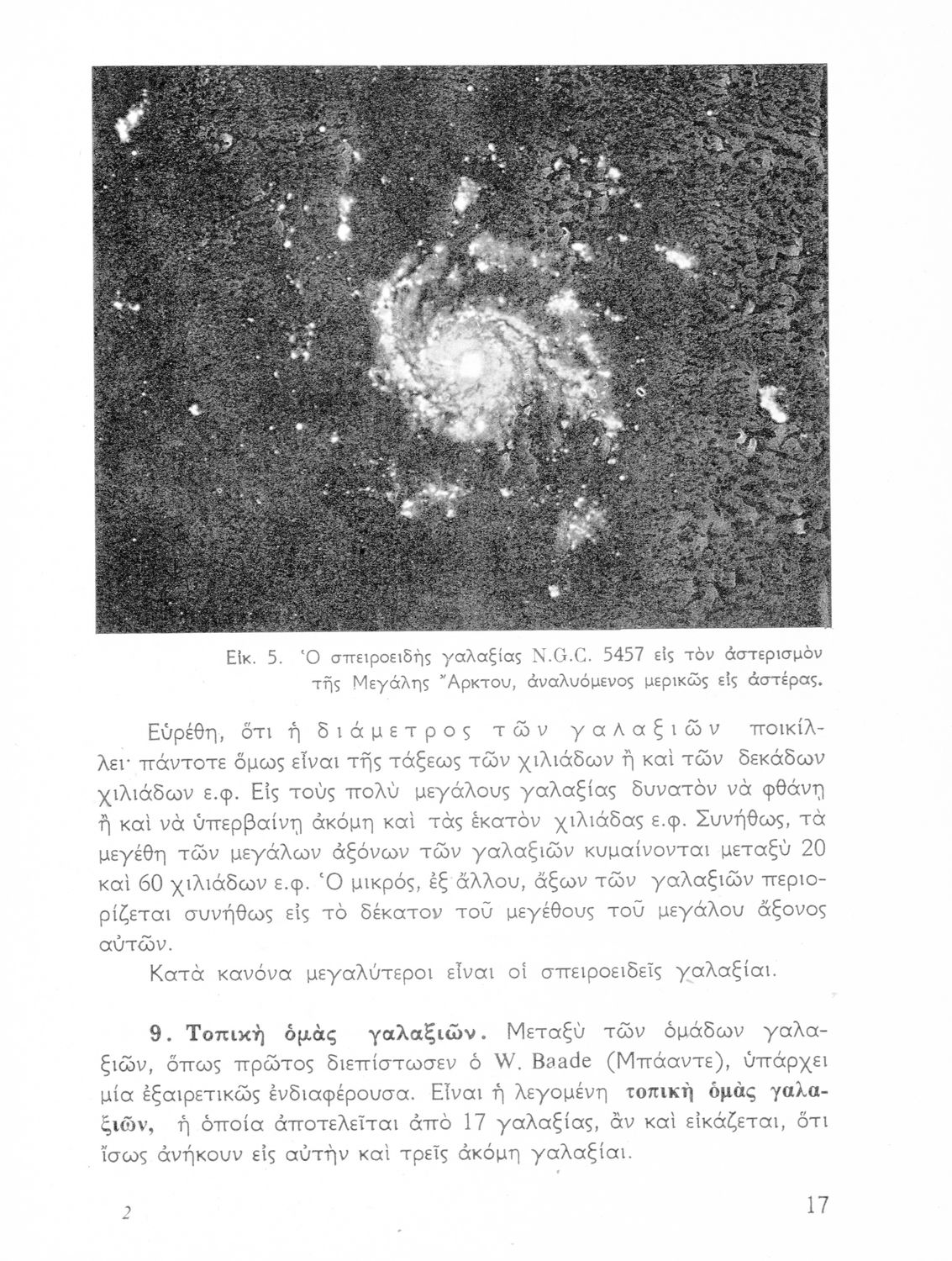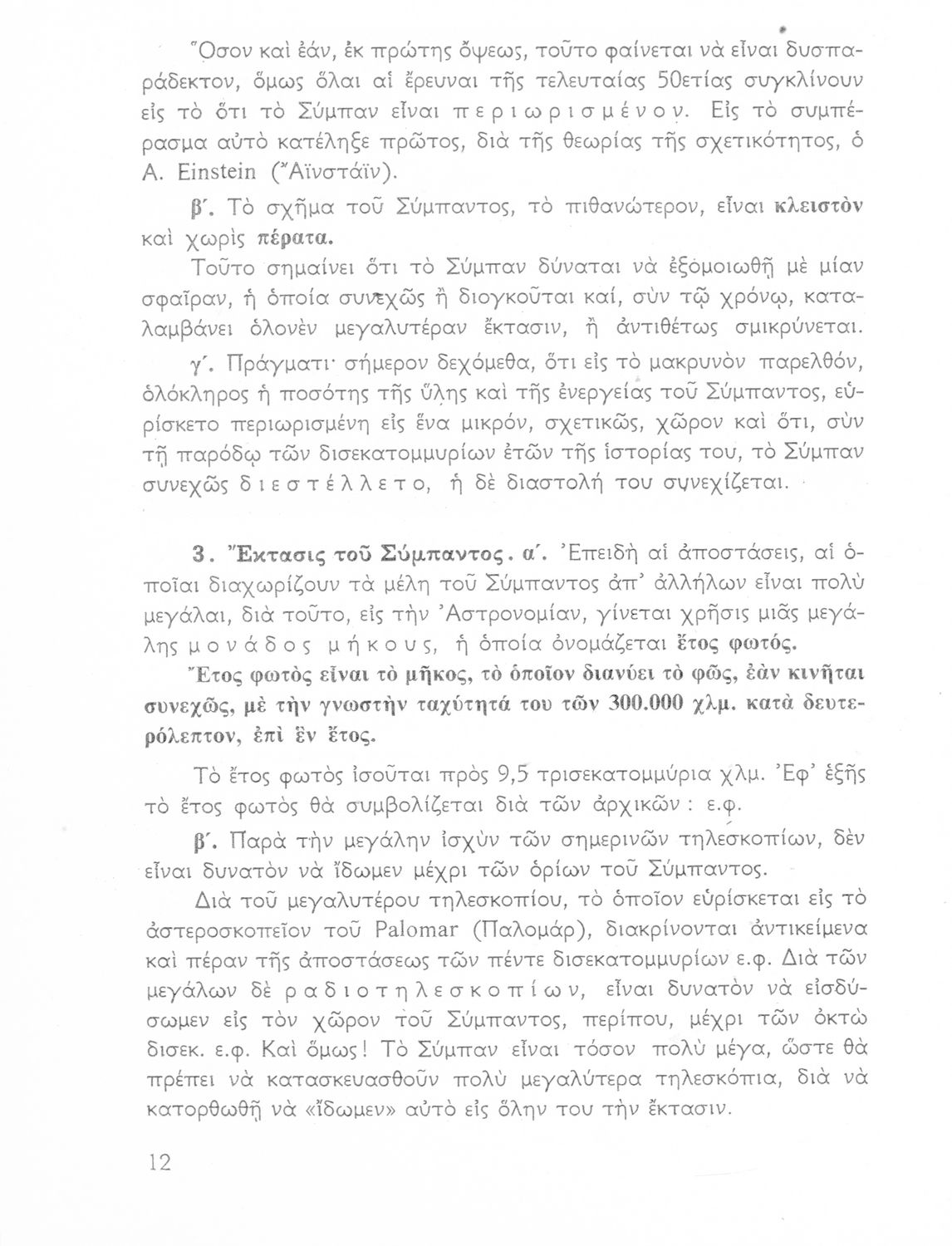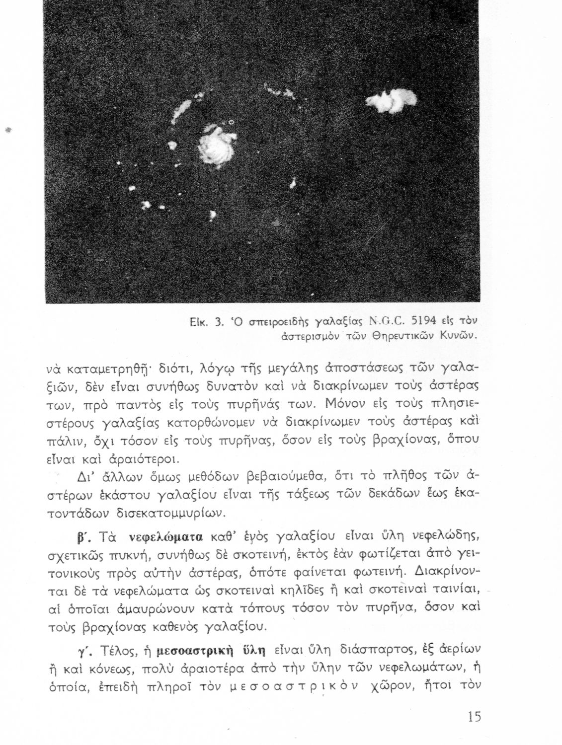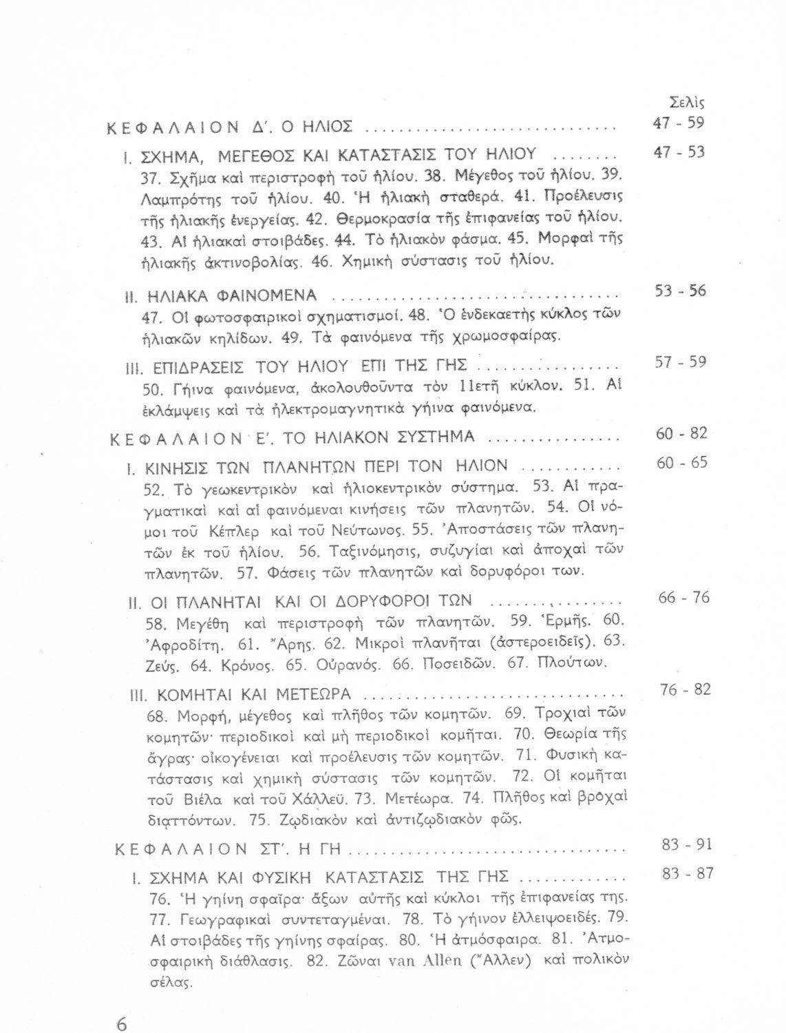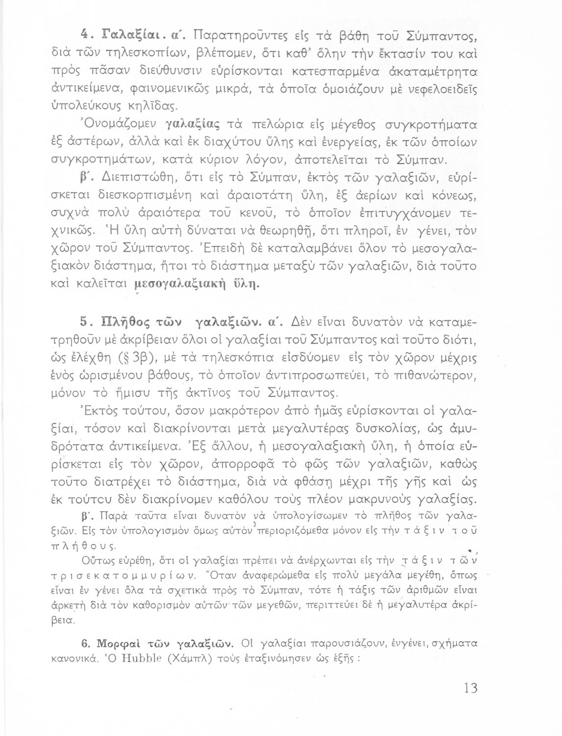 Σχολικό εγχειρίδιο Κοσμογραφίας ΣΤ΄ Γυμνασίου που πραγματεύεται τη μορφή, σύσταση, μέγεθος και κίνηση των γαλαξιών και των πλανητών. Περιέχει στοιχεία αστροναυτικής και πίνακα με 88 αστερισμούς, τα διεθνή ονόματα και τα σύμβολά τους.