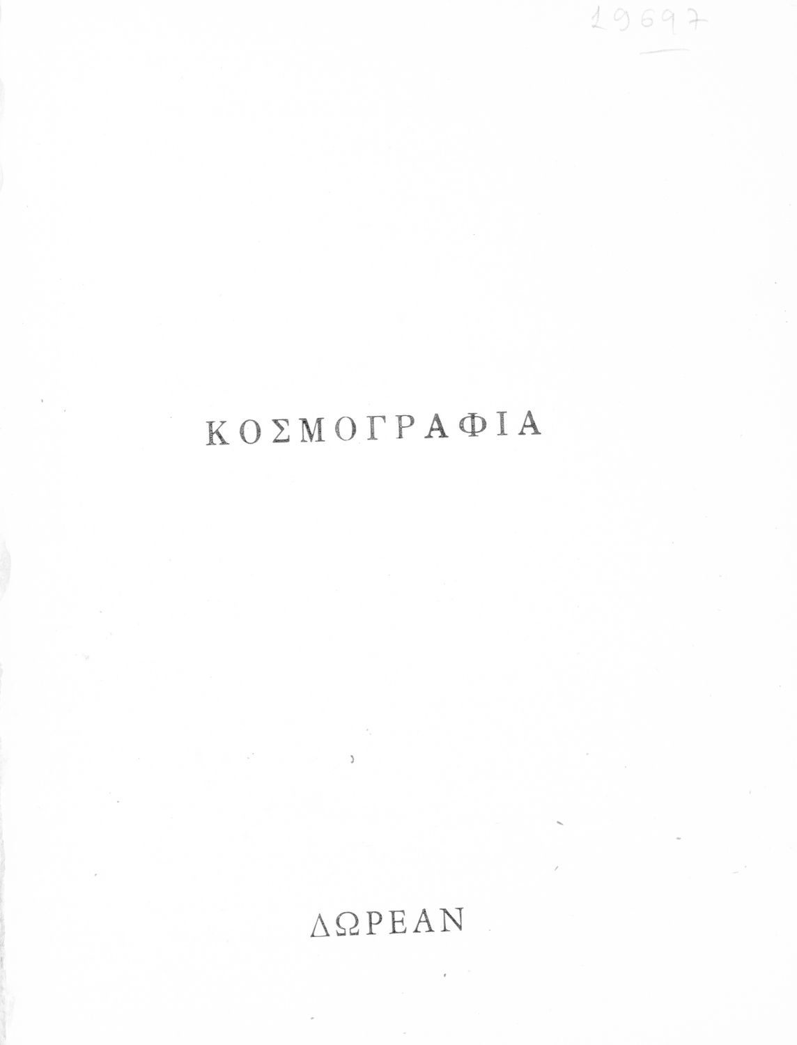 Βαθμίδα εκπαίδευσης: Δευτεροβάθμια Τάξη: ΣΤ' Γυμνασίου Μάθημα: Κοσμογραφία Γλώσσα: Απλή καθαρεύουσα Παρουσίαση περιεχομένου: Σχολικό εγχειρίδιο Κοσμογραφίας ΣΤ΄ Γυμνασίου που πραγματεύεται τη μορφή, σύσταση, μέγεθος και κίνηση των γαλαξιών και των πλανητών. Περιέχει στοιχεία αστροναυτικής και πίνακα με 88 αστερισμούς, τα διεθνή ονόματα και τα σύμβολά τους. |