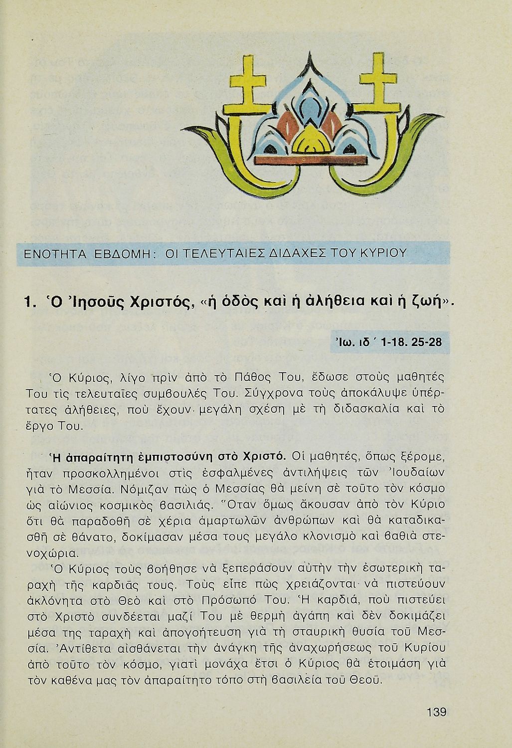 Σχολικό εγχειρίδιο Θρησκευτικών Β΄ Γυμνασίου, Πρακτικού Λυκείου και Παρθεναγωγείου που περιλαμβάνει τη ζωή, το έργο και τη διδασκαλία του Ιησού.