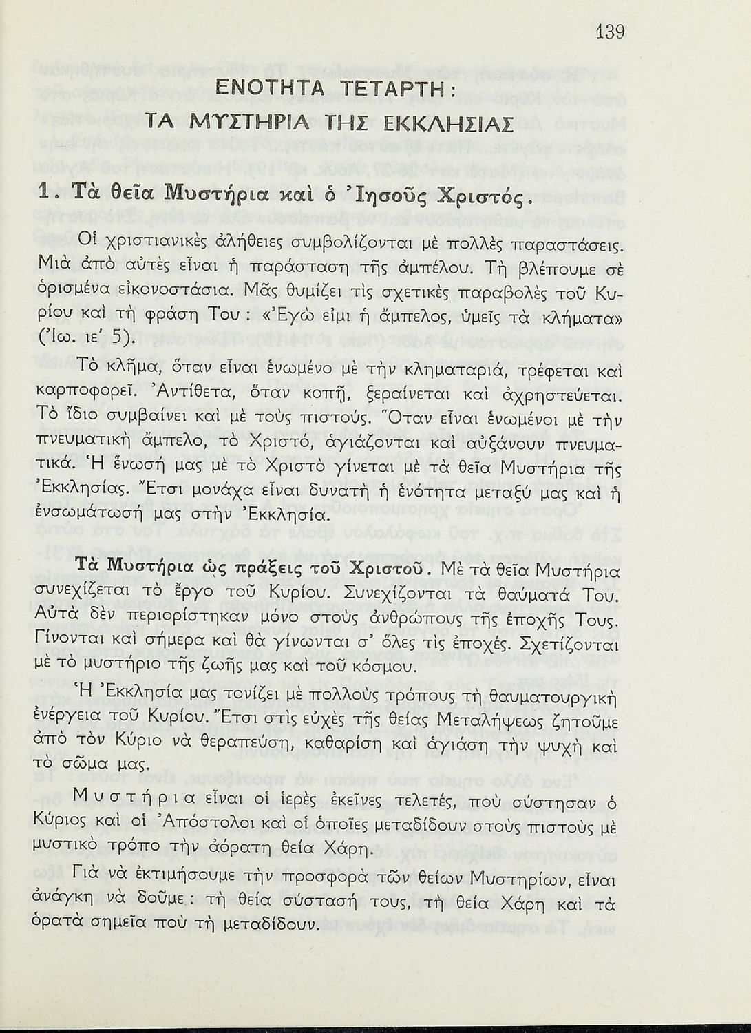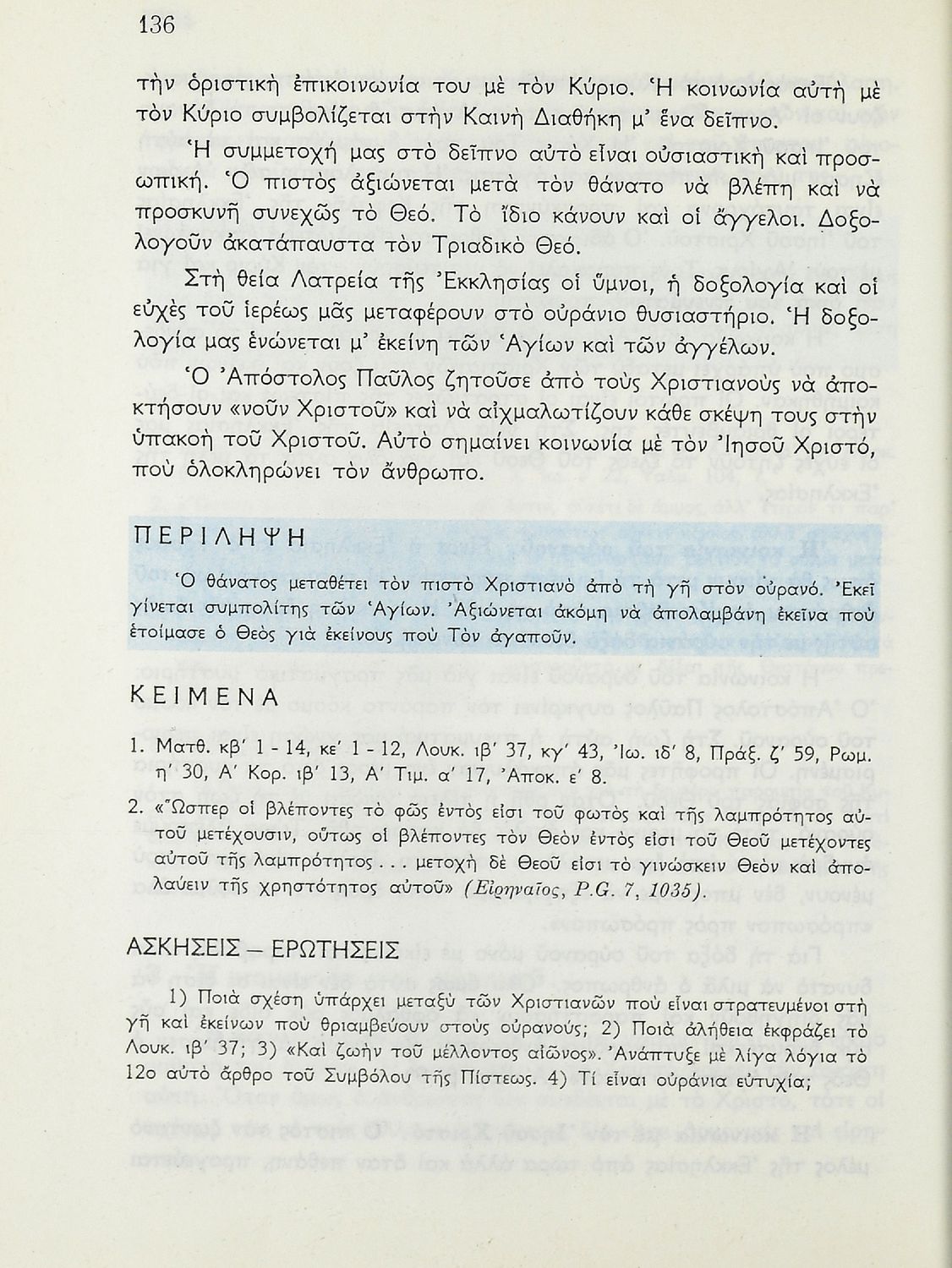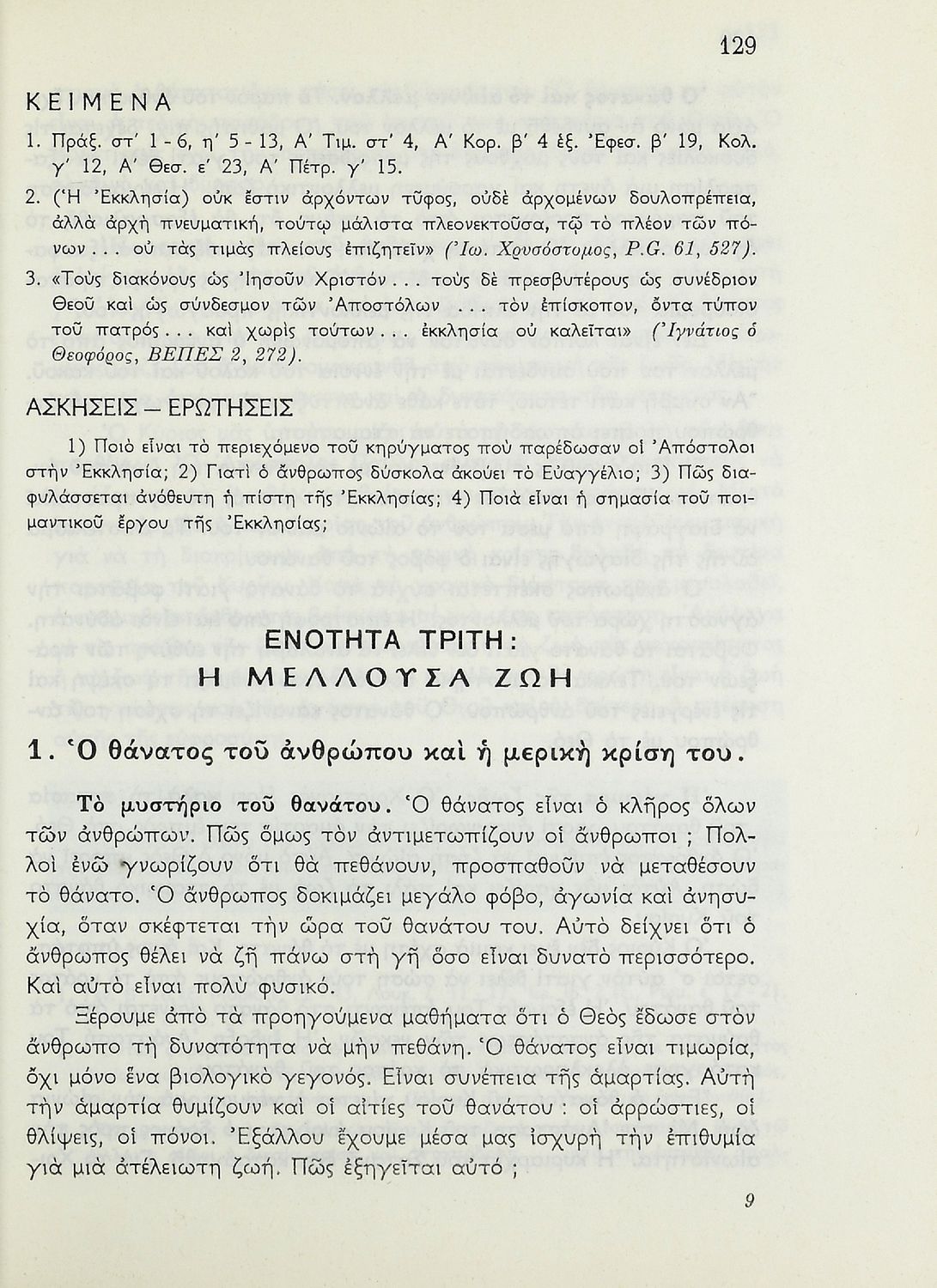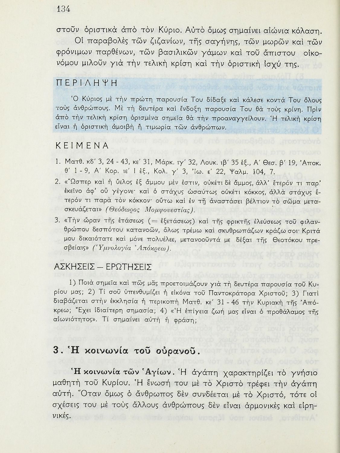 Βαθμίδα εκπαίδευσης: Δευτεροβάθμια Τάξη: Γ' Γυμνασίου Μάθημα: Θρησκευτικά Γλώσσα: Δημοτική Παρουσίαση περιεχομένου: Σχολικό εγχειρίδιο Θρησκευτικών Γ΄ Γυμνασίου που παρουσιάζει τα δόγματα της Χριστιανικής Πίστης μέσα από τα κείμενα της Αγίας Γραφής. Περιέχει και ανάλυση των μυστηρίων της Εκκλησίας. |