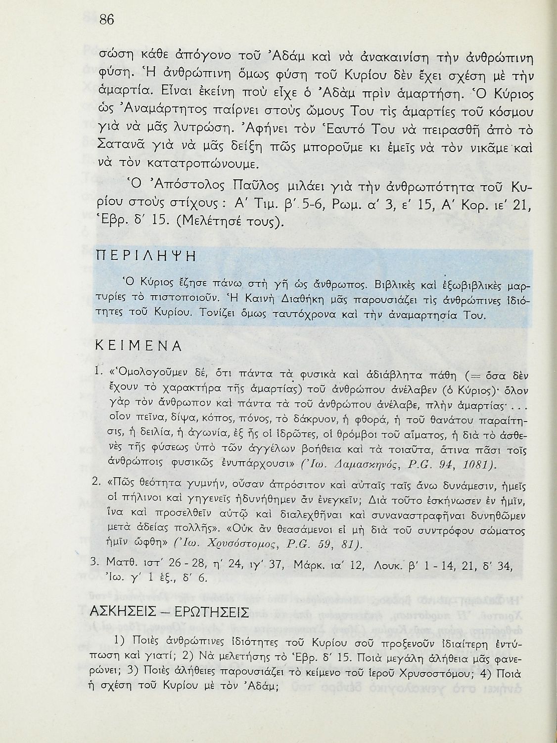 Σχολικό εγχειρίδιο Θρησκευτικών Γυμνασίου που περιλαμβάνει κείμενα των Πατέρων της Εκκλησίας, τις μεταφράσεις τους και βιογραφικά σημειώματα των συγγραφέων. Ο συγγραφέας ήταν τακτικός καθηγητής του ...