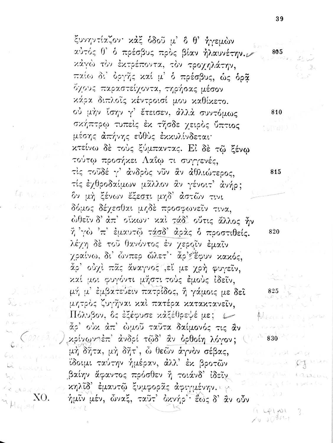 Σχολικό εγχειρίδιο Αρχαίων Ελληνικών για τη Γ΄ Λυκείου με πρωτότυπο κείμενο του Σοφοκλή. Το βιβλίο περιλαμβάνει εισαγωγή και ερμηνευτικές σημειώσεις στη Δημοτική. Σχόλια μαθητή στα περιθώρια.