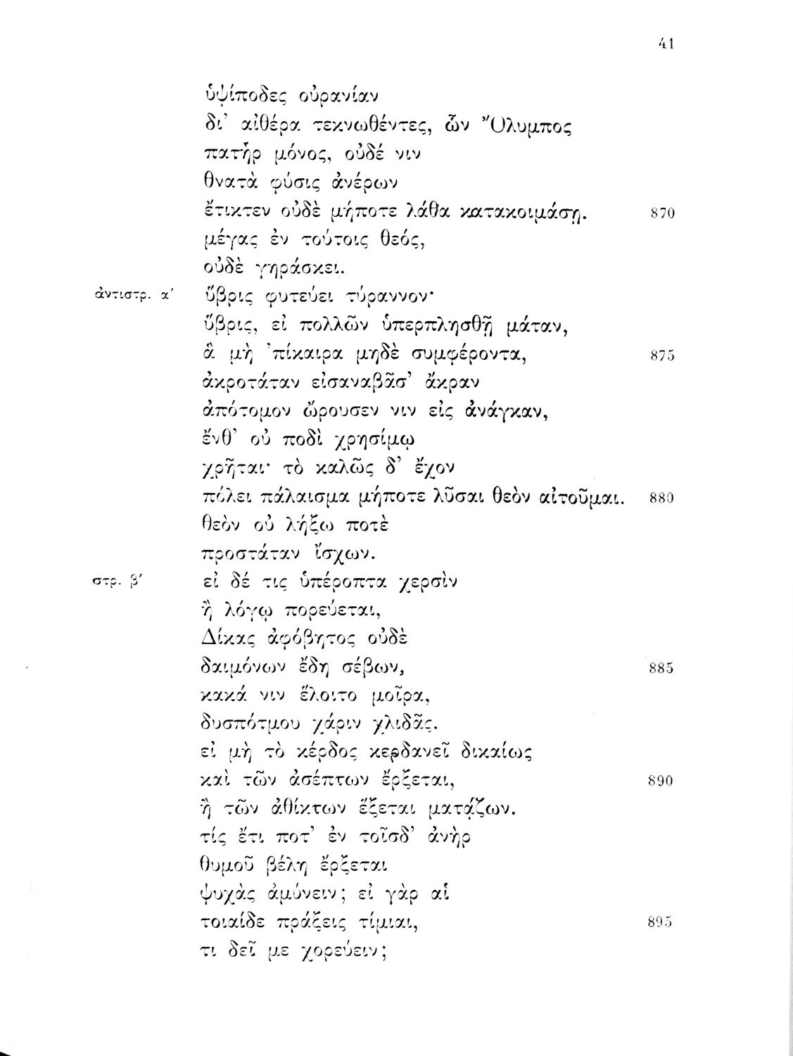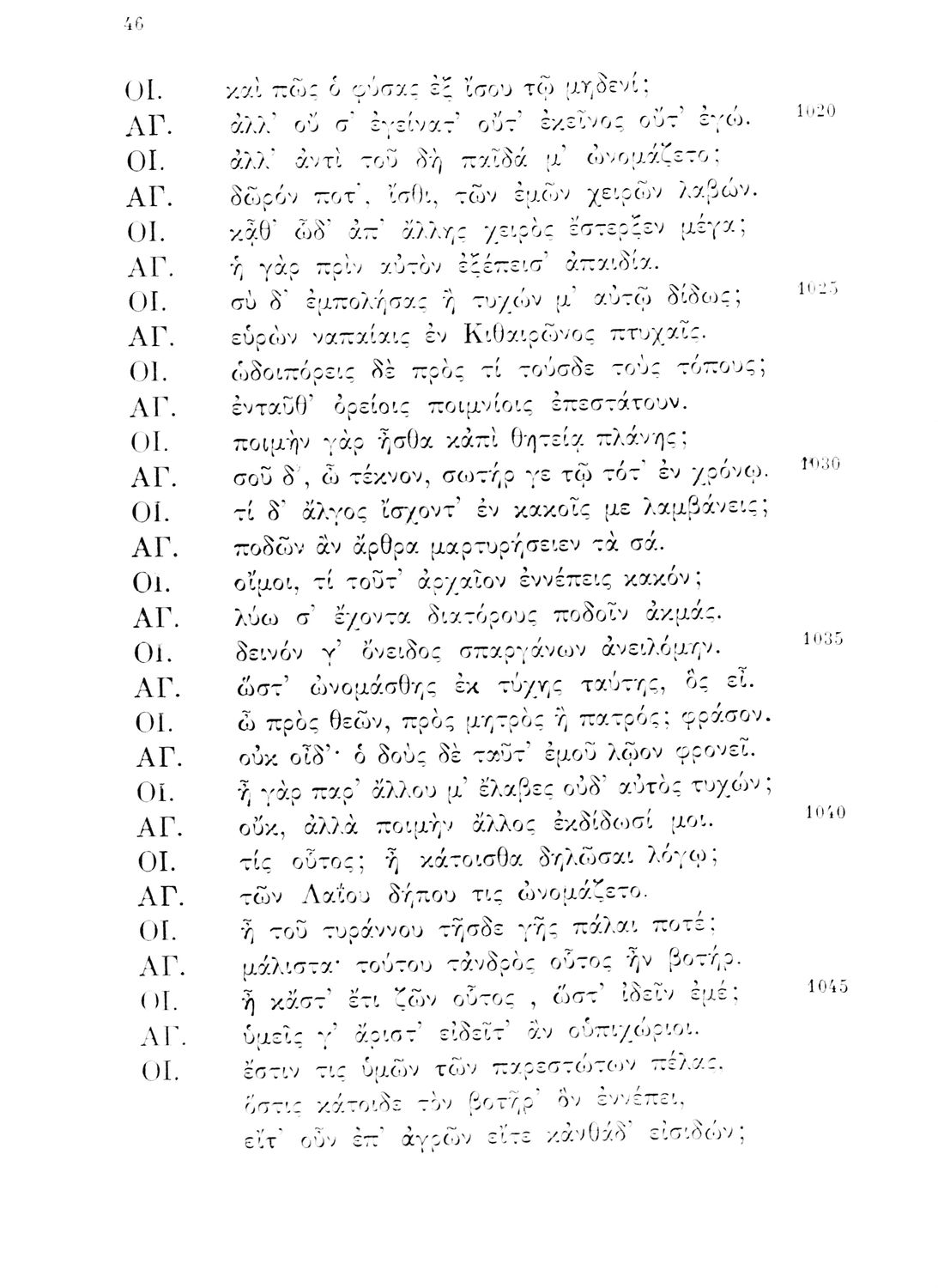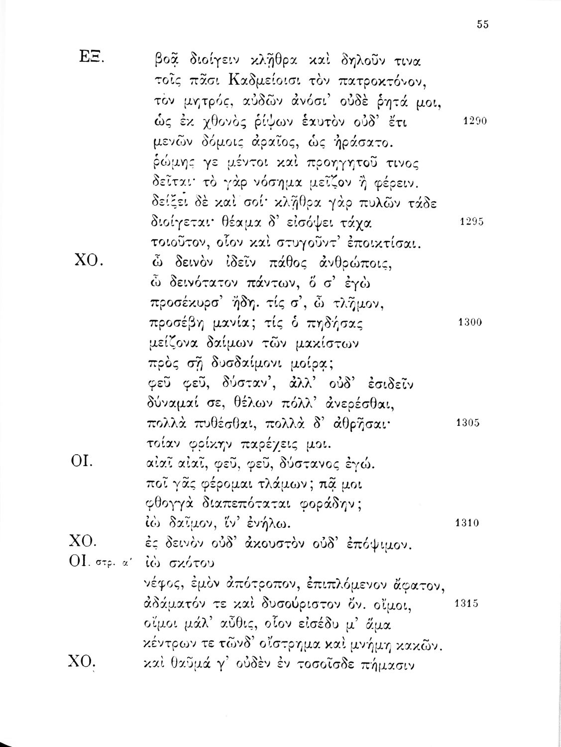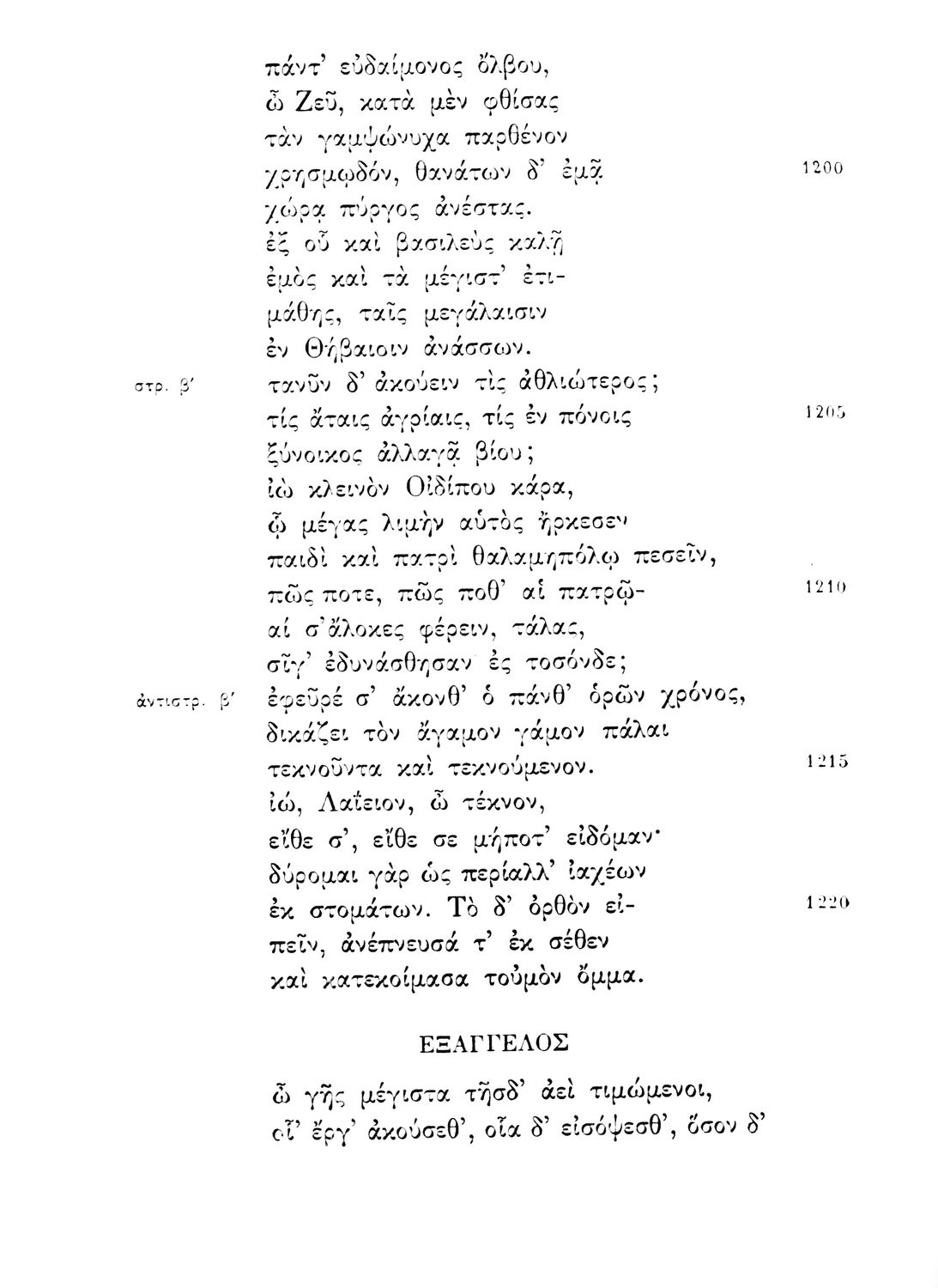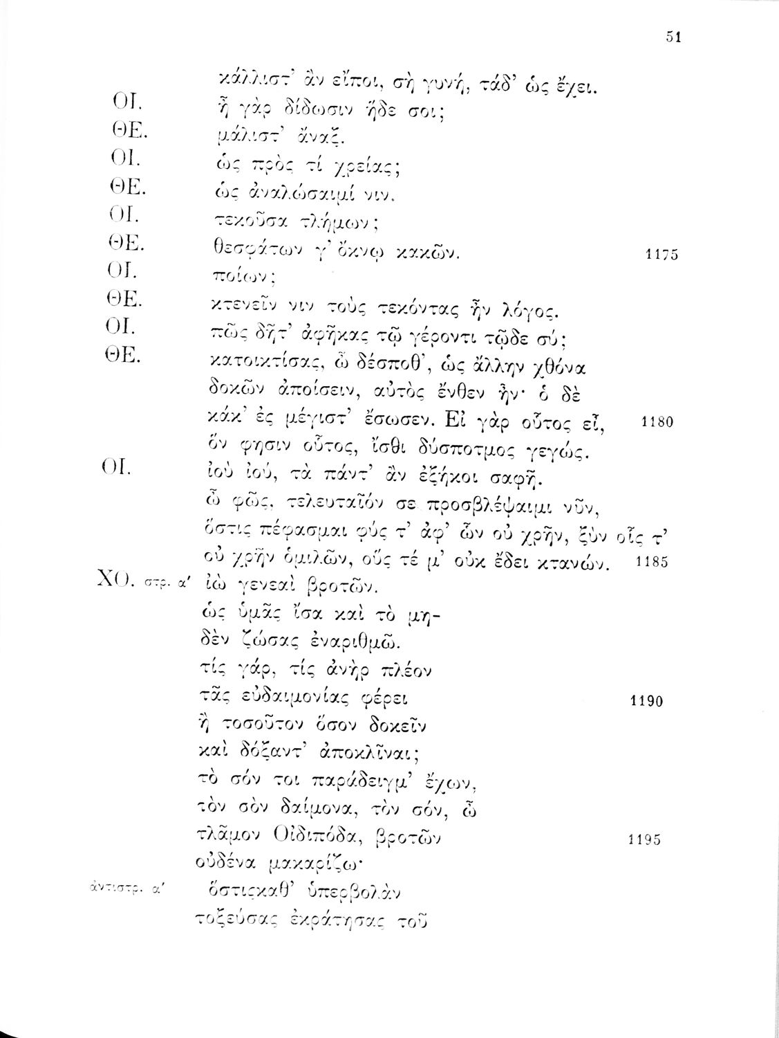 Σχολικό εγχειρίδιο Αρχαίων Ελληνικών που περιλαμβάνει τις τραγωδίες του Σοφοκλή Οιδίπους Τύραννος και Αντιγόνη, εισαγωγή και ερμηνευτικά σχόλια.