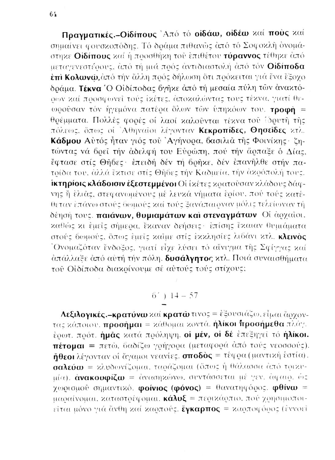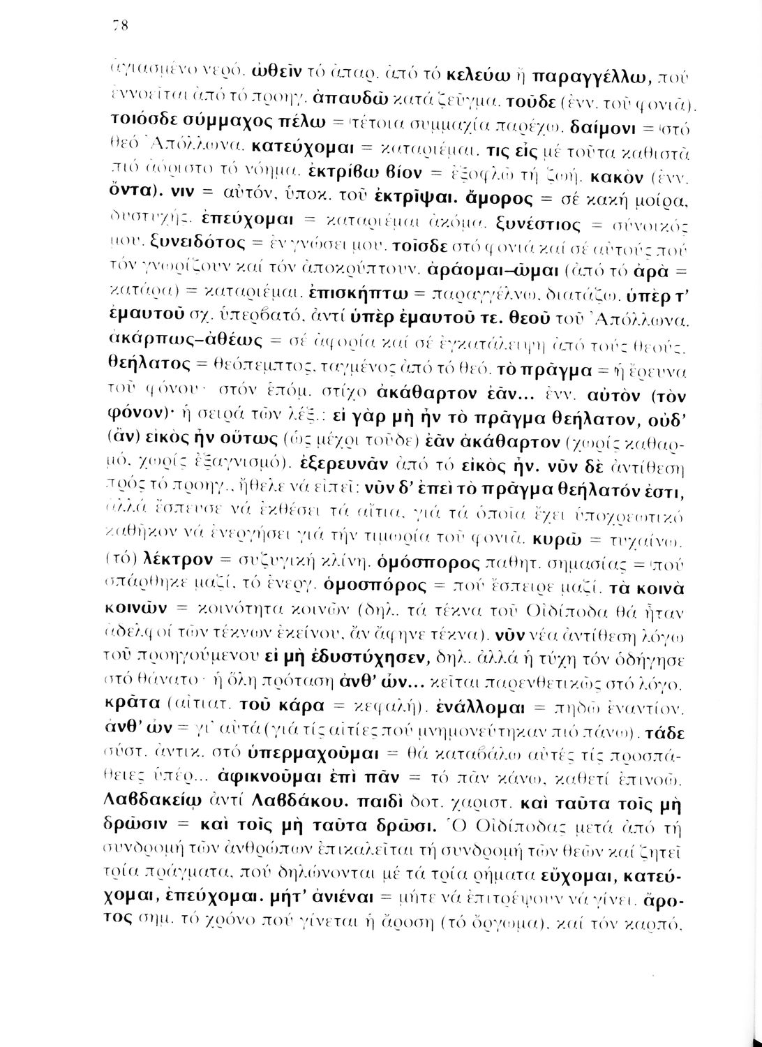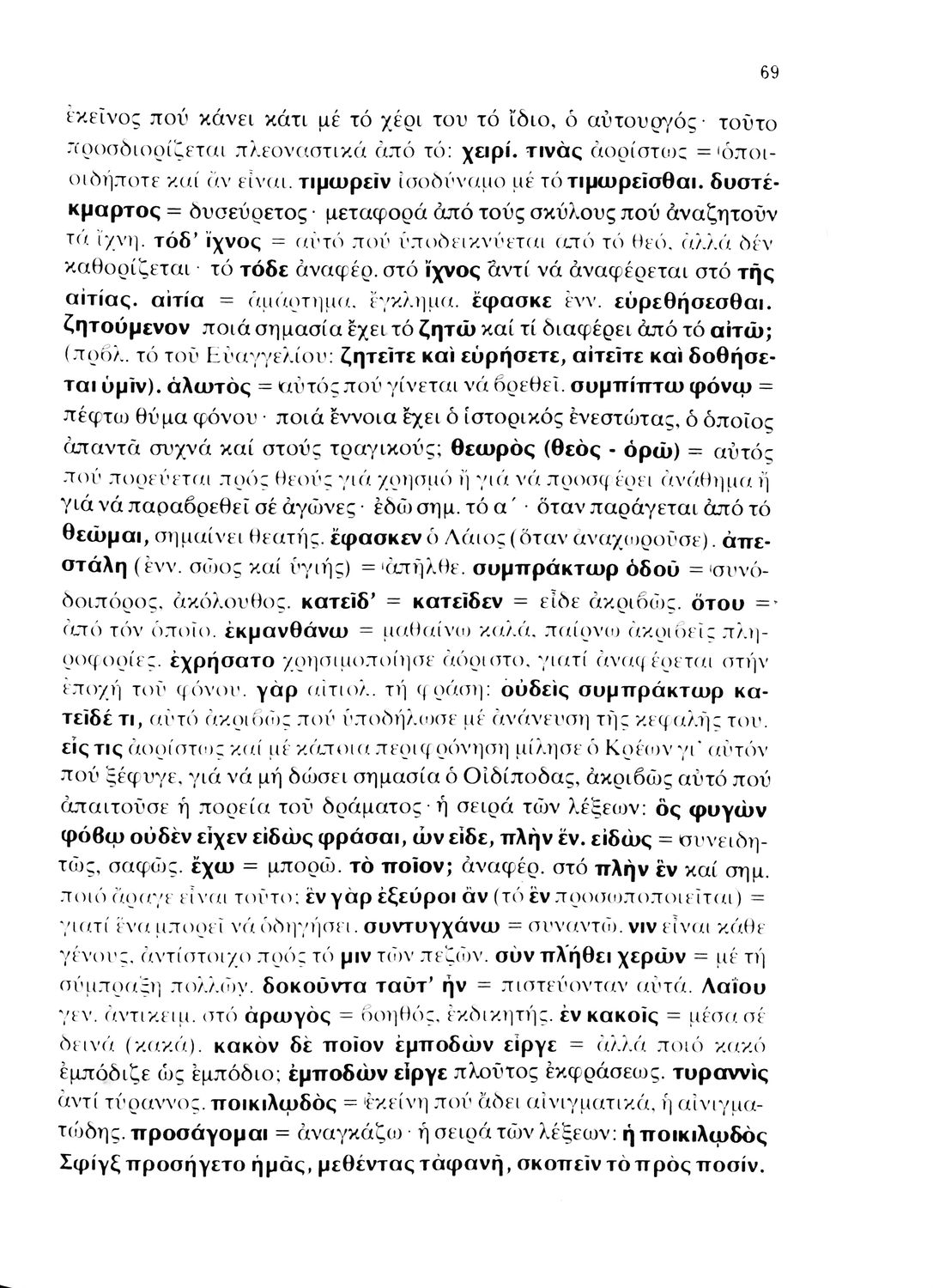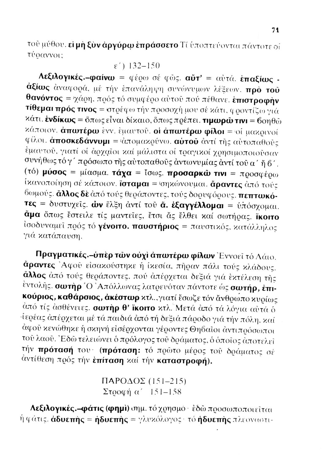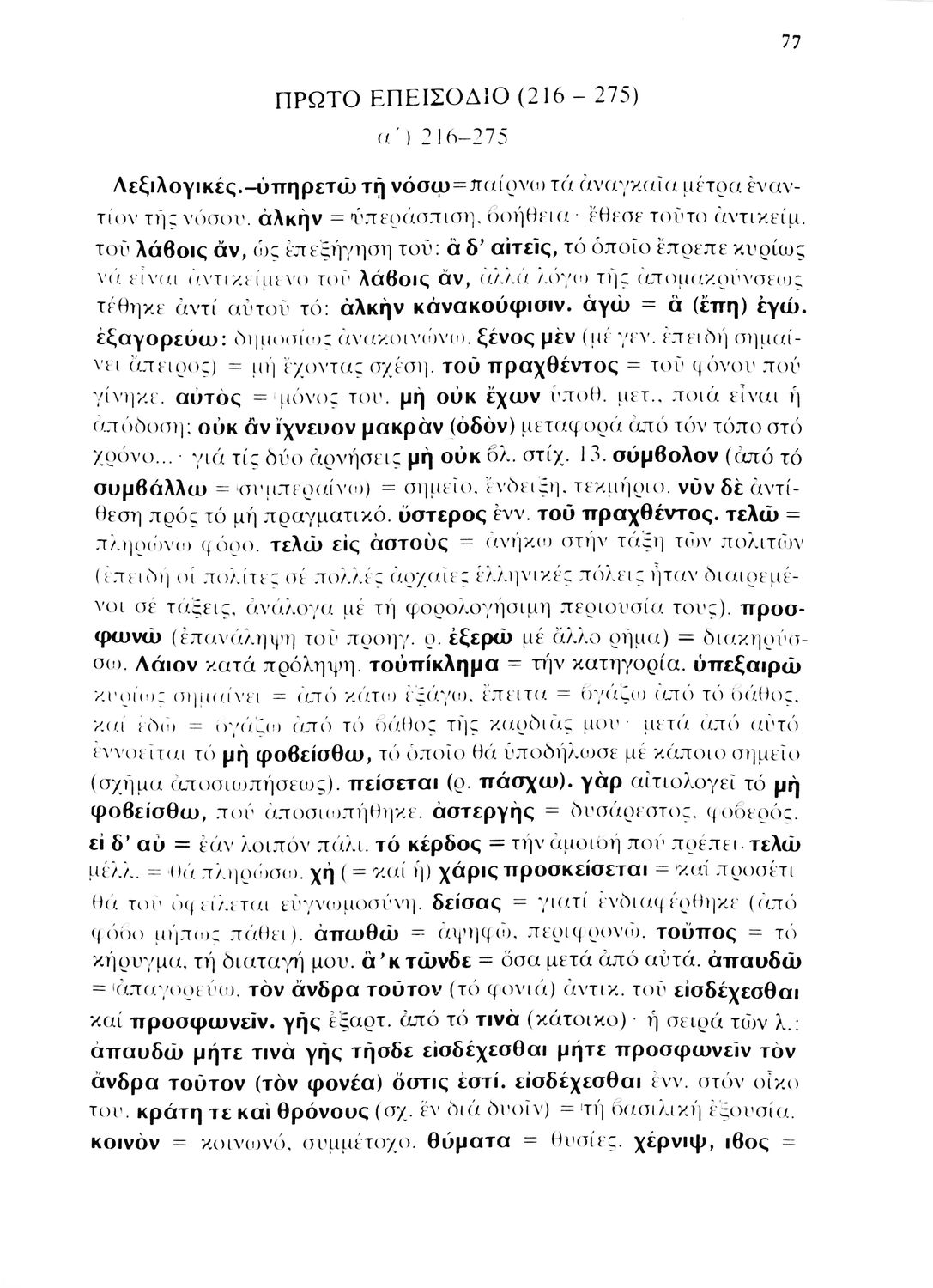 Σχολικό εγχειρίδιο Αρχαίων Ελληνικών για τη Γ΄ Λυκείου με πρωτότυπο κείμενο του Σοφοκλή. Το βιβλίο περιλαμβάνει εισαγωγή και ερμηνευτικές σημειώσεις στη Δημοτική. Σχόλια μαθητή στα περιθώρια.