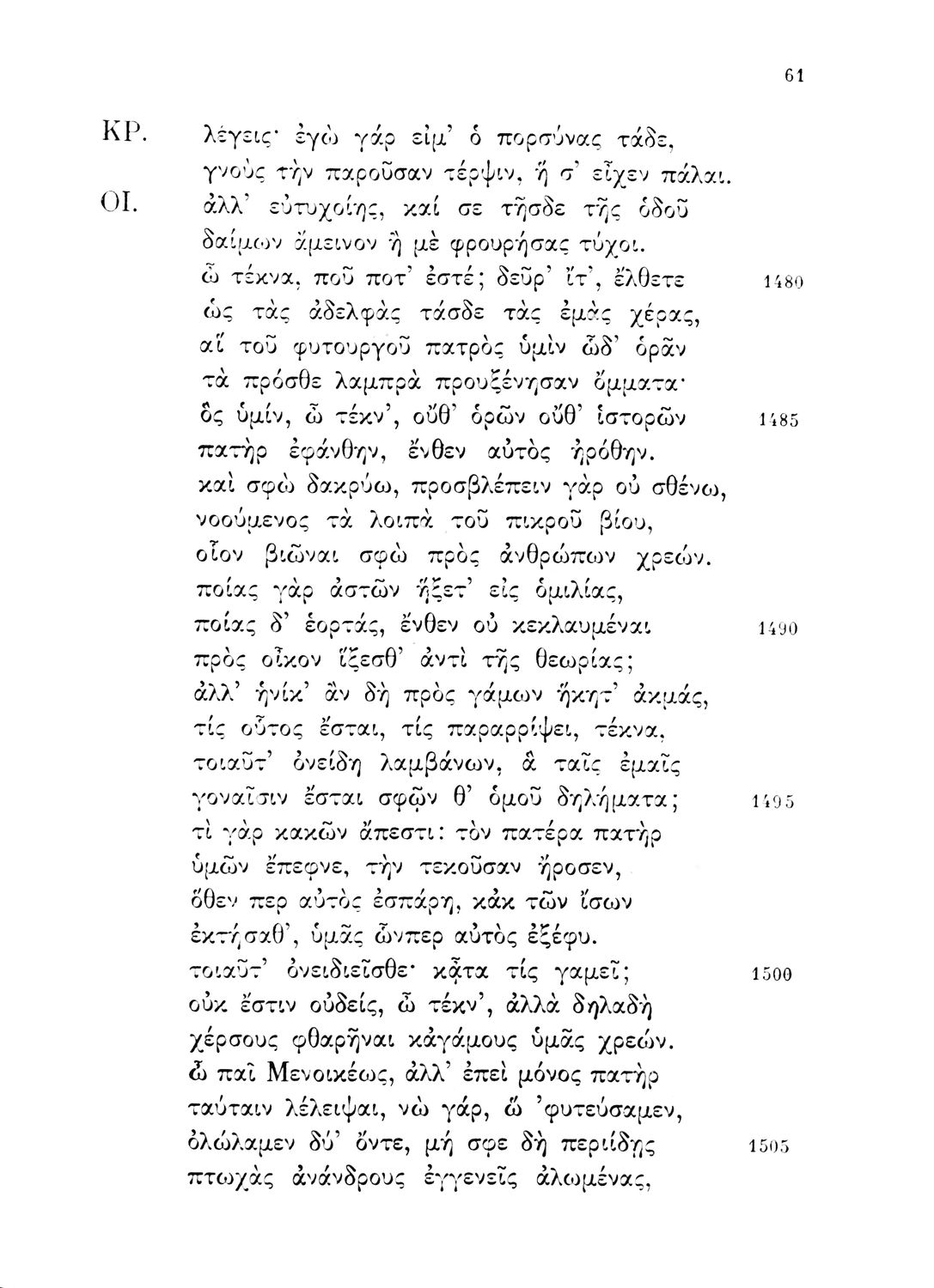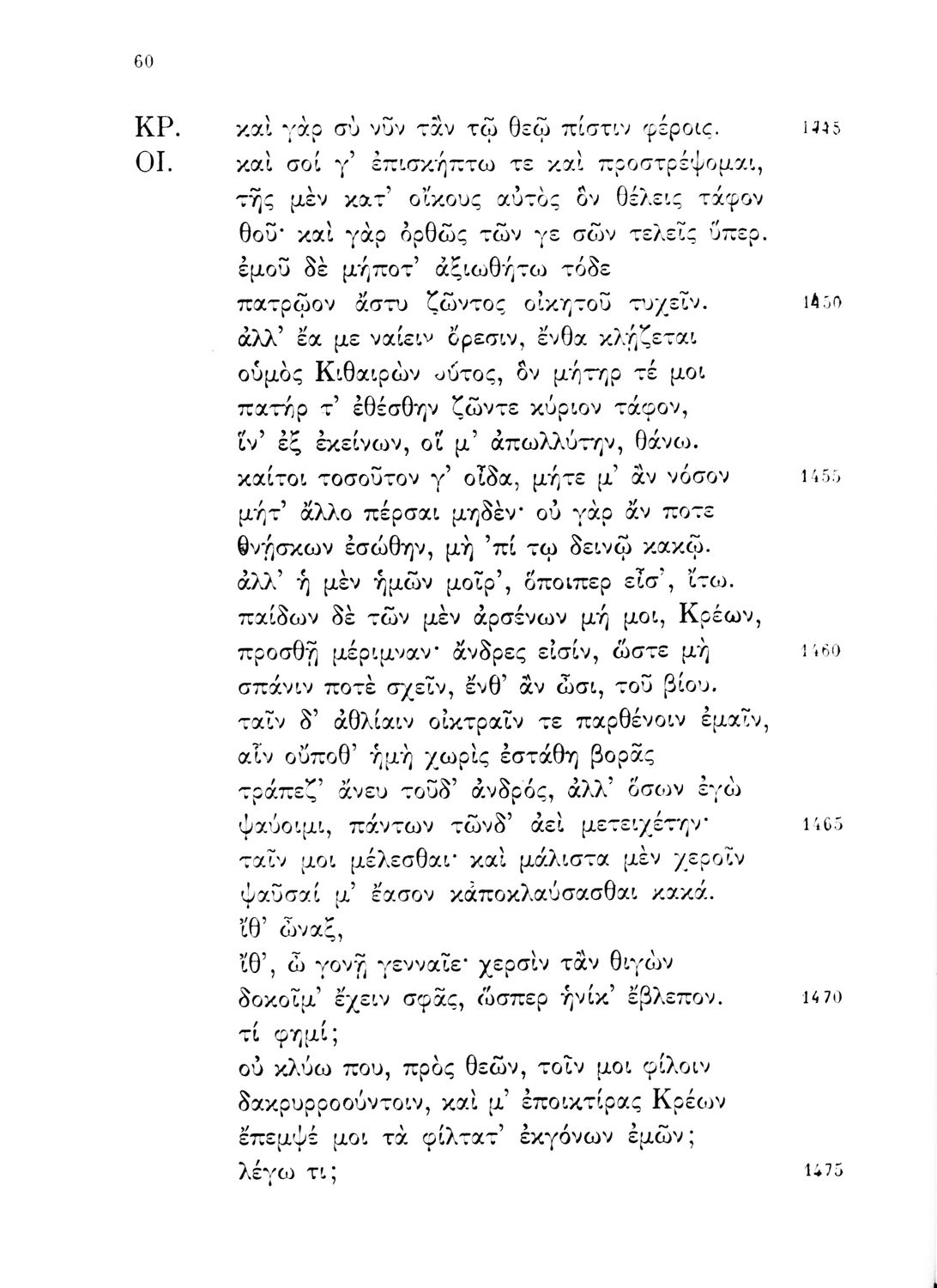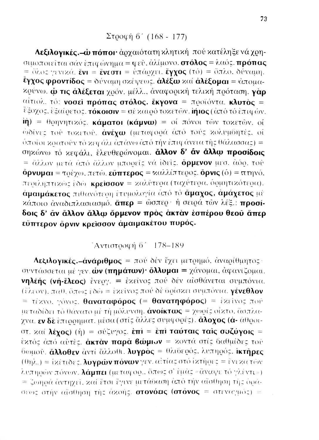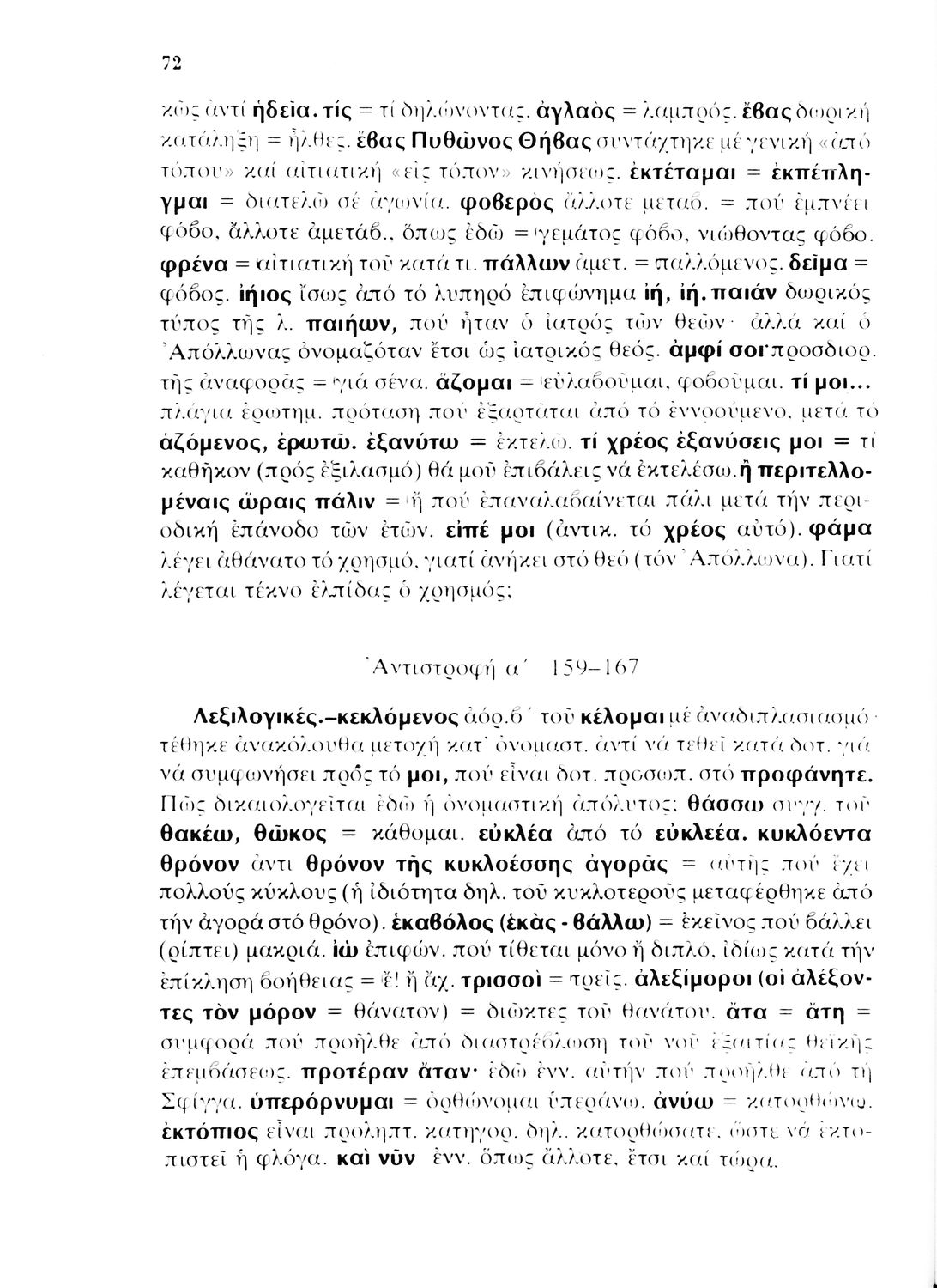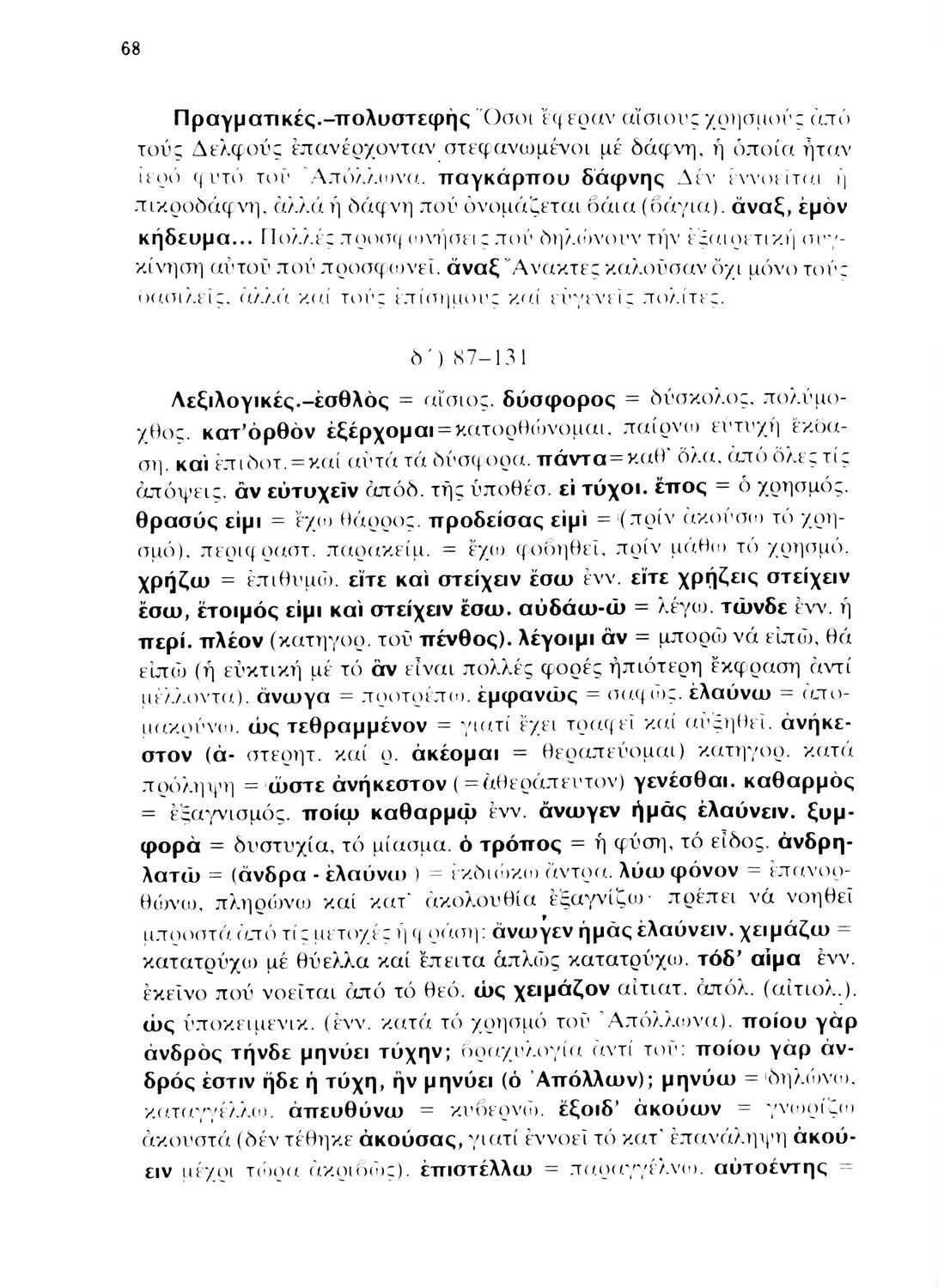 Σχολικό εγχειρίδιο Αρχαίων Ελληνικών για τη Γ΄ Λυκείου με πρωτότυπο κείμενο του Σοφοκλή. Το βιβλίο περιλαμβάνει εισαγωγή και ερμηνευτικές σημειώσεις στη Δημοτική. Σχόλια μαθητή στα περιθώρια.