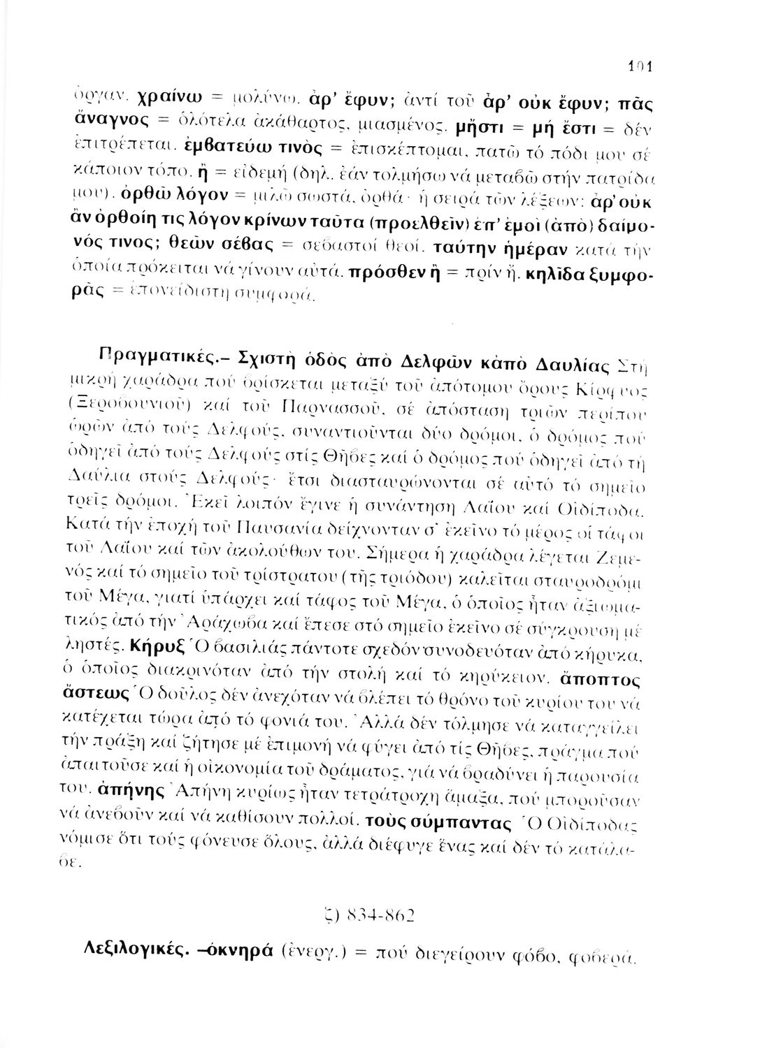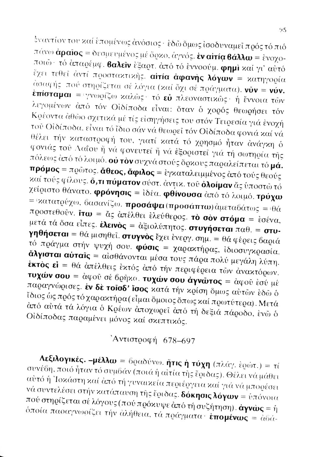 Σχολικό εγχειρίδιο Αρχαίων Ελληνικών για τη Γ΄ Λυκείου με πρωτότυπο κείμενο του Σοφοκλή. Το βιβλίο περιλαμβάνει εισαγωγή και ερμηνευτικές σημειώσεις στη Δημοτική. Σχόλια μαθητή στα περιθώρια.