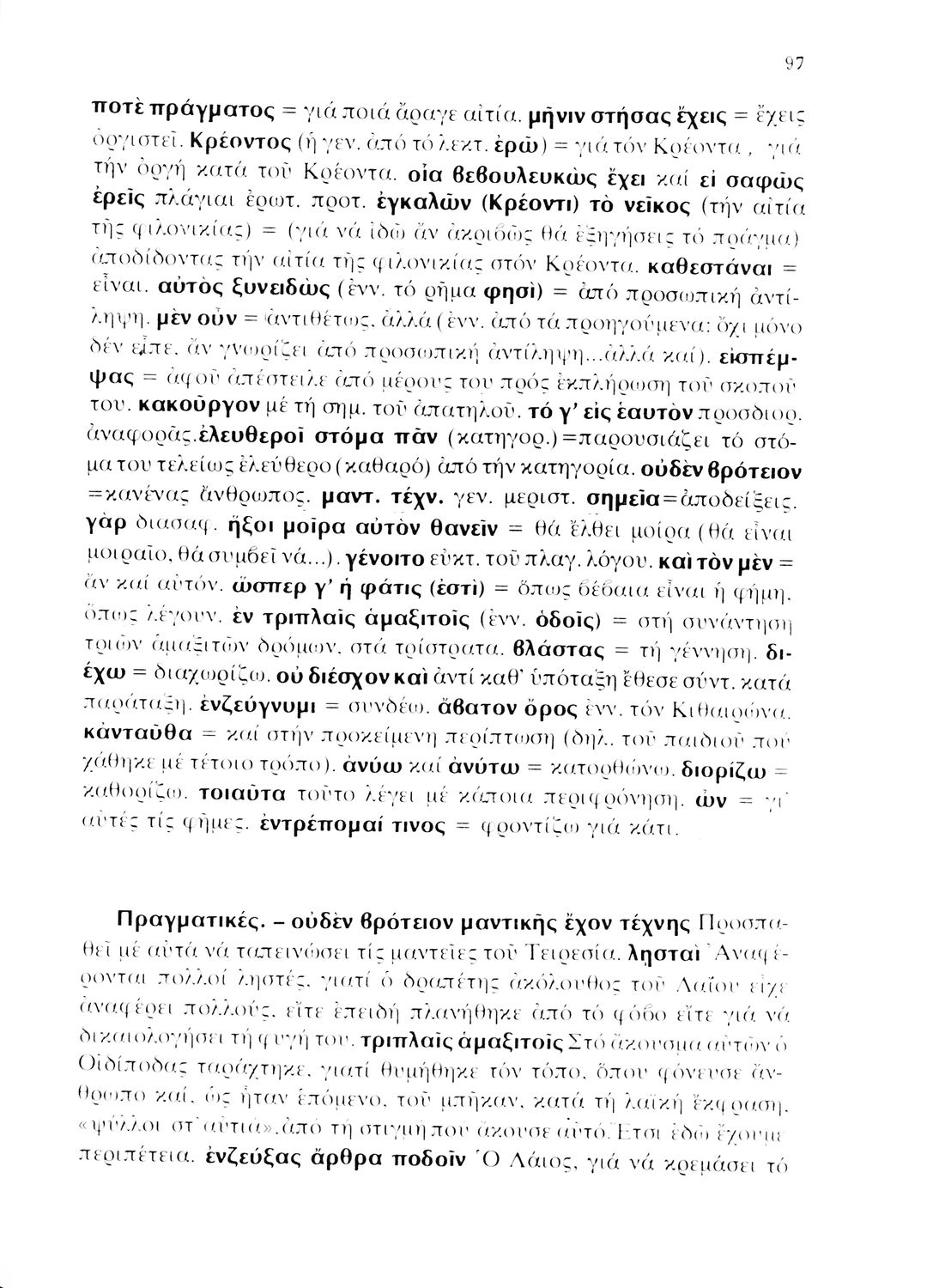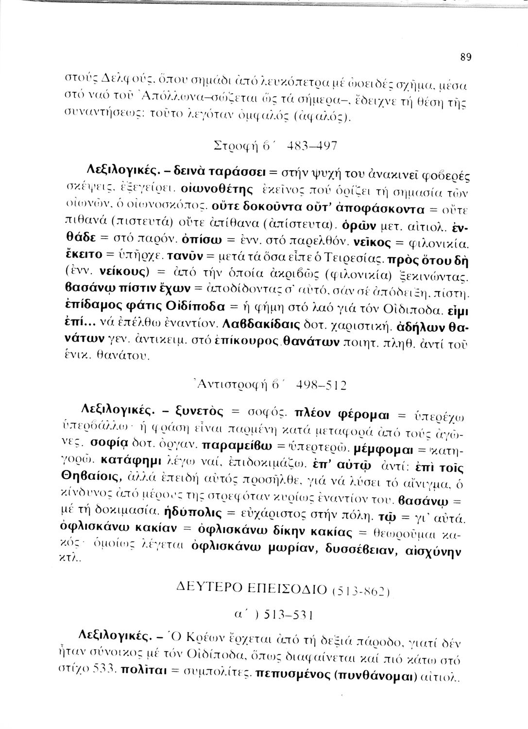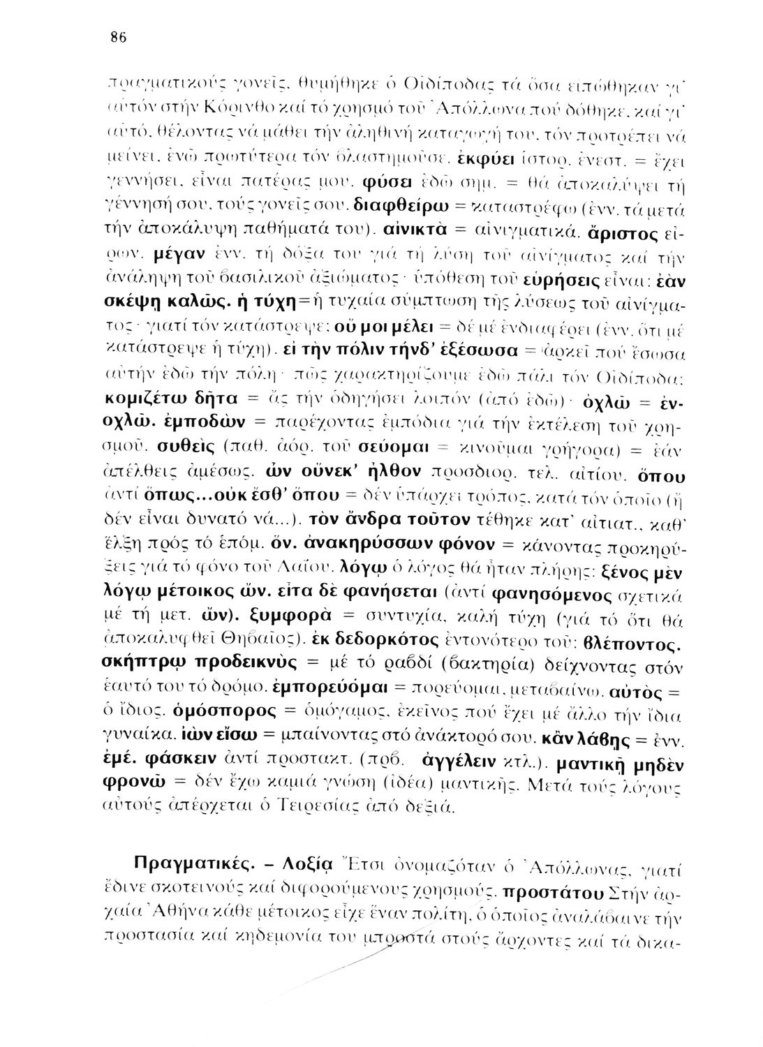 Σχολικό εγχειρίδιο Αρχαίων Ελληνικών που περιλαμβάνει τις τραγωδίες του Σοφοκλή Οιδίπους Τύραννος και Αντιγόνη, εισαγωγή και ερμηνευτικά σχόλια.