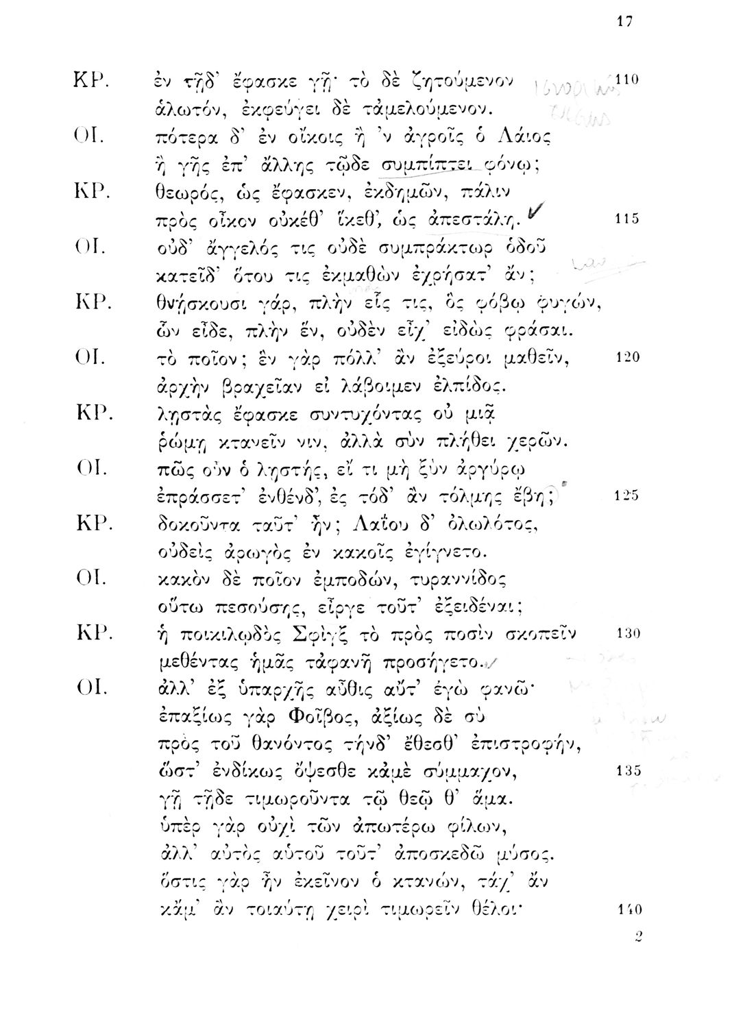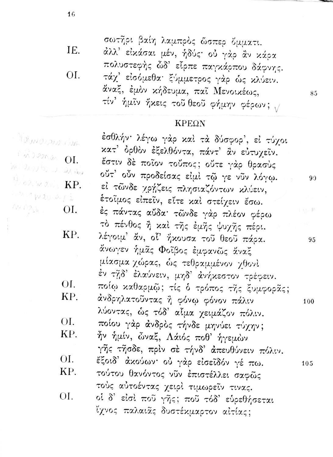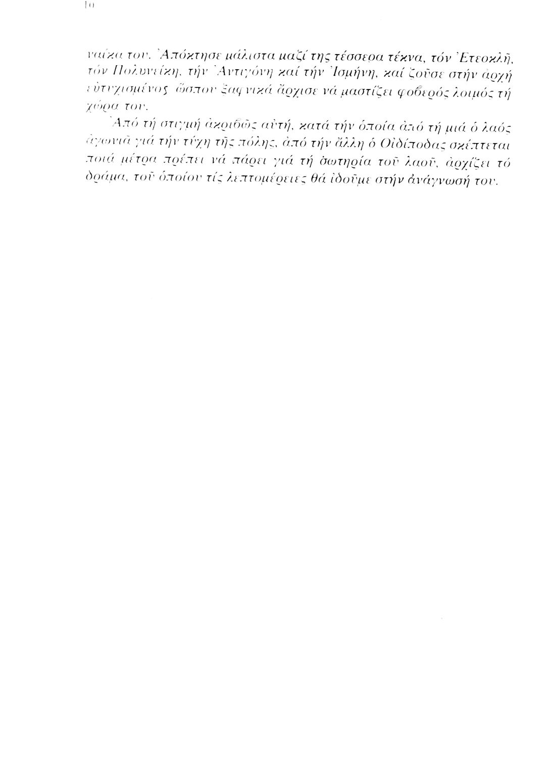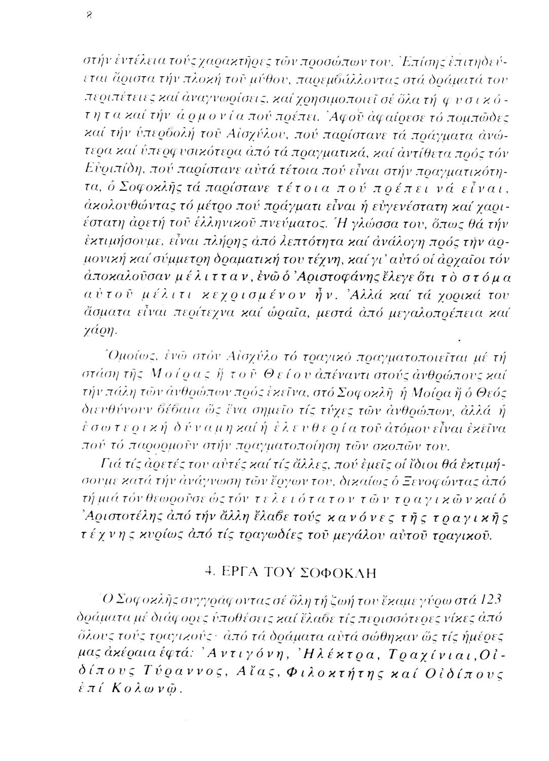 Σχολικό εγχειρίδιο Αρχαίων Ελληνικών για τη Γ΄ Λυκείου με πρωτότυπο κείμενο του Σοφοκλή. Το βιβλίο περιλαμβάνει εισαγωγή και ερμηνευτικές σημειώσεις στη Δημοτική. Σχόλια μαθητή στα περιθώρια.