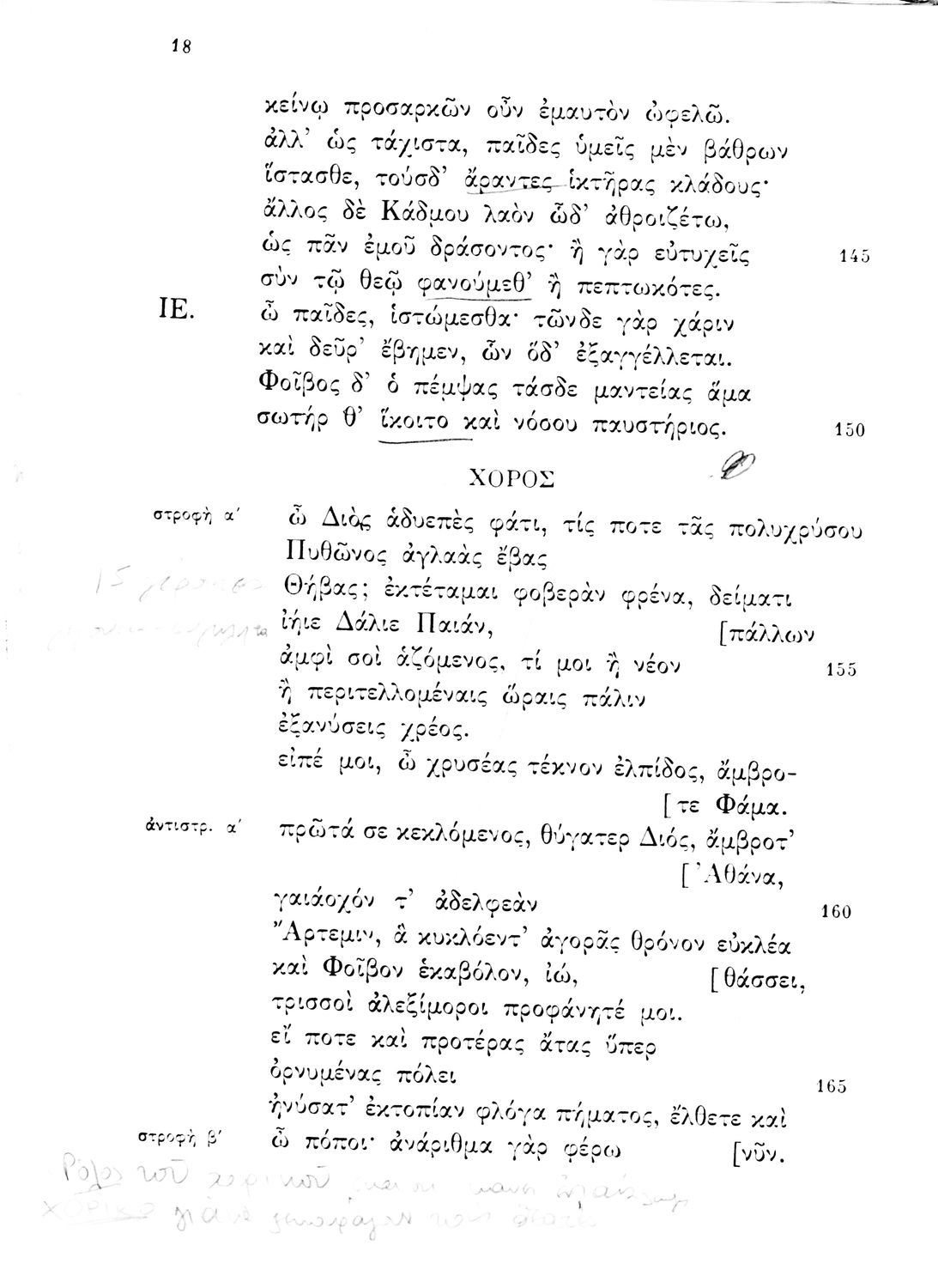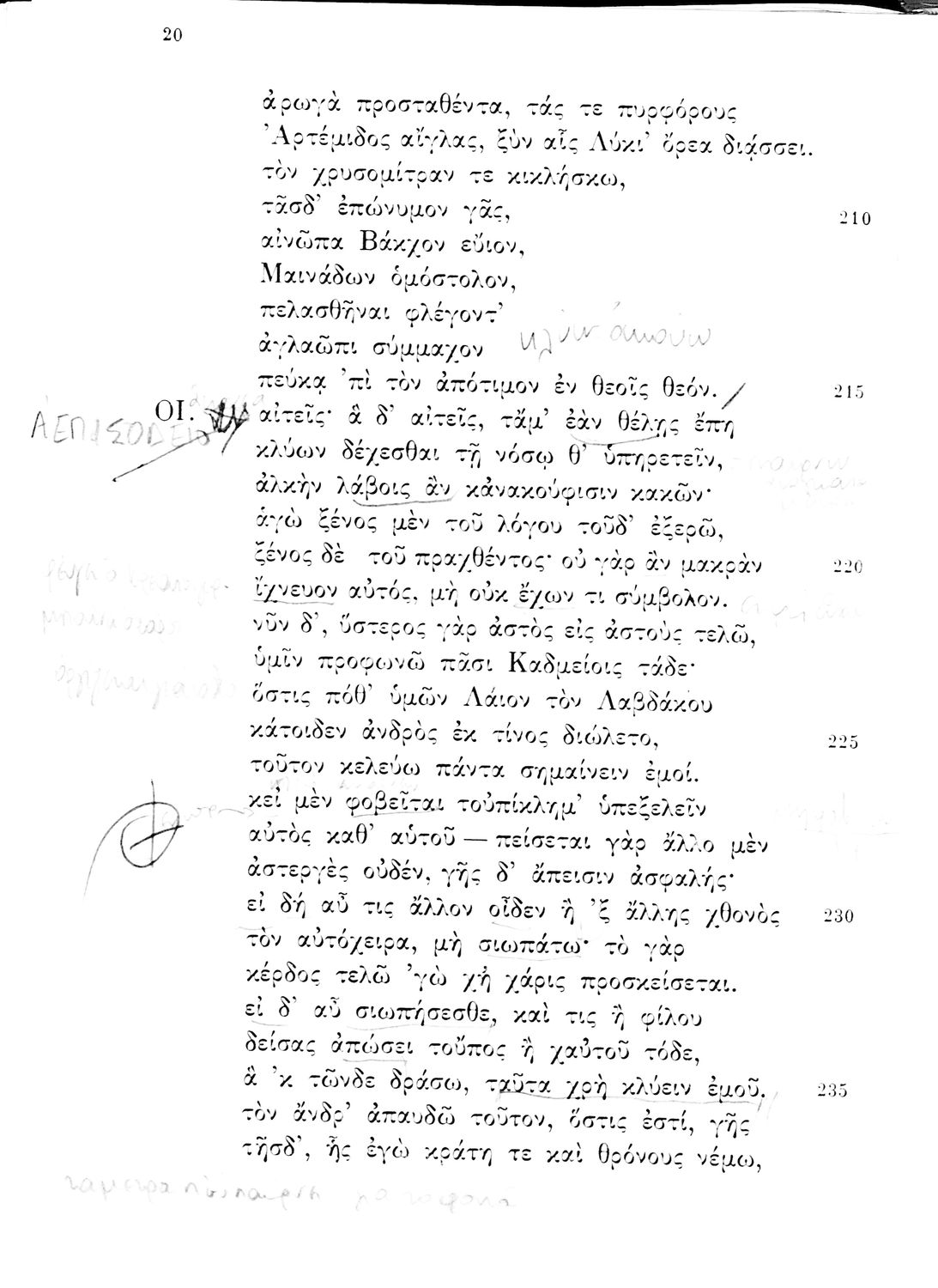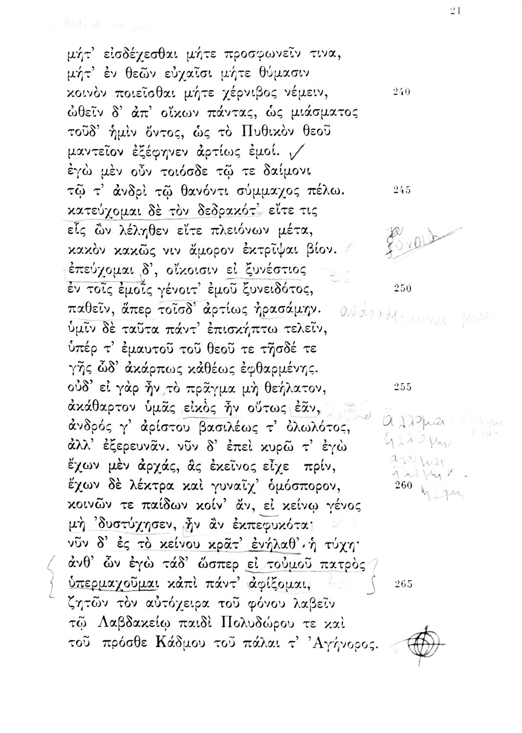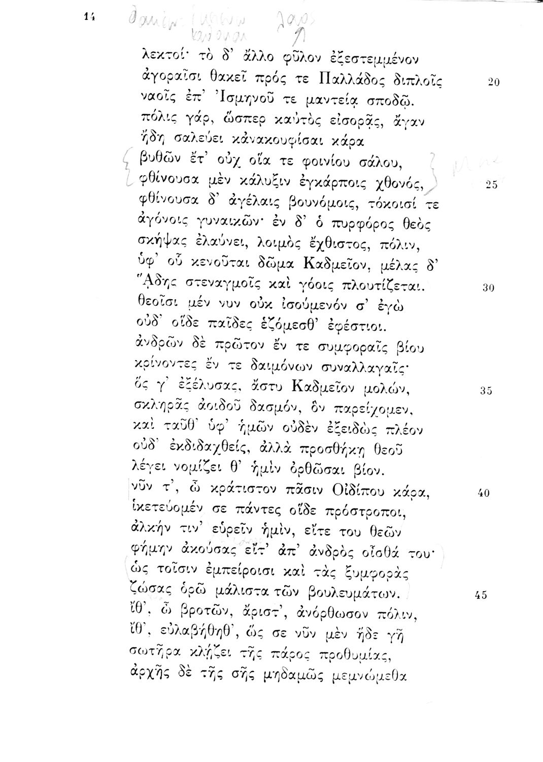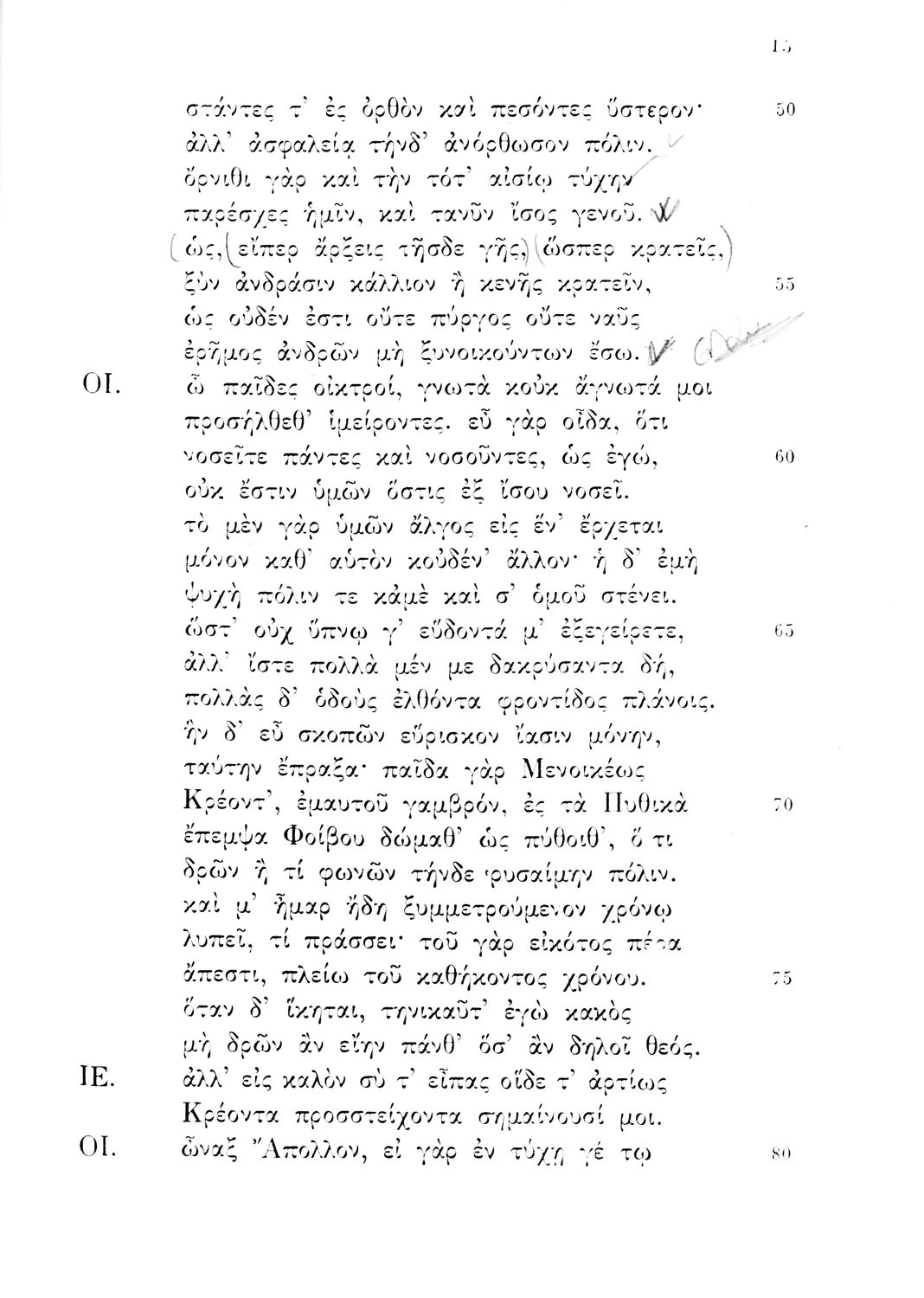 Σχολικό εγχειρίδιο Αρχαίων Ελληνικών για τη Γ΄ Λυκείου με πρωτότυπο κείμενο του Σοφοκλή. Το βιβλίο περιλαμβάνει εισαγωγή και ερμηνευτικές σημειώσεις στη Δημοτική. Σχόλια μαθητή στα περιθώρια.