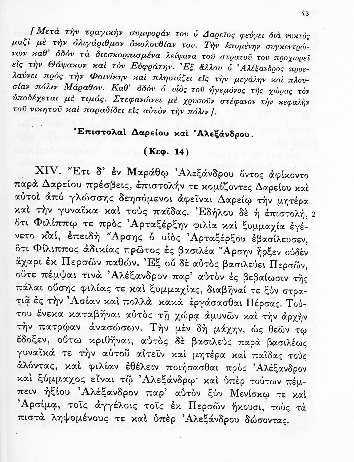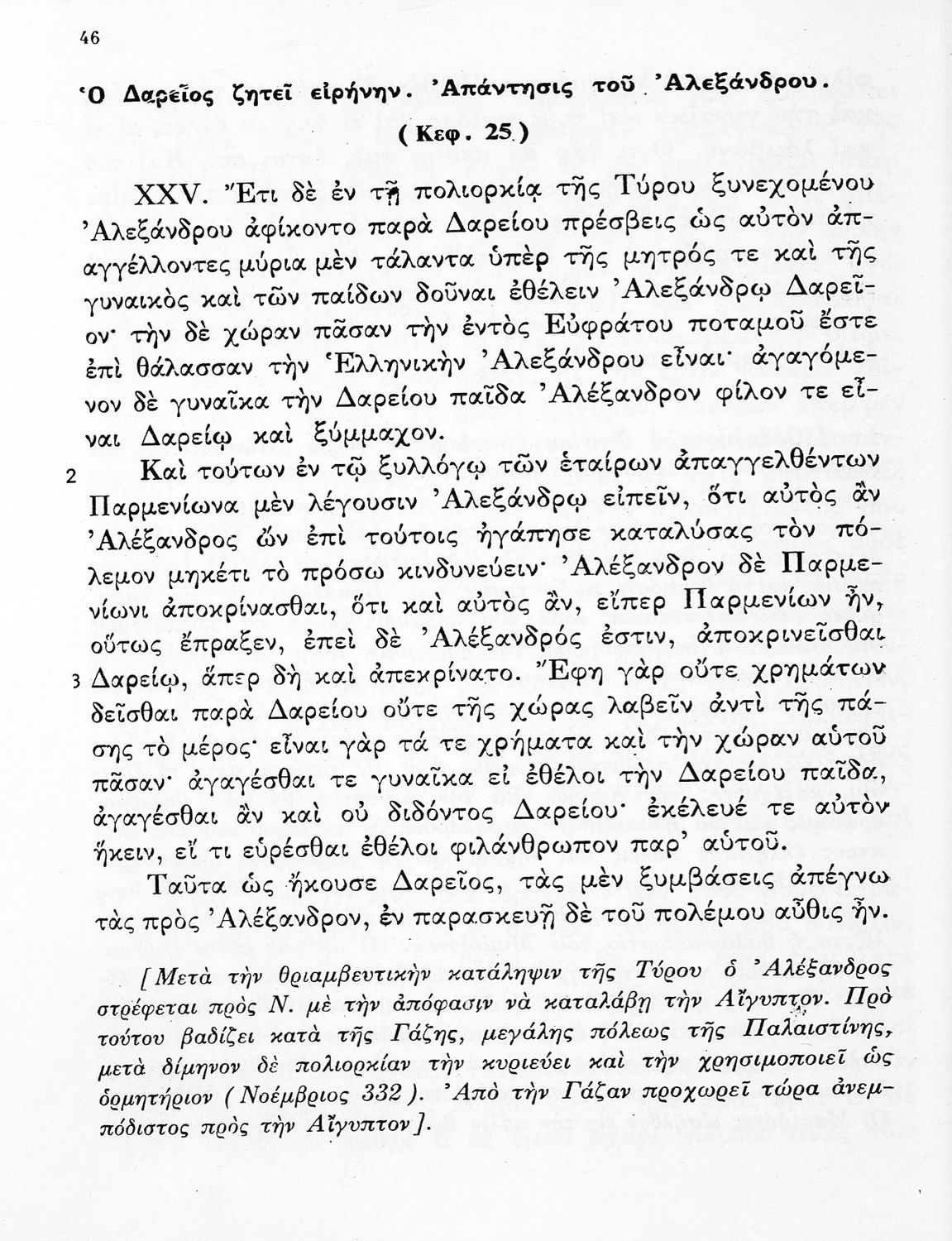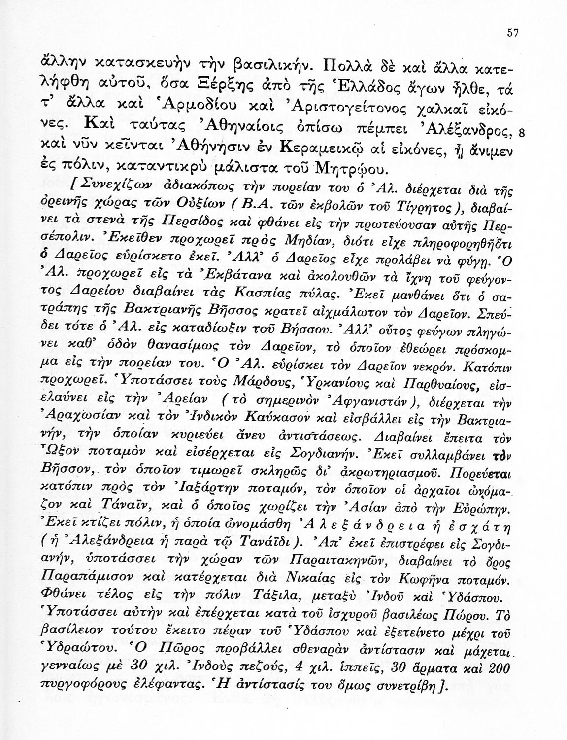 Σχολικό εγχειρίδιο Αρχαίων Ελληνικών Γ΄ Γυμνασίου που περιλαμβάνει αποσπάσματα από το έργο του Αρριανού Αλέξανδρου Ανάβασις και του Ηρόδοτου Ιστορίαι, ερμηνευτικές και λεξιλογικές παρατηρήσεις καθώς και τοπογραφικούς πίνακες και χάρτες..