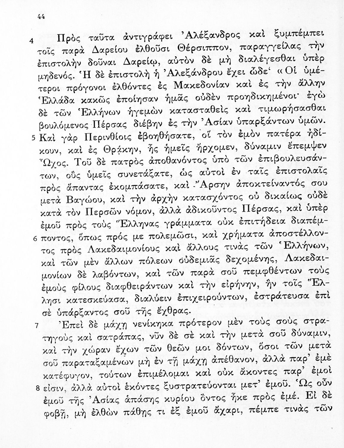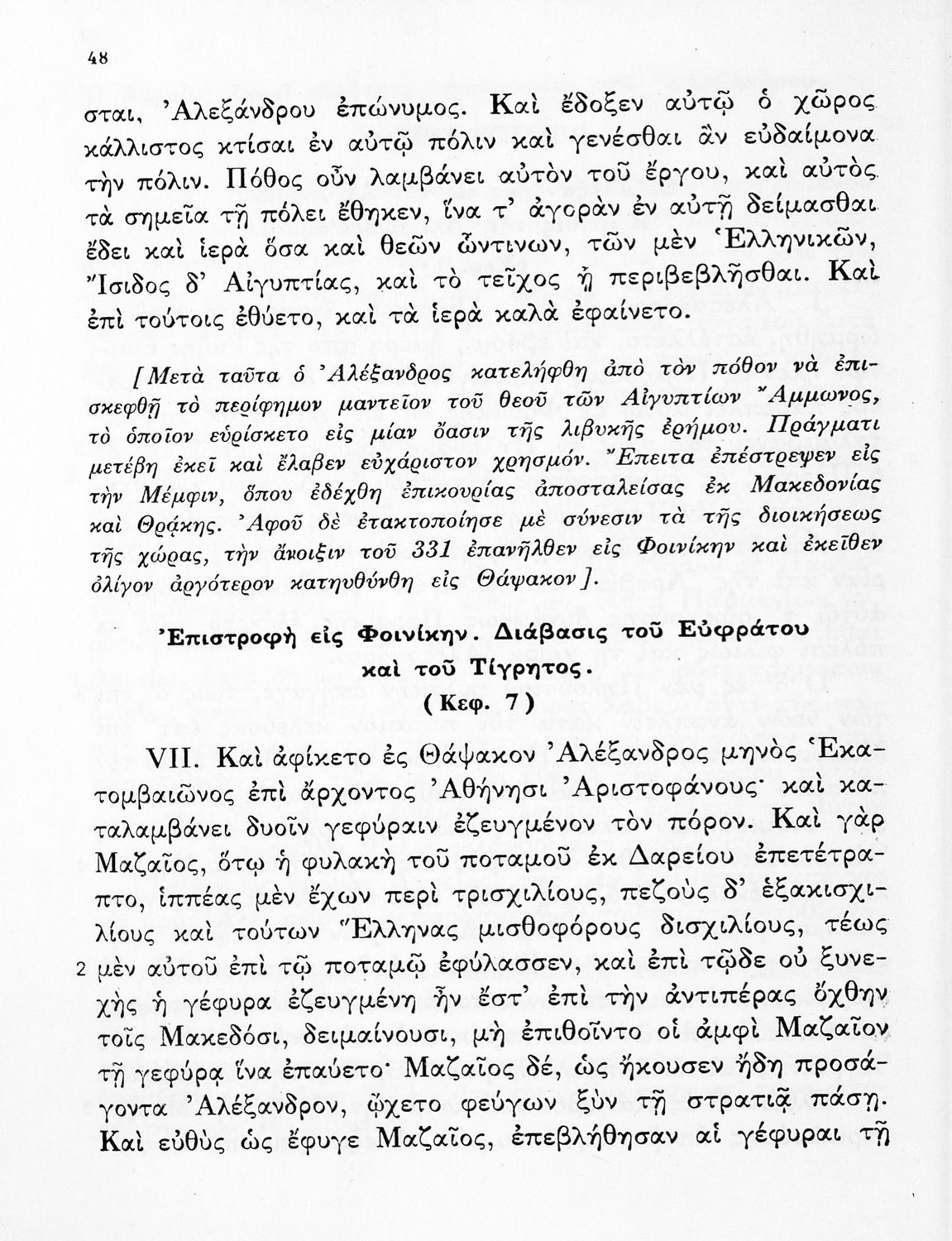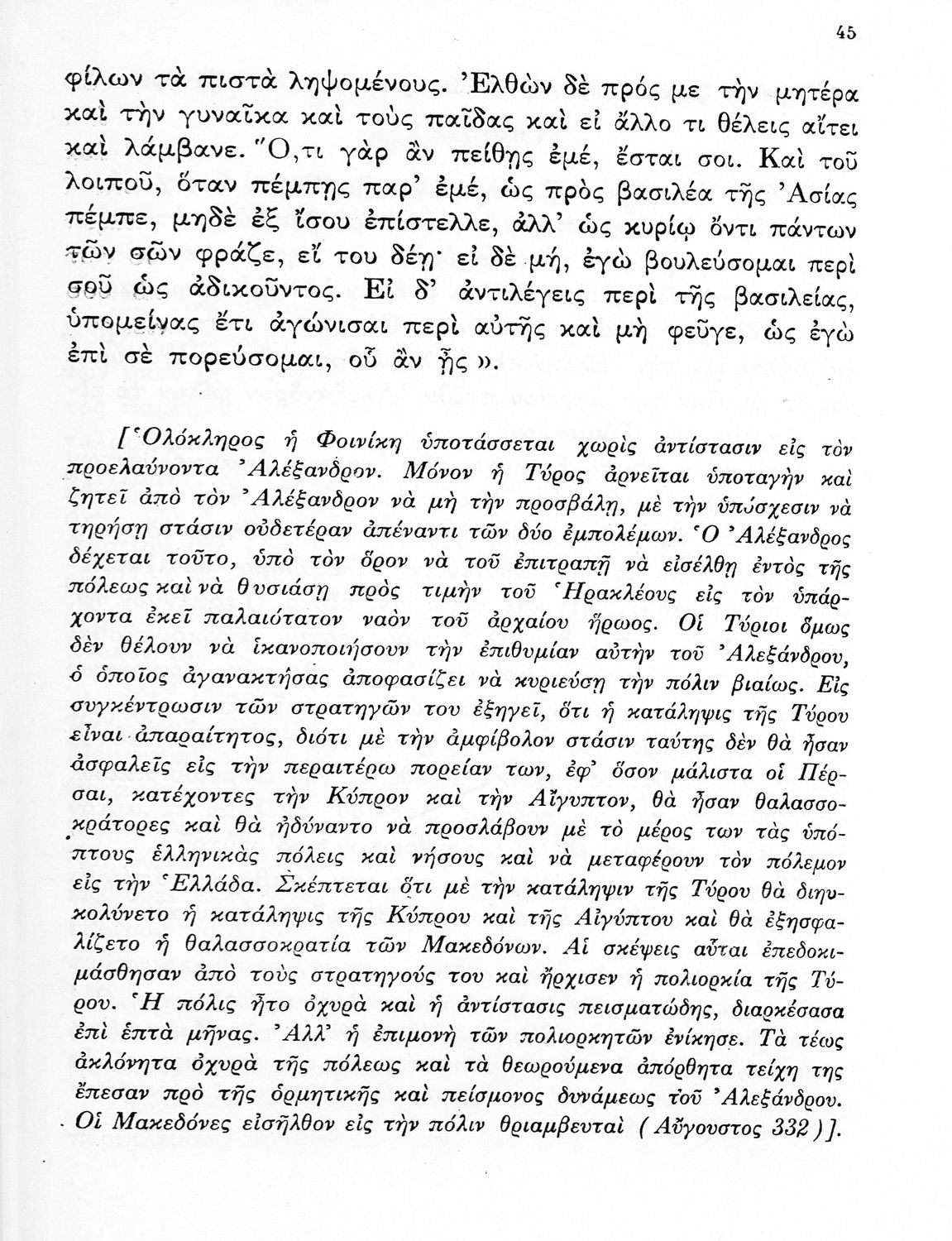 Σχολικό εγχειρίδιο Αρχαίων Ελληνικών Γ΄ Γυμνασίου που περιλαμβάνει αποσπάσματα από το έργο του Αρριανού Αλέξανδρου Ανάβασις και του Ηρόδοτου Ιστορίαι, ερμηνευτικές και λεξιλογικές παρατηρήσεις καθώς και τοπογραφικούς πίνακες και χάρτες..
