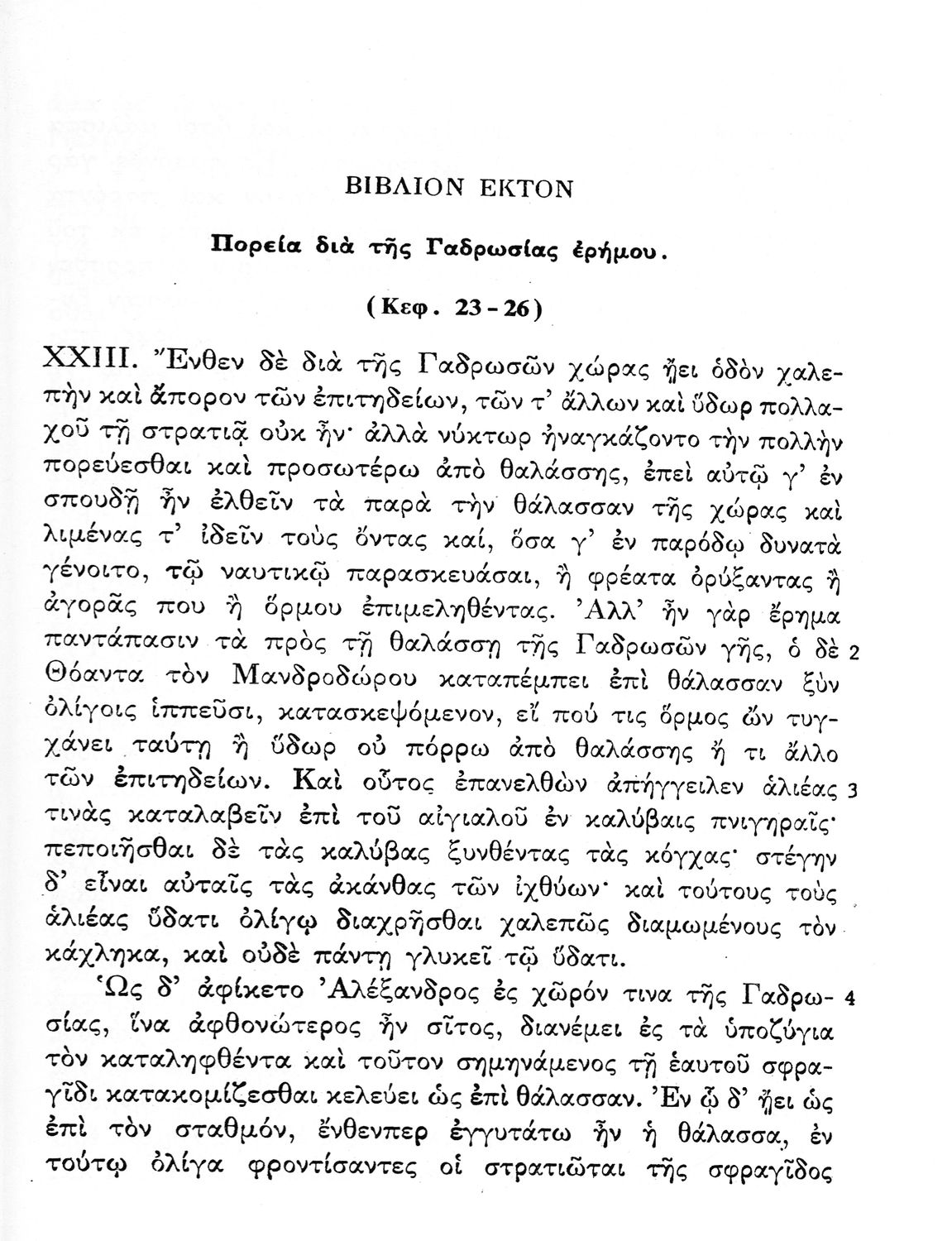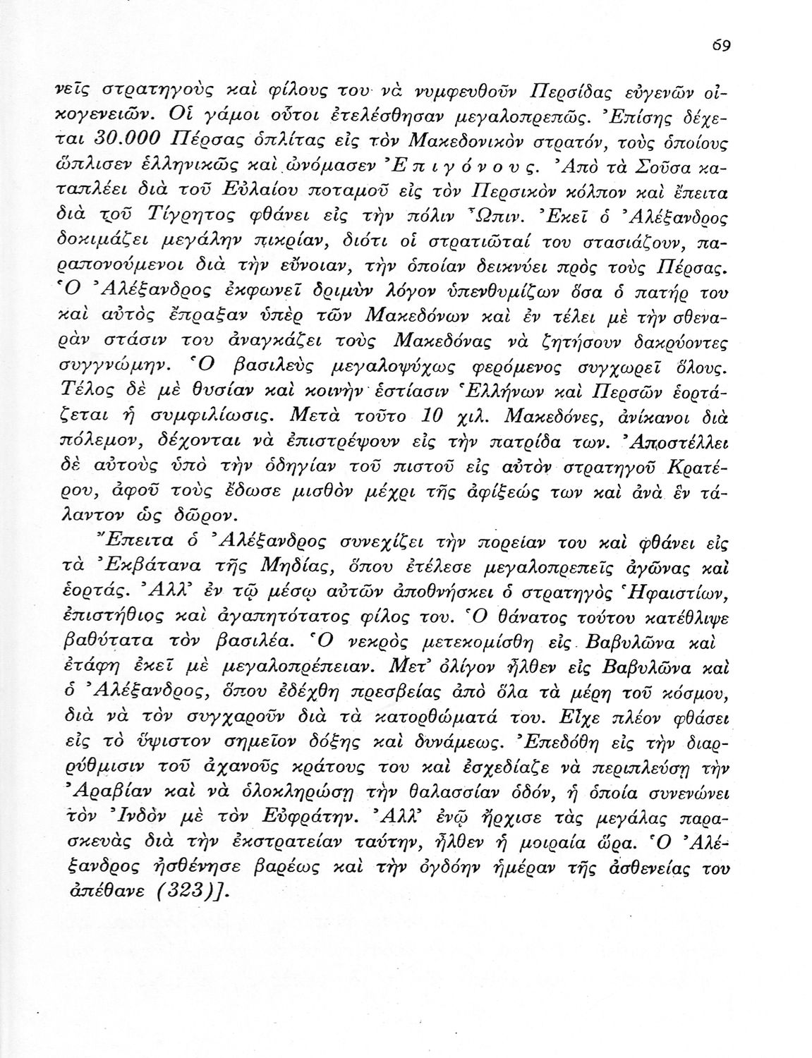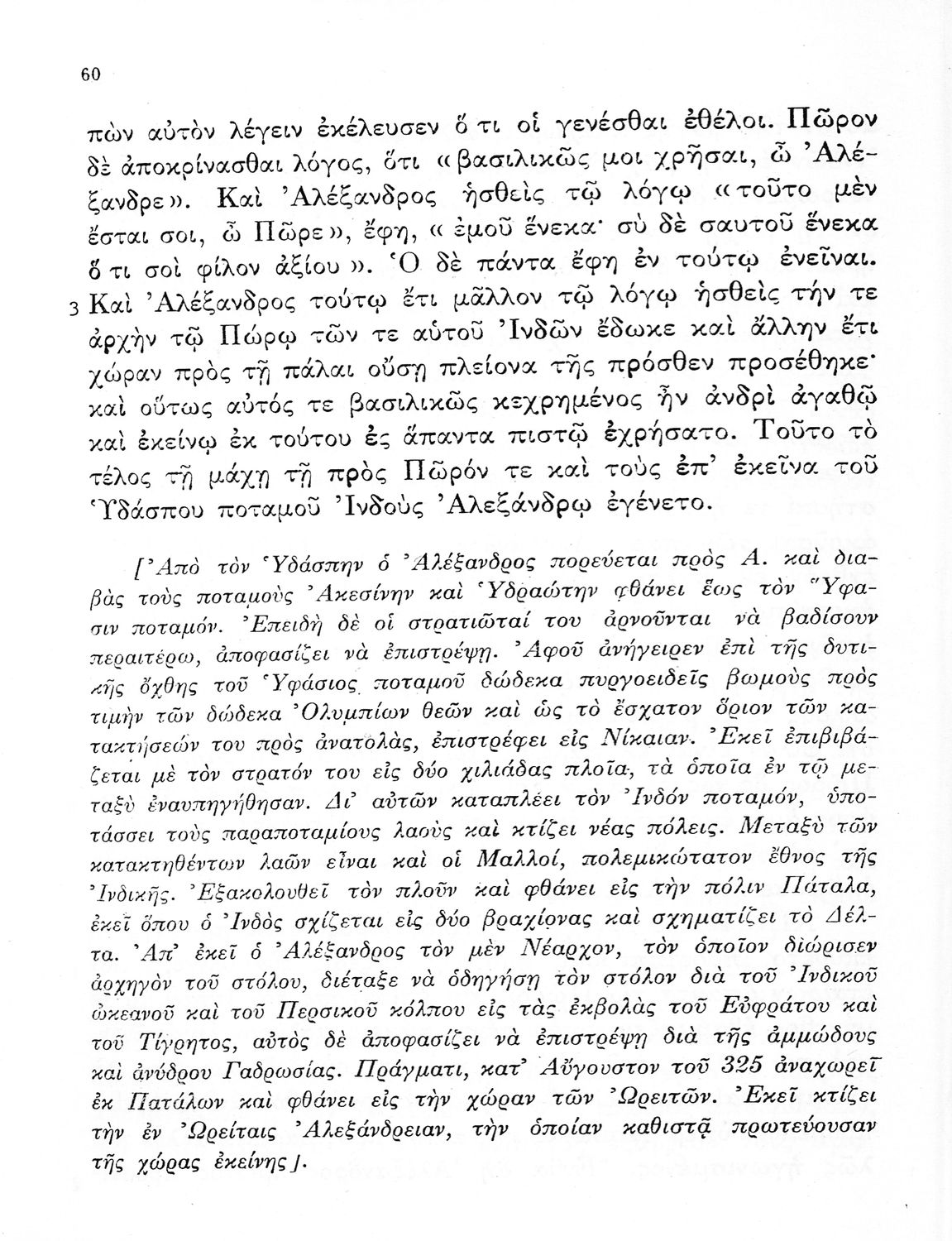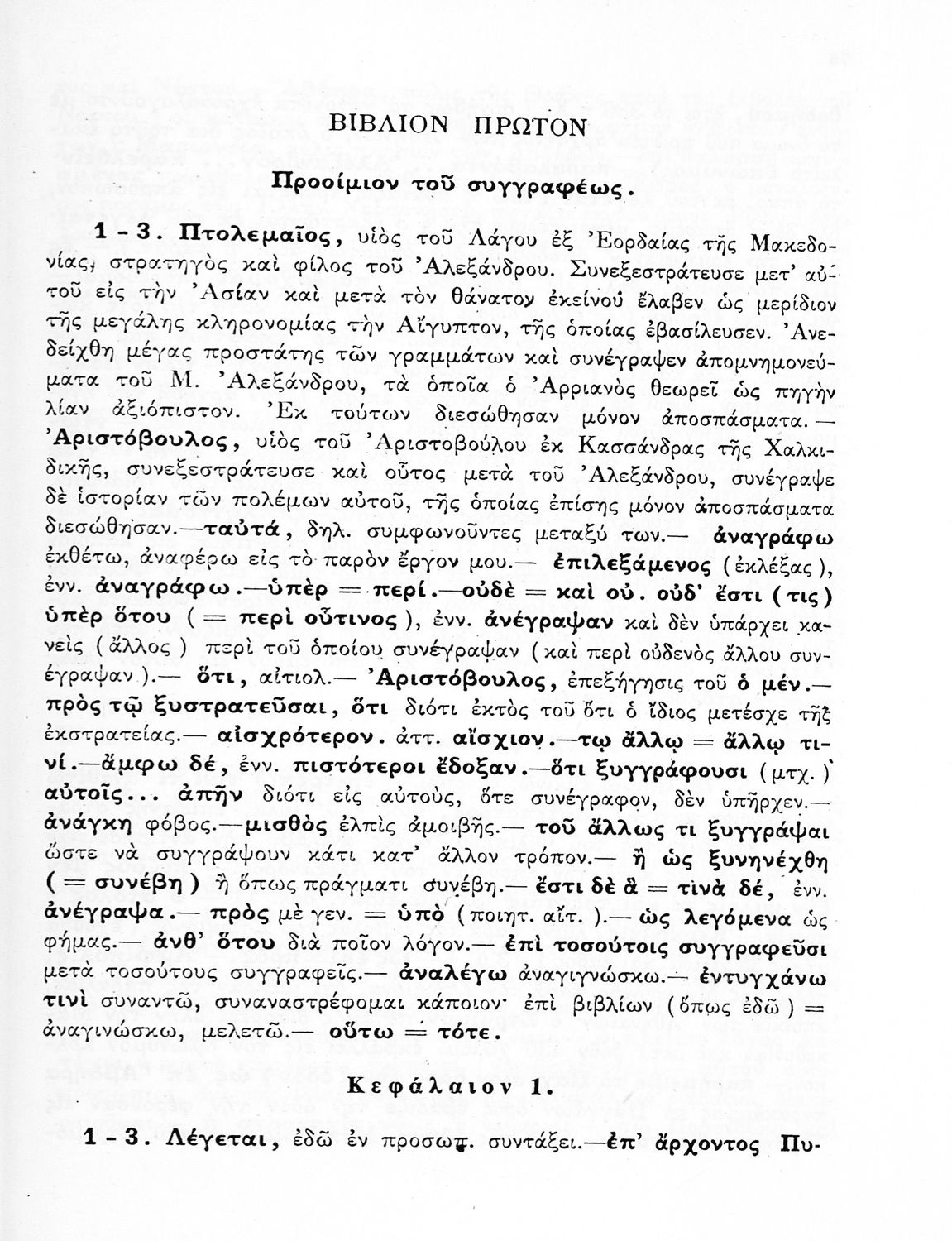 Σχολικό εγχειρίδιο Αρχαίων Ελληνικών Γ΄ Γυμνασίου που περιλαμβάνει αποσπάσματα από το έργο του Αρριανού Αλέξανδρου Ανάβασις και του Ηρόδοτου Ιστορίαι, ερμηνευτικές και λεξιλογικές παρατηρήσεις καθώς και τοπογραφικούς πίνακες και χάρτες..